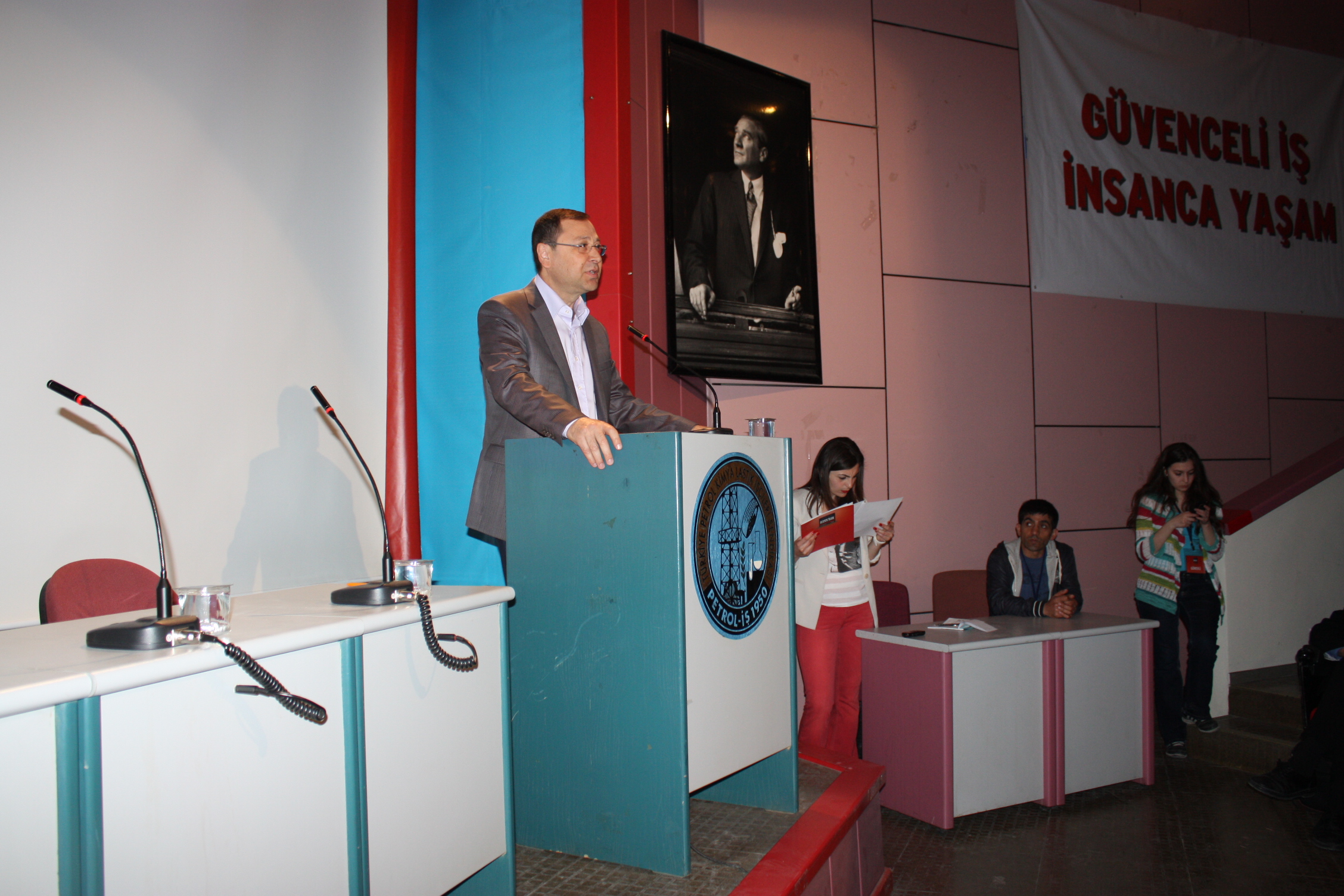 Gülmez’in ardından söz alan Doç. Dr. Aziz Çelik “Yeni Sendikal Rejim: 6356 ve Sendikal Harekete Etkileri” başlıklı bir sunuş yaptı.