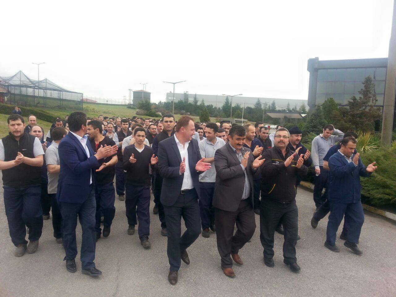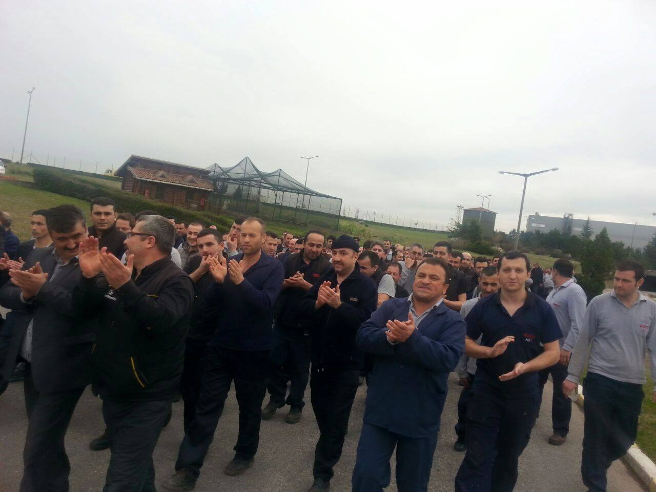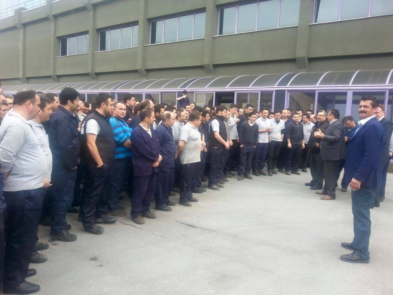 İstanbul 2 No’lu şubemize bağlı Mutlu Akü ve Malz. San. A.Ş’de devam eden toplu sözleşme görüşmeleri sırasında çıkan anlaşmazlık nedeniyle, 6 Mart Cuma günü fabrika içinde alkışlı protesto eylemi başladı. Eyleme İstanbul 2 No’lu Şube Başkanımız Niyazi Recepkethüda ve Başkan Yardımcılarımız Fatih Pat ve Muhammet Kayar’da katılarak destek verdi. Bir hafta boyunca devam edecek eylemlerde işçiler, işe giriş ve çıkışlarda servislerden inip fabrika etrafında alkış ve sloganlar eşliğinde yürüyüş yapacak. Bu tepkisel eylemler anlaşmazlık son bulana kadar artarak devam edecek.