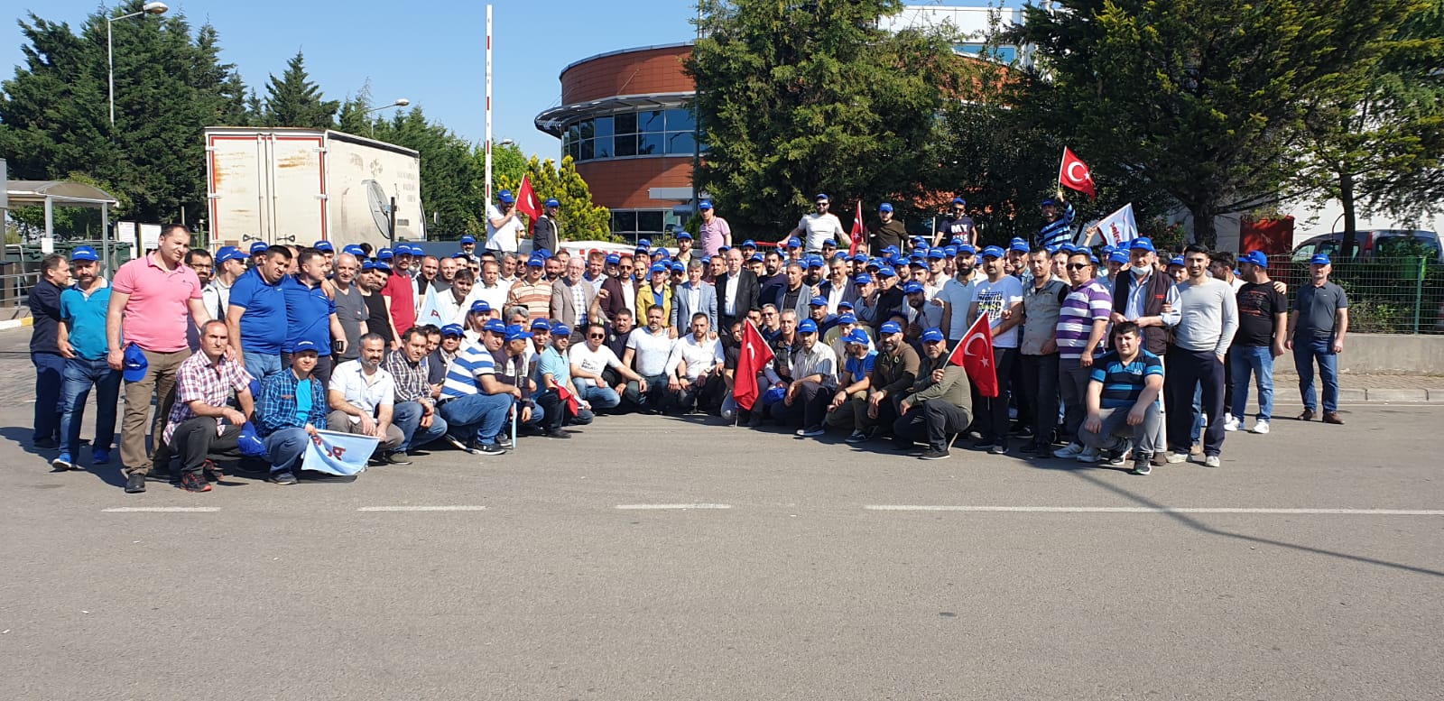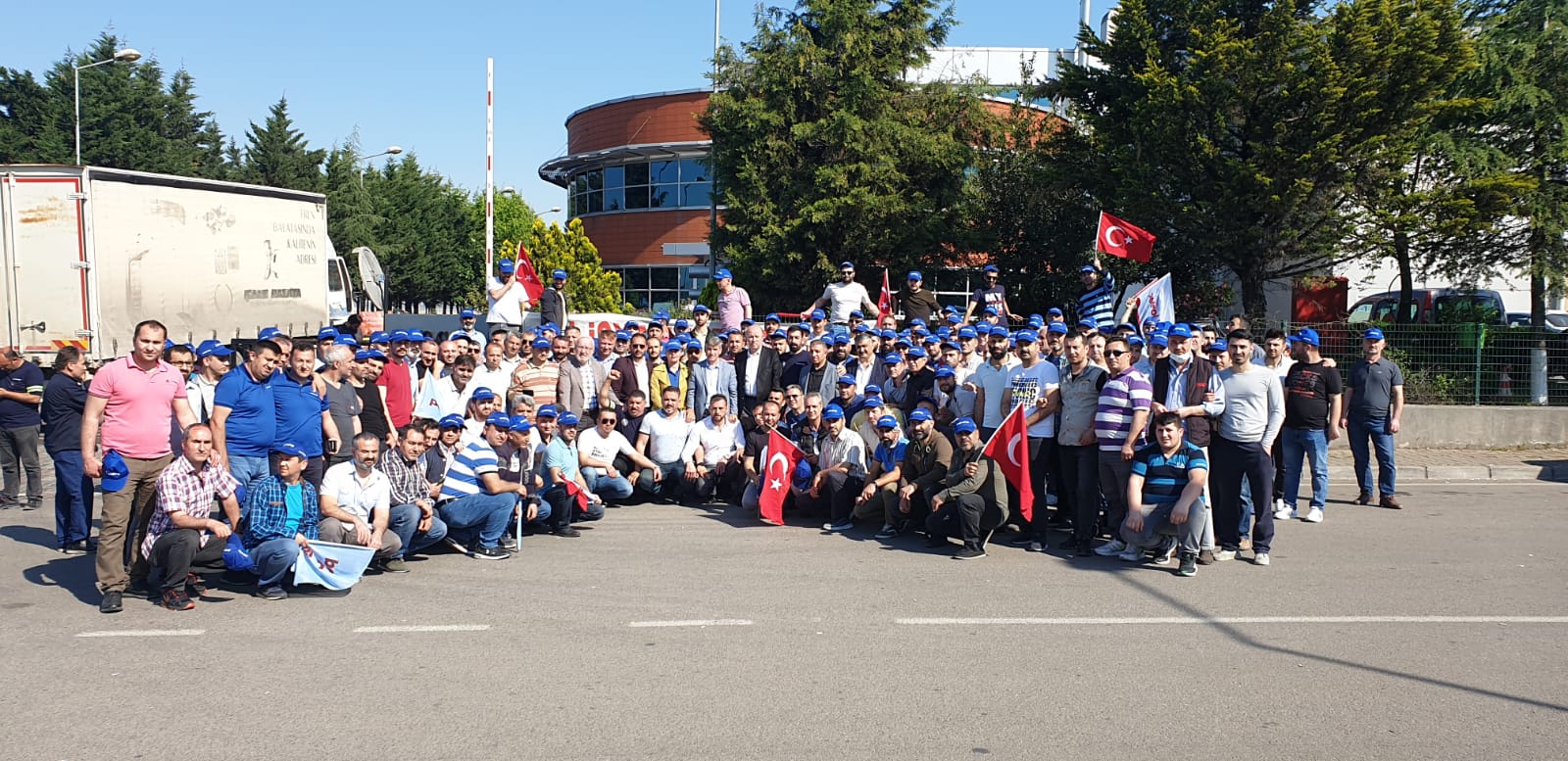 Fabrika önünde açıklama yapan sendikamız Genel Başkanı Süleyman Akyüz, 5 buçuk aylık TİS sürecini geride bırakmalarına rağmen anlaşma sağlanamadığını ifade etti. Grevi amaç olarak görmediklerini, üyelerinin çalışma koşullarının iyilişterilmesi, böylesine ekonomik bir tablonun olduğu bir süreçte adil bir ücret talep ettiklerini belirten Genel Başkan, işverene de işçinin taleplerini dikkate alması çağrısında bulundu.