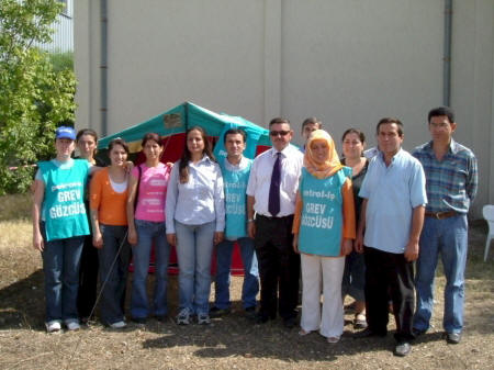 Novamed grevi coşkulu başladı.Sendika, siyasi parti ve sivil toplum kuruluşları ve melsek örgütü yetkililerinin de katılarak destek verdiği Novamed grevi, davul zurna eşliğinde çekilen halaylarla başladı. Üyelerimiz işyeri kapısına, “ Bu işyerinde grev var” pankartını astılar. Genel Başkanımız Mustafa Öztaşkın, Genel Sekreterimiz Mustafa Çavdar, CHP Antalya İl Başkanı Ömer Melli, DSP İl Başkanı Baştuğ Çalışır, Anavatan Partisi İl Başkanı İsa Akdemir ile DYP İl Teşkilatı yöneticileri, Türk-İş, KESK ve DİSK’e bağlı sendikaların yöneticileri grevin ilk gününde üyelerimizin arasında yer alarak greve destek verdiler. KESK Şube Başkanı Kadir Zeybek, Türk-İş Antalya Temsilcisi Memet Ustali ve Türk-İş’e bağlı 14 şube başkanı greve katılan üyelerimizi ziyaret ederek, üyelerimizin moralini yükselttiler. Genel Başkanımız Öztaşkın burada yaptığı konuşmada,Novamed’de iki yıldır sendikalaşma çabalarının sürdüğünü belirterek, “Amacımız, daha sağlıklı ve insan onuruna yakışır bir işyerinde, örgütlü bir işyerinde çalışmaktır.. Burada çalışanların mesai saatlerinde birbirleriyle konuşmaları bile yasak. Bu işerinde örgütlenmek için uzun süre mücadele ettik. İşverenin ağır baskılarına maruz kaldık. İşçileri sömürtmeyeceğiz. Bu işyerinde sendika yasalaşıncaya kadar, işveren sendikayı tanıyıncaya kadar ve TİS imzalanıncaya kadar grevimiz sürecek “ diye konuştu. İşveren oyun oynamak istiyorÖztaşkın şöyle devam etti: “Sendikamız bu işyerinde grevi tercih etmemesine rağmen, işveren sendikalı ve sendikasız tüm çalışanları greve çıkmaları konusunda baskı altına aldı. İşveren çalışanlara oyun oynamak istiyor. İşveren işçileri grev oylamasına teşvik ederek, sendikasız işçilerin de evet oyu kullanmalarını sağladı. Eğer oylamada greve hayır oyu çıksaydı toplu sözleşme, Yüksek Hakem Kurulu’na gidecek ve orada anlaşma sağlanacaktı. Görüşmelerde YHK aşamasına gelinmesi işverenin işine gelmedi. İşveren işçileri bilinçli olarak greve çıkmaya yönlendirdi.”Ekim ayında açıklanacak AB İlerleme Raporu’nda Türkiye’nin işçi hakları ve sendikal örgütlenme konularında ağır şekilde eleştirildiğini ifade eden Öztaşkın, “Avrupa Komisyonu’nda Türkiye, işçi hak ve özgürlükleri konusunda eleştirilirken, Avrupa sermayeli şirketler Türkiye’de çalışanların sendika hakkına saygı göstermiyor. Bu kriterleri gidin önce siz kendi işvereninize dayatın” diye konuştu..Yapılan basın açıklamasının ardından üyelerimiz bir süre Serbest Bölge içinde yürüyüş yaptı. Üyelerimiz yürüyüş sırasında. “İşte Avrupa, işte insan hakları,” “Yaşasın Onurlu Mücadelemiz” şeklinde sloganlar attılar.
