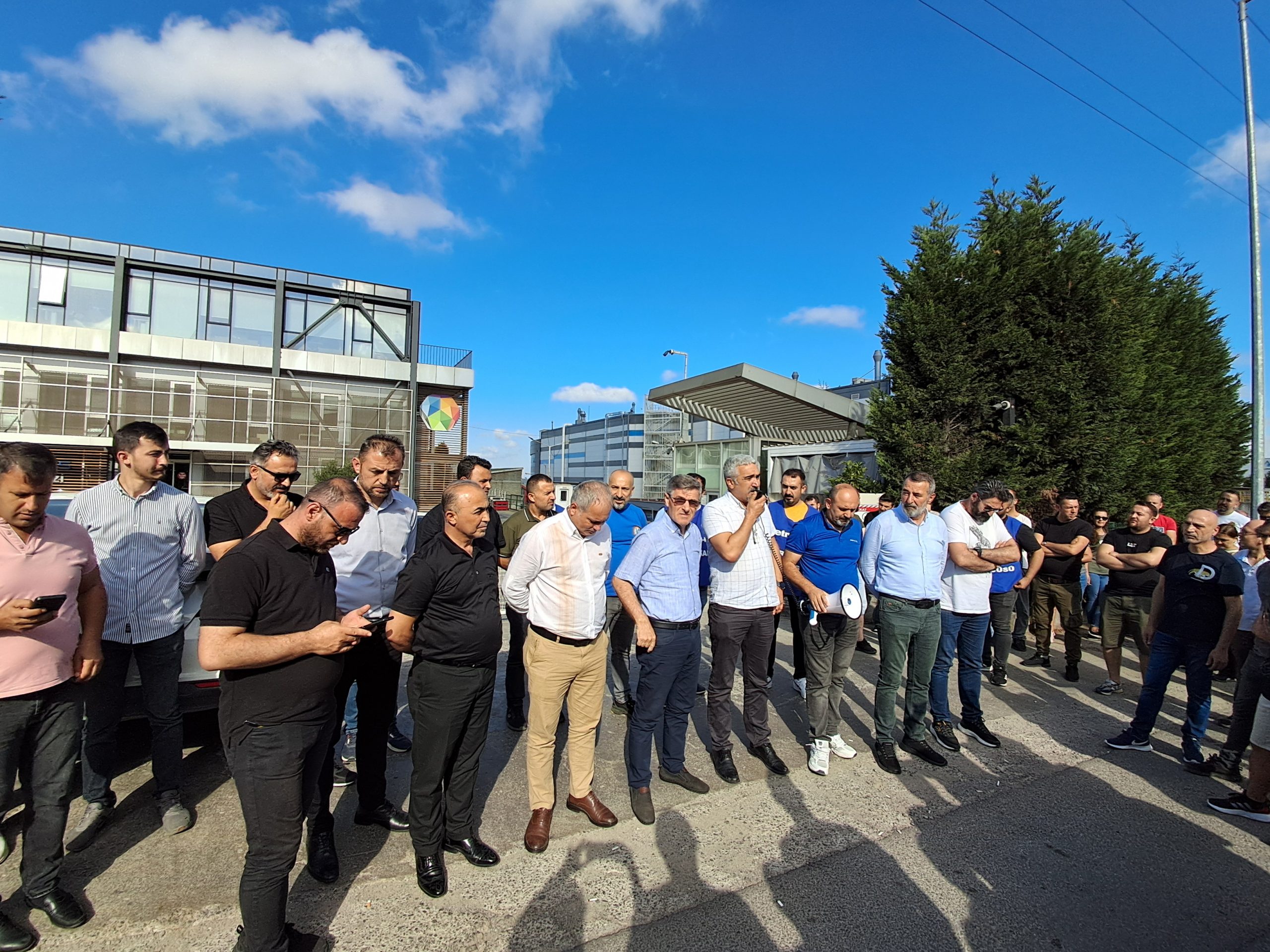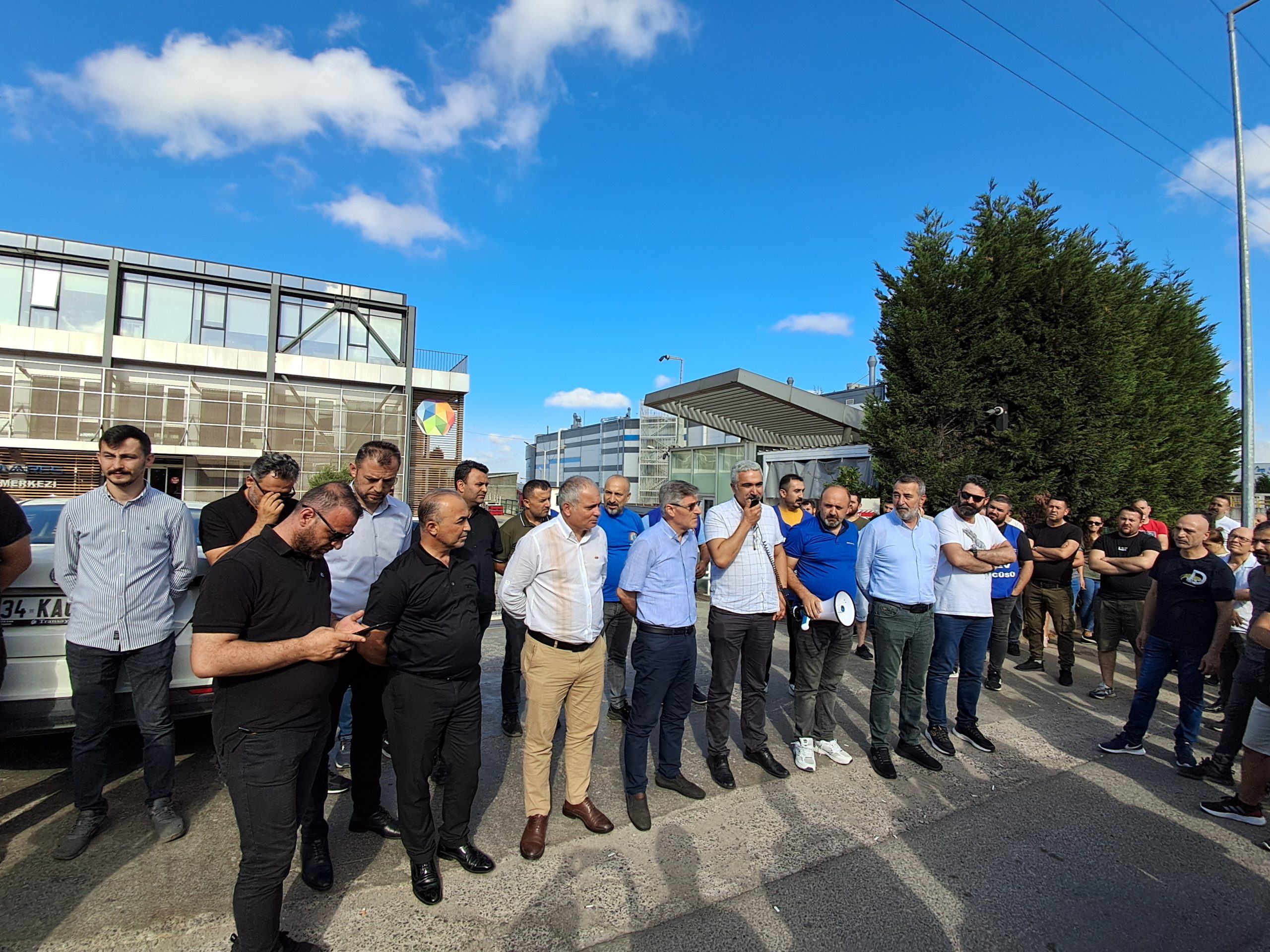 Sendikamız Genel Başkanı Süleyman Akyüz, Genel Mali Sekreteri Mehmet Kaya ile Genel Yönetim Sekreteri Ali Haluk Koşar da grev alanında üyelerimizle birlikteydiler. Genel Başkanımız Süleyman Akyüz grev alanında sürece dair bir konuşma gerçekleştirdi. Konuşmaların ardından “Yaşasın Sınıf Dayanışması” “İş, aş, adalet Petrol-İş’e emanet” sloganları grev alanından yükselirken, üyelerimiz fabrika önünde halaylar eşliğinde coşkuyla ve kararlılıkla mücadelenin ateşini yaktı.