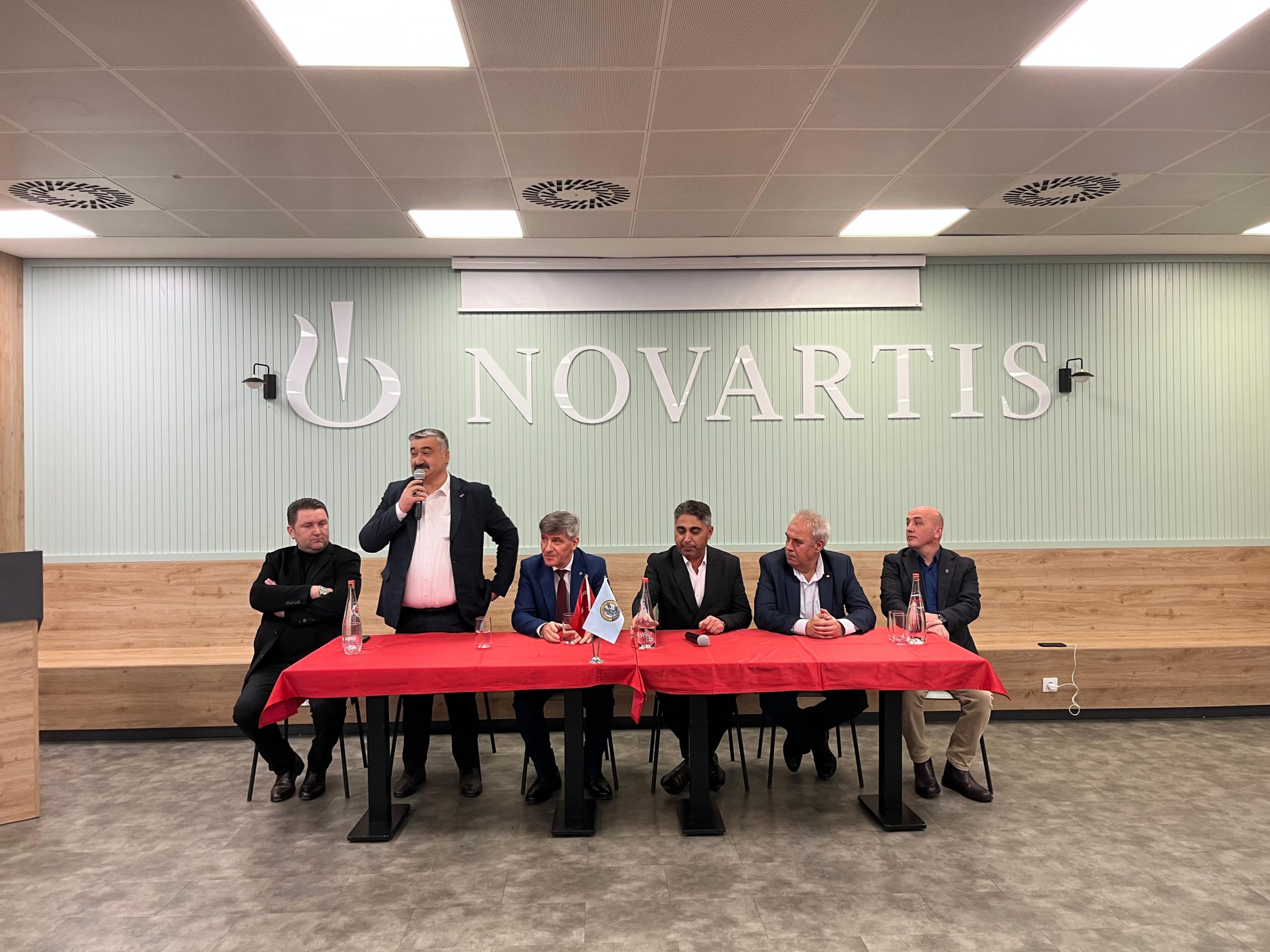 Eğitim programı öncesi sabah saat 10.00’da Genel Başkanımız Süleyman Akyüz ve Genel Eğitim ve Örgütlenme Sekreterimiz Niyazi Recepkethüda, İstanbul 1 Nolu Şube yönetimi birlikte Novartis’te çalışan üyelerimizle bir araya geldi.