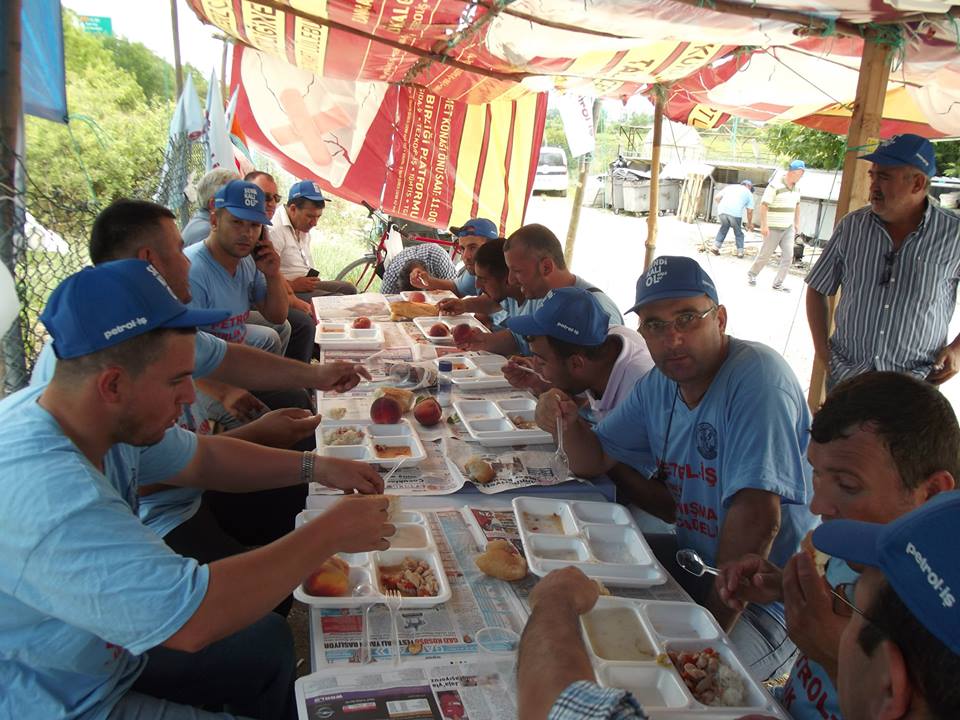 Yapılan basın açıklamasında Petrol-İş Trakya Şube Başkanı Turgut Düşova; ‘Bu insanlar biz köle değiliz dediler. Bu ülkede 800 TL’ye her yerde iş var. Her yerde emeğimizi senin verdiğin ücrete satarız dediler ve gereğini yaptılar. Açlıkla, yoksullukla insanları terbiye edemezsin. Birgün senin karşına dikilirler ‘biz insanız’ derler. Bundan gocunmayacaksın. Önce adam olacaksın, önce insan olacaksın’ ifadelerini kullandı.