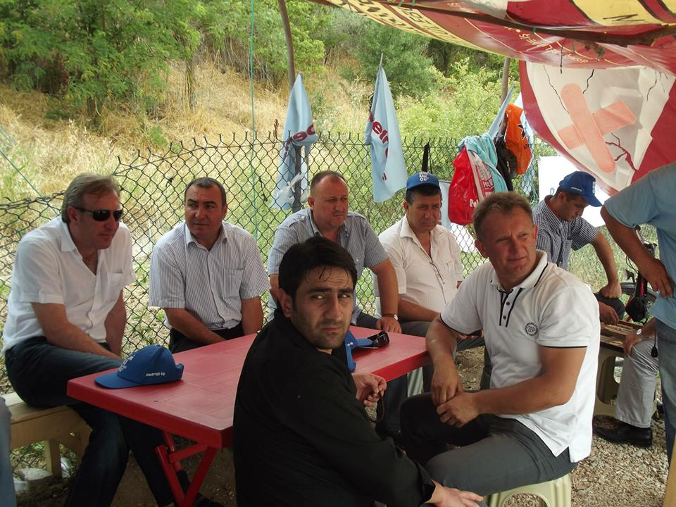 Fabrika sahibinin ‘hesap soracağım’ gibi söylemlerini duyduklarını ifade eden Düşova; ‘Jandarma komutanı orada, seni şu an şikayet ediyorum. Bu kadar şahit var. Bu işveren suç işliyor. Arkadaşlara diyor ki ‘’hesap soracağım’’. Türkiye’de sendikalı olmayı engellemek suçtur. 6 ay ile 3 yıl arasında hapis cezası vardır. Sayın jandarma komutanım bunu lütfen şikayet olarak alın. Şikayetçiyiz. Bu ülkede yasa var. Dağ başı değil burası. Yöneticiler insanların evine kadar giderek tehdit ediyorlar. İnsanların evine giderek sendikalı olanların istifa etmesini isteyerek anasını babasını tehdit ediyor. Daha 2 gün önce iş kazası oldu burada, işçi kardeşimize demişler ki ‘’Git nerede elini diktirirsen diktir’’. Kendi imkanları ile hastaneye gitti. Daha düne kadar iş kazası raporları tutulmadı. Suçları çok. İş kazaları olduğunda sahte evrak düzenlendi’şeklinde konuştu.