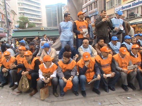 Konfederasyonumuz Türk-İş’e bağlı Sendikaların Ankara Şubelerinin Temsilci ve Yöneticileri ile, her Cumartesi günü Sakarya Caddesi Hosta Piknik önünde 17.00/18.00 saatleri arasında Kamu TİS’leri ve TGS Grevine dayanışma amacıyla gerçekleştirdiğimiz oturma eylemlerini bu hafta da (09.05.2009) devam ettik.