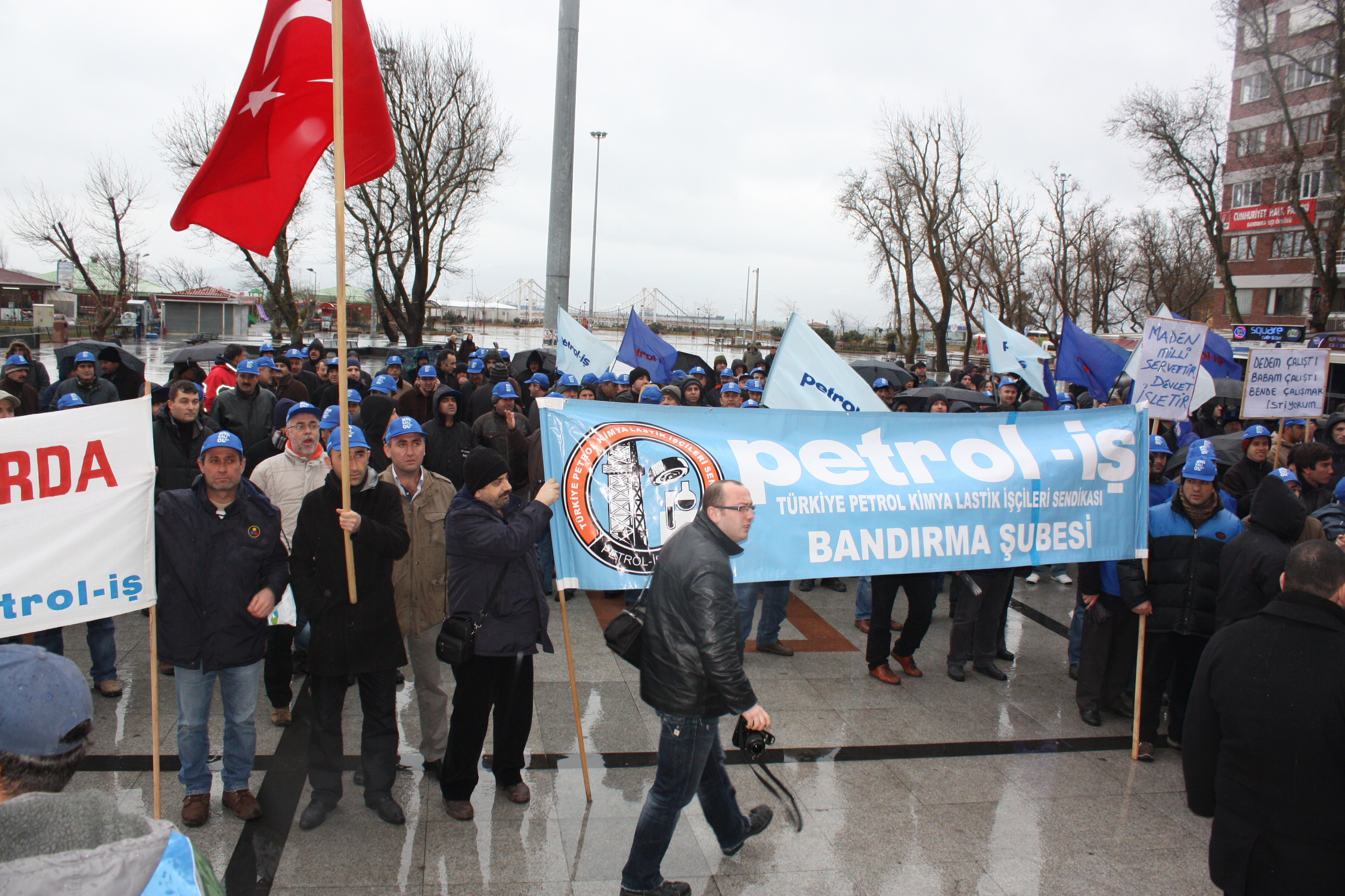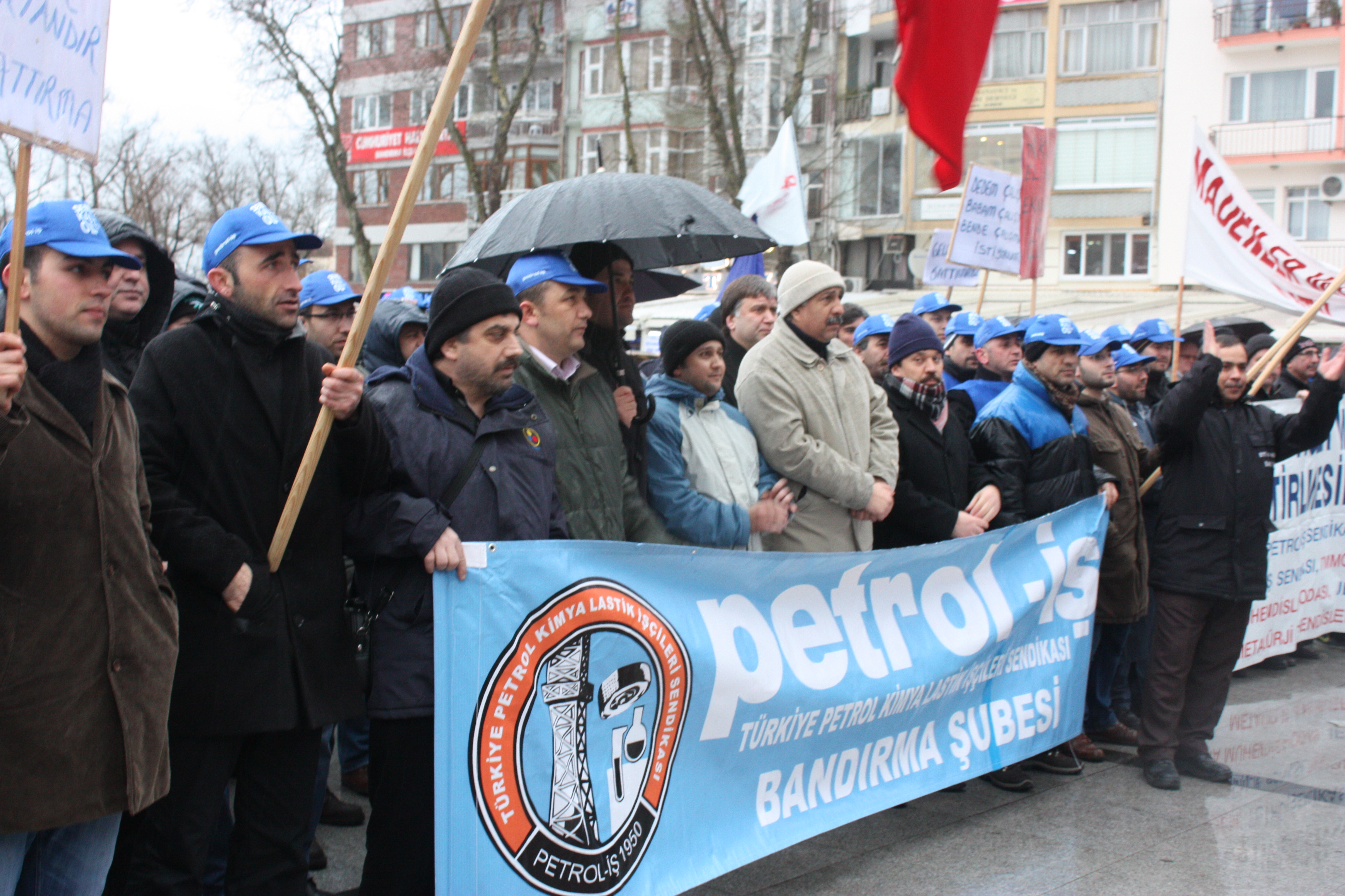 Cumhuriyet Meydanındaki protesto eylemine Bandırma Şubemizin örgütlü olduğu Eti Maden İşletmeleri Bandırma Bor ve Asit Fabrikaları Müdürlüğü’nde çalışan Petrol-İş üyesi işçiler, Bandırma Belediye Başkanı Sedat Pekel, Bandırma Şube Başkanımız İsmail Kayan, şube yöneticilerimiz, Genel -İş Sendikası Şube Başkanı Recep Kum, Belediye Başkan Yardımcıları Ozan Onur, Dursun Mirza, CHP İl Genel Meclisi Üyeleri, MHP İlçe Başkanı K.Kerim Erkul ve yönetim kurulu üyeleri, Eğitim – Sen ve Bandırmalı vatandaşlar katıldı.
