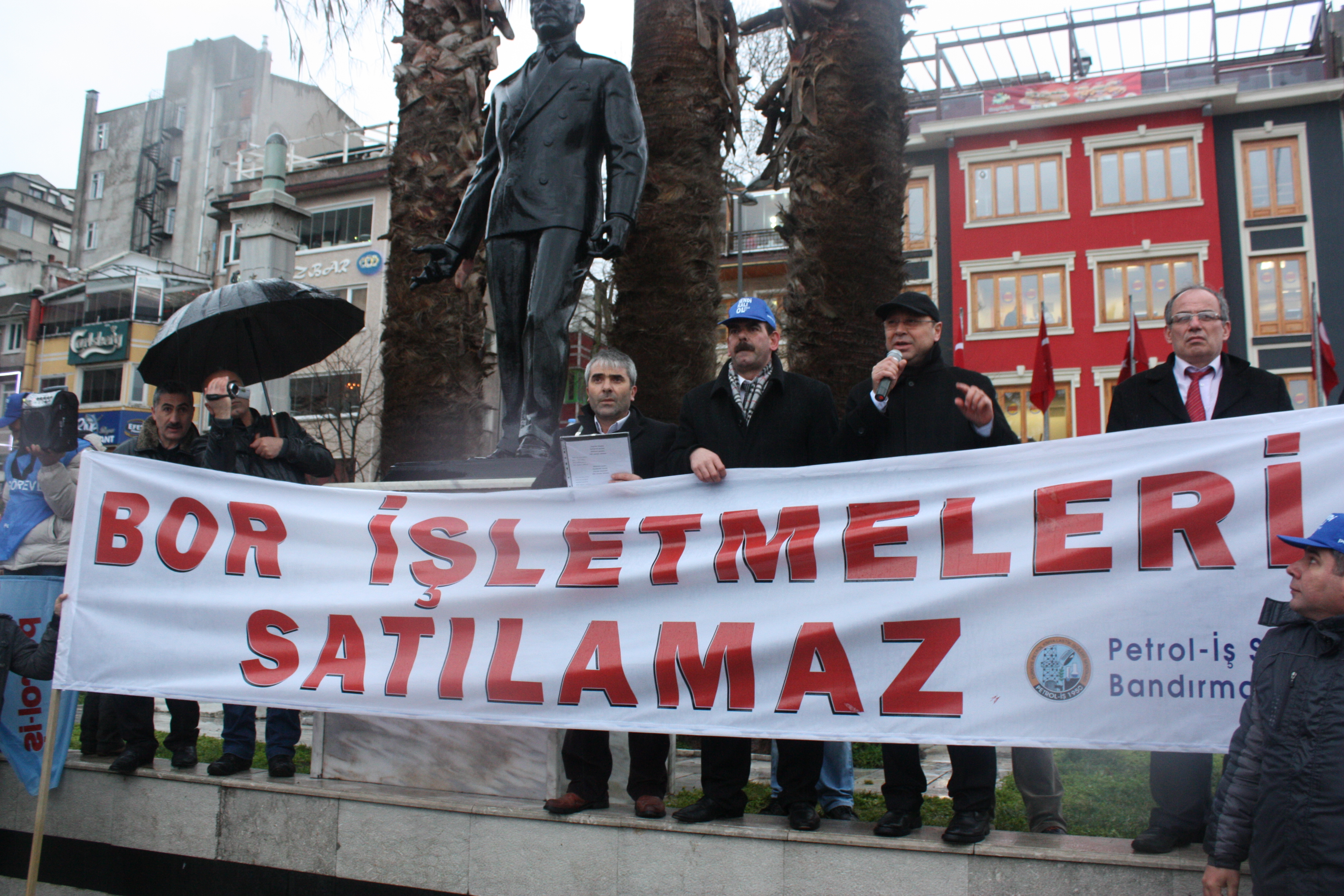 Protesto eyleminde konuşan Bandırma Şube Başkanımız İsmail Kayan ise Borun özelleştirilmesine ilişkin hazırlanan taslağın aldatmaca tuzaklarla dolu olduğunu belirterek hedefin başka olduğunu söyledi.