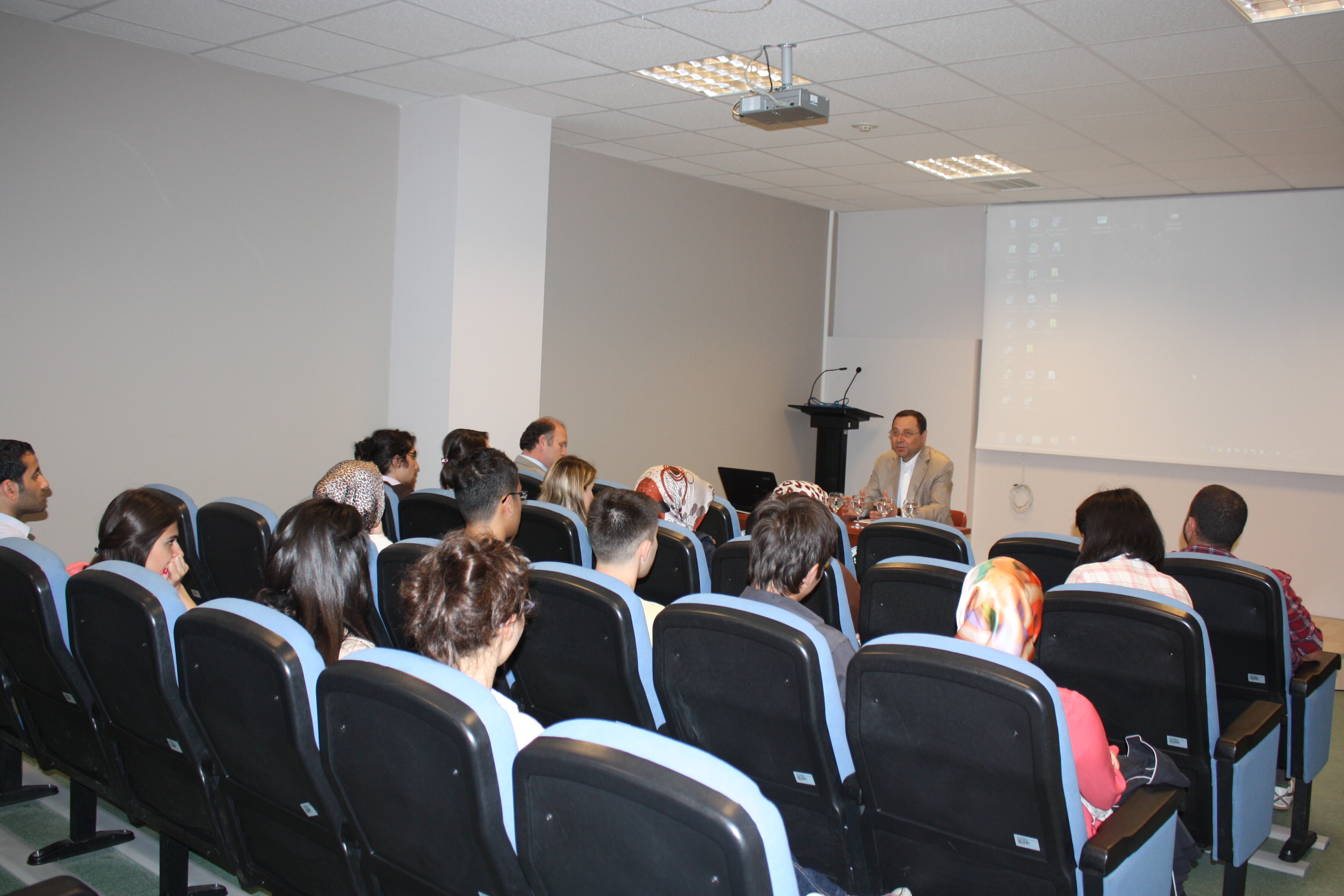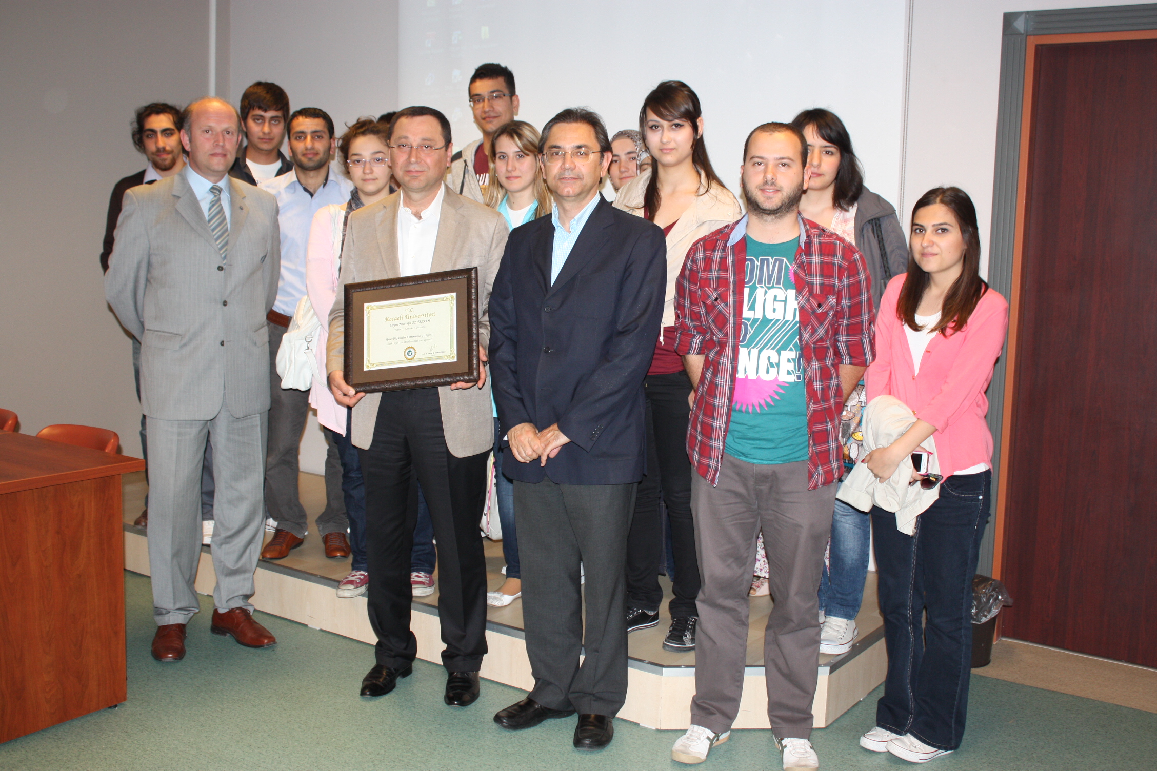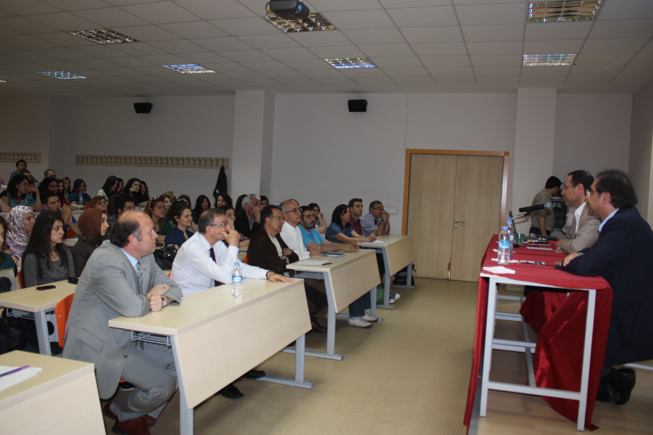Öztaşkın, üniversitede önce Genç Düşünceler Forumu’nun düzenlediği derse katıldı. Kocaeli Üniversitesi Çalışma Ekonomisi ve Endüstri İlişkileri Bölüm Başkanı Prof. Dr. Ahmet Selamoğlu, Öztaşkın ile öğrencileri tanıştırıp kısa bir sunum yaptıktan sonra dersi Öztaşkın’a bıraktı. Kocaeli Şube Başkanımız Salih Akduman da Genel Başkanımıza eşlik etti. Her bölümden öğrencinin katıldığı ilk derste Öztaşkın, sendikacılık yaşamını özetledikten sonra sendikaların görev ve misyonlarını anlattı. Sendikaların, üyelerinin hak ve çıkarlarını koruyan, sömürüye karşı çıkan, sömürünün ortadan kaldırılmasına çaba gösteren örgütler olduğunu belirten Öztaşkın, sendikaların siyasete müdahil olmaları ve siyaseti yönlendirmeleri gerektiğini kaydetti. Sömürü düzenini ise ancak siyasi partilerin değiştirebileceğini belirten Öztaşkın, sendika-siyaset ilişkisinin de nasıl olması gerektiğini şöyle anlattı: