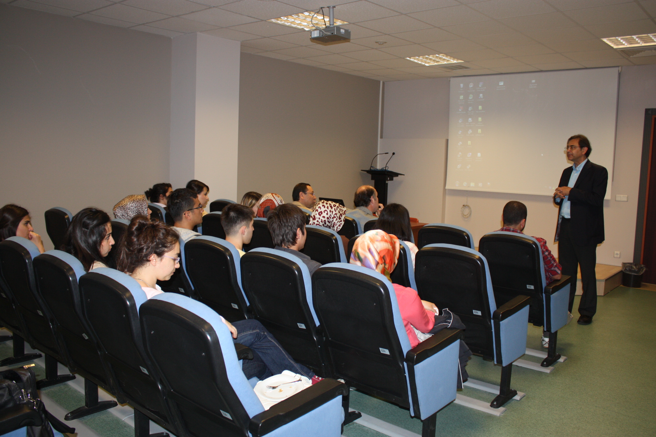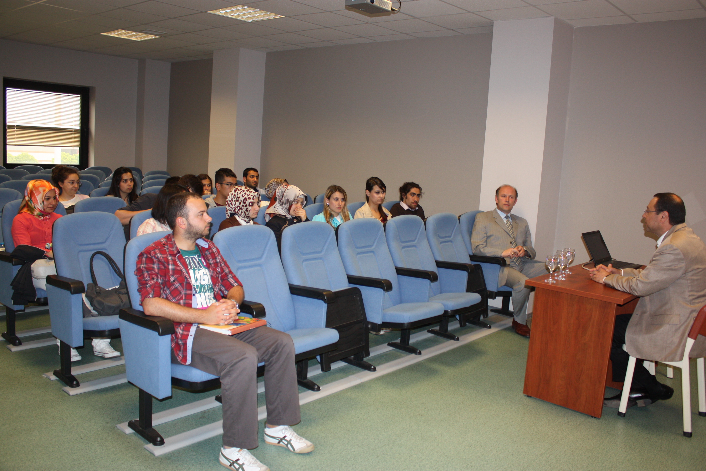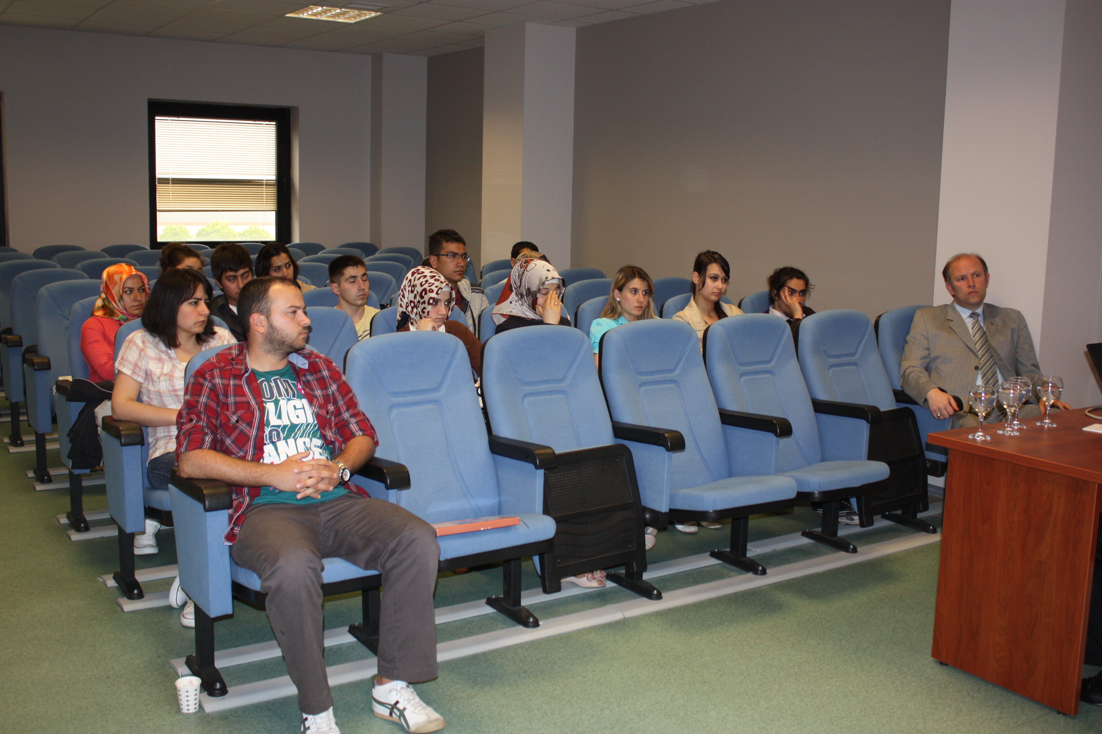 Öztaşkın, üniversitede önce Genç Düşünceler Forumu’nun düzenlediği derse katıldı. Kocaeli Üniversitesi Çalışma Ekonomisi ve Endüstri İlişkileri Bölüm Başkanı Prof. Dr. Ahmet Selamoğlu, Öztaşkın ile öğrencileri tanıştırıp kısa bir sunum yaptıktan sonra dersi Öztaşkın’a bıraktı. Kocaeli Şube Başkanımız Salih Akduman da Genel Başkanımıza eşlik etti. Her bölümden öğrencinin katıldığı ilk derste Öztaşkın, sendikacılık yaşamını özetledikten sonra sendikaların görev ve misyonlarını anlattı. Sendikaların, üyelerinin hak ve çıkarlarını koruyan, sömürüye karşı çıkan, sömürünün ortadan kaldırılmasına çaba gösteren örgütler olduğunu belirten Öztaşkın, sendikaların siyasete müdahil olmaları ve siyaseti yönlendirmeleri gerektiğini kaydetti. Sömürü düzenini ise ancak siyasi partilerin değiştirebileceğini belirten Öztaşkın, sendika-siyaset ilişkisinin de nasıl olması gerektiğini şöyle anlattı: