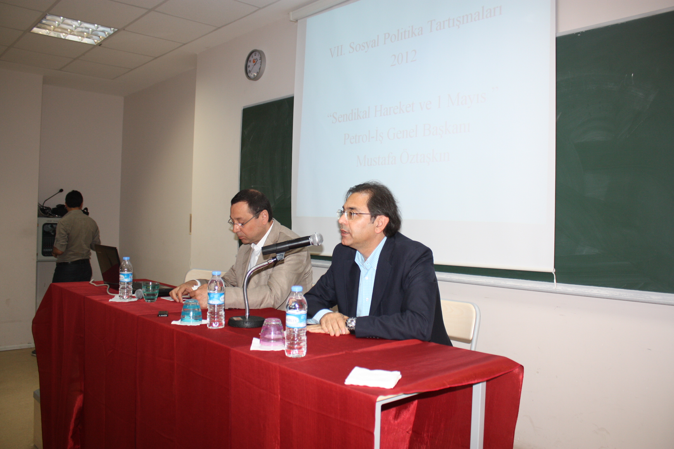 Yine Kocaeli Üniversitesi Çalışma Ekonomisi ve Endüstri İlişkileri Bölümü’nün Sosyal Politika Tartışmaları Etkinliği’nin 7’incisine katılan Öztaşkın bu bölümde daha kalabalık bir öğrenci grubuna seslendi. “Sendikal Hareket ve 1 Mayıs ” konusunun işlendiği bu bölümde 1800’lü yıllardan başlayarak çalışma hayatını anlatan Öztaşkın şunları söyledi: