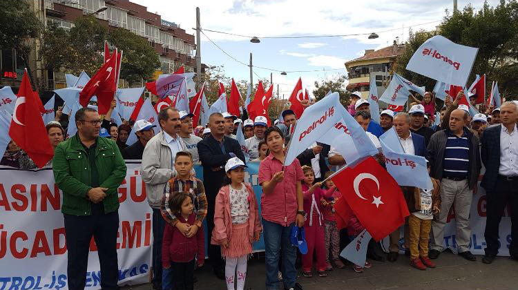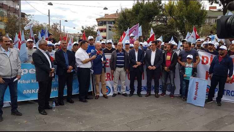 Ankara şubemizin örgütlü olduğu Konya’da kurulu Pakpen işyerinde,işverenin üyelerimize yönelik sendikasızlaştırma ve işten atma saldırılarına karşı günlerdir devam eden direniş bugün de (08.10.2017) Konya kent merkezindeki kitlesel basın açıklaması ile sürdü. Açıklama ve etkinliğe Genel Sekreterimiz Ahmet Kabaca,Genel Örgütlenme ve Eğitim Sekreterimiz Mustafa Mesut Tekik ile Türk-İş’e bağlı sendikaların temsilcileri,STK’lar,Unilever ve Alpla işyerlerimizden temsilci ve üyelerimiz ile Pakpen emekçileri ve ailelerinin de aralarında bulunduğu yaklaşık 500 kişi katıldı. Genel Örgütlenme ve Eğitim Sekreterimiz Mustafa Mesut Tekik ve Genel Sekreterimiz Ahmet Kabaca’nın “dayanışma,mücadele ve direniş” içerikli konuşmalarından sonra Ankara Şube Başkanımız Şuayip Gül,basına ve kamuoyuna yönelik metni okudu.