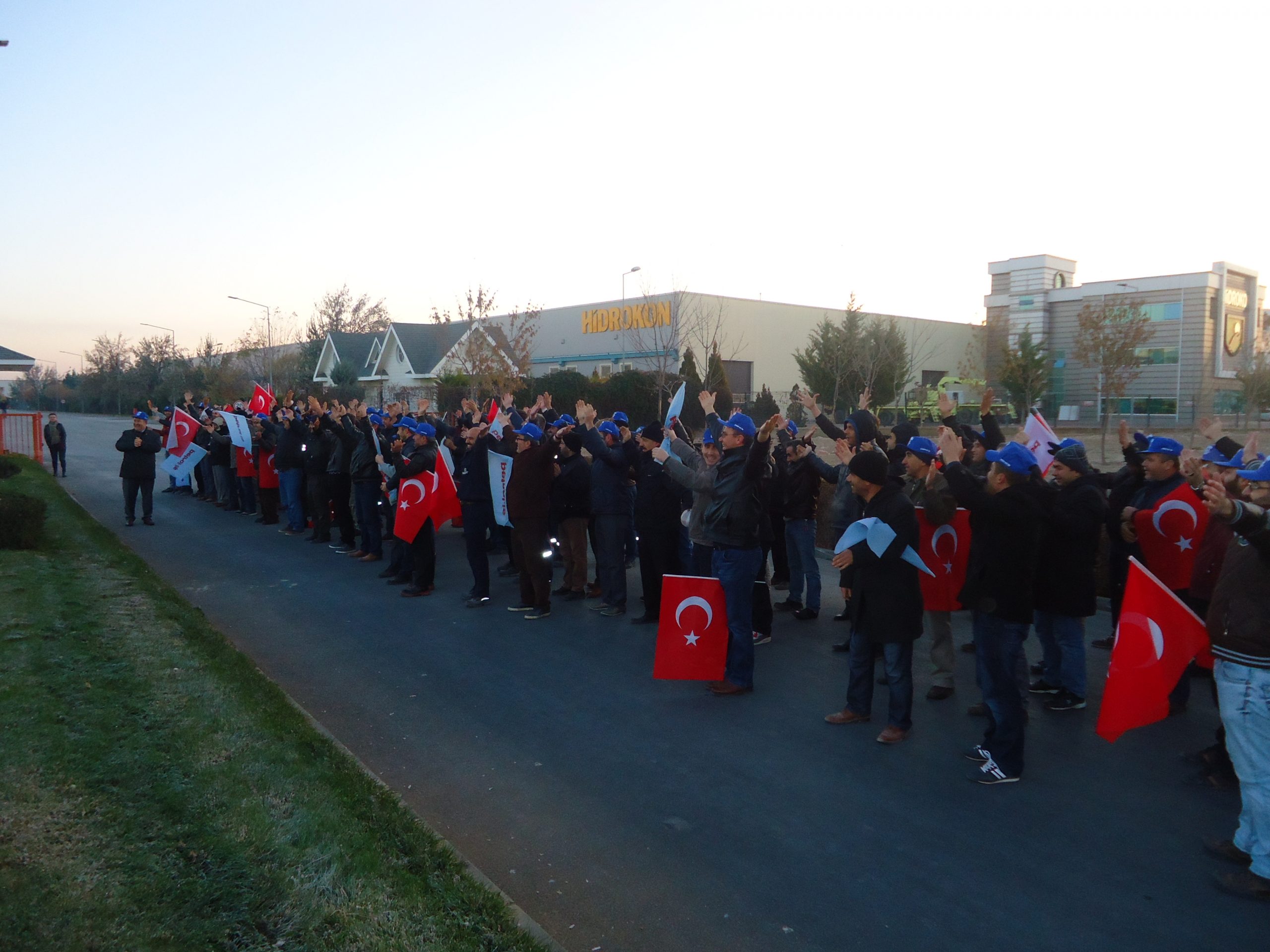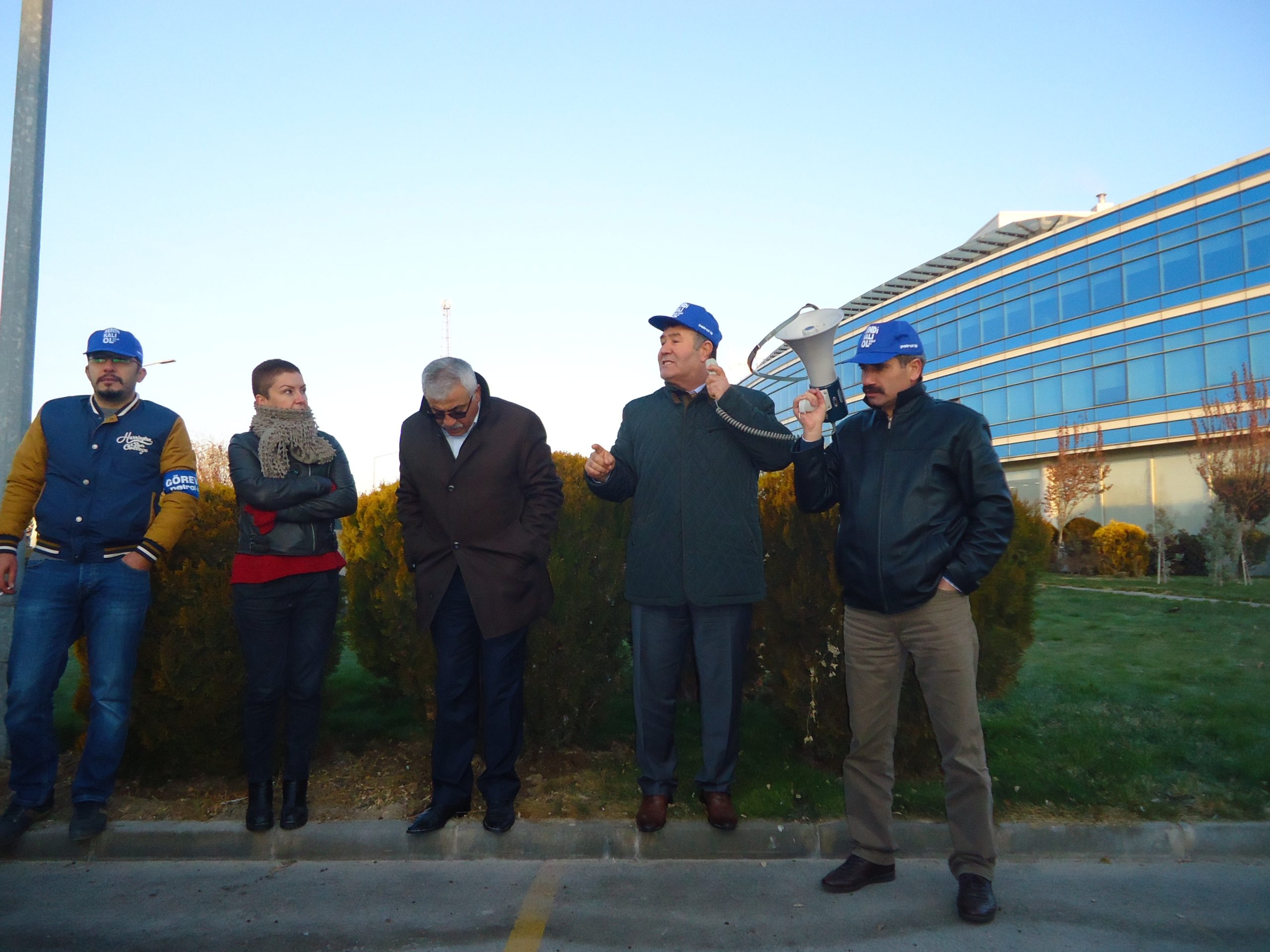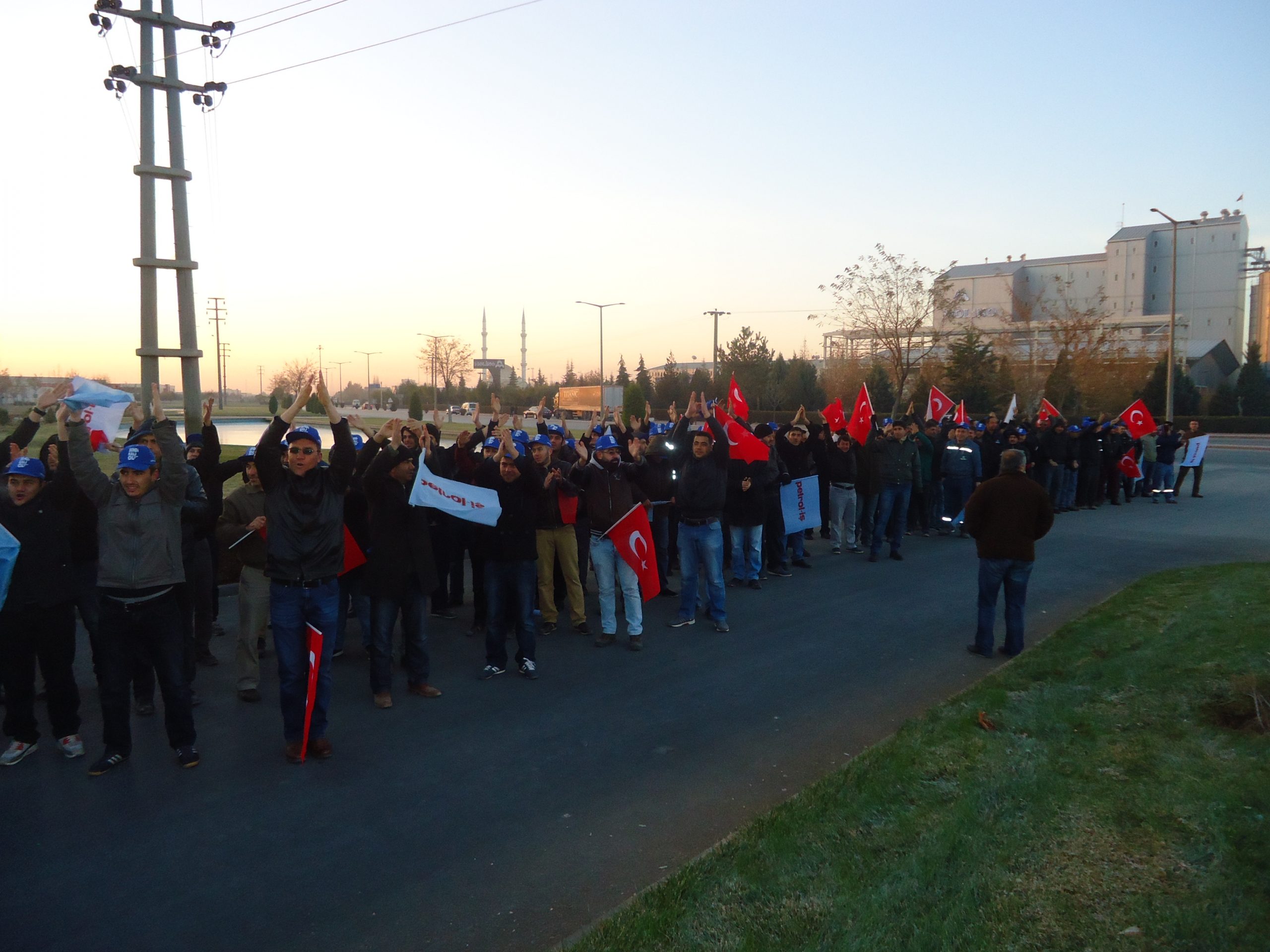 Konya’da kurulu Pakpen Plastik Boru ve Yapı Elemanları San. ve Tic. A.Ş.’de çalışan üyelerimizin işyerinde yaşanan ve çözümsüz kalan sorunları protesto etmek amacıyla 23 Kasım Çarşamba günü gerçekleştirdiği eyleme, Ankara Şube Başkanımız Şuayip Gül, Şube Başkan Yardımcılarımız Sabri Polat, Baki Turhan ve  sendikamız avukatlarından Sevda Bayramoğlu da katılarak destek verdi.