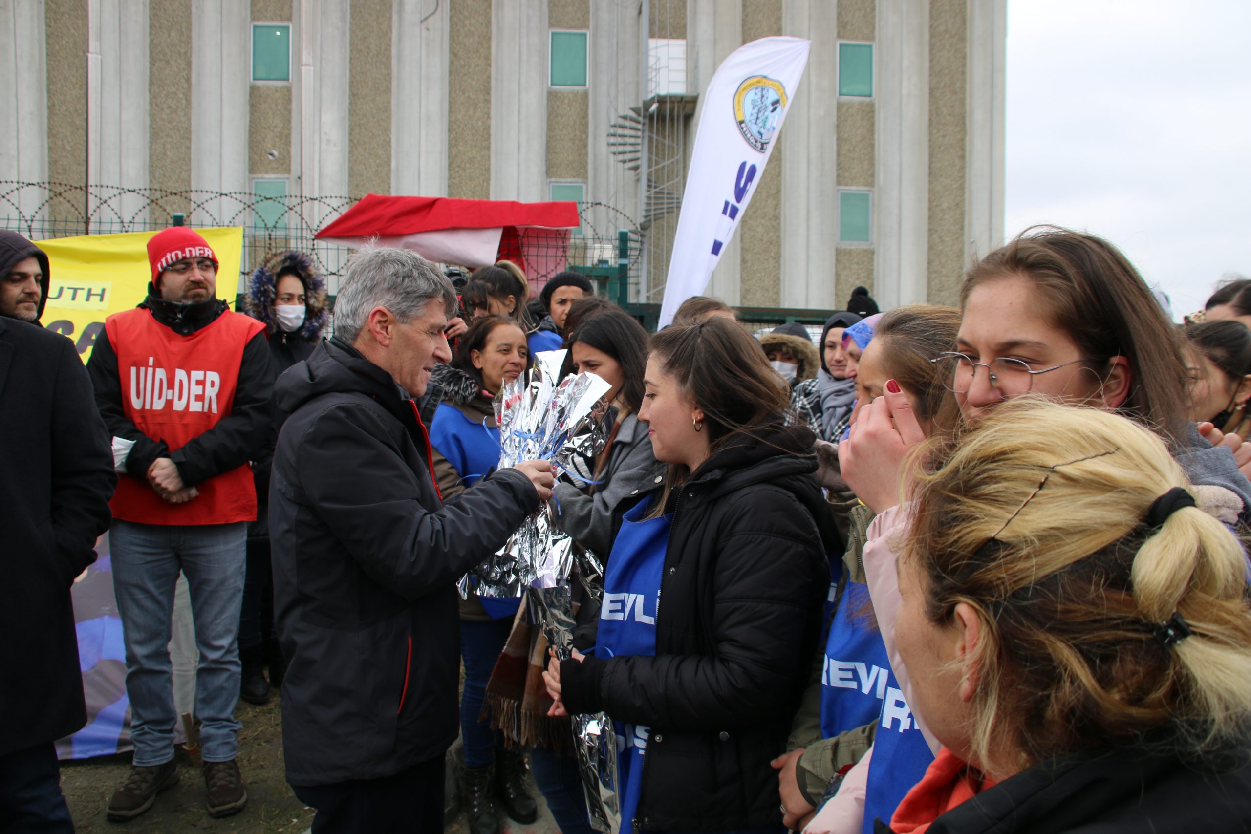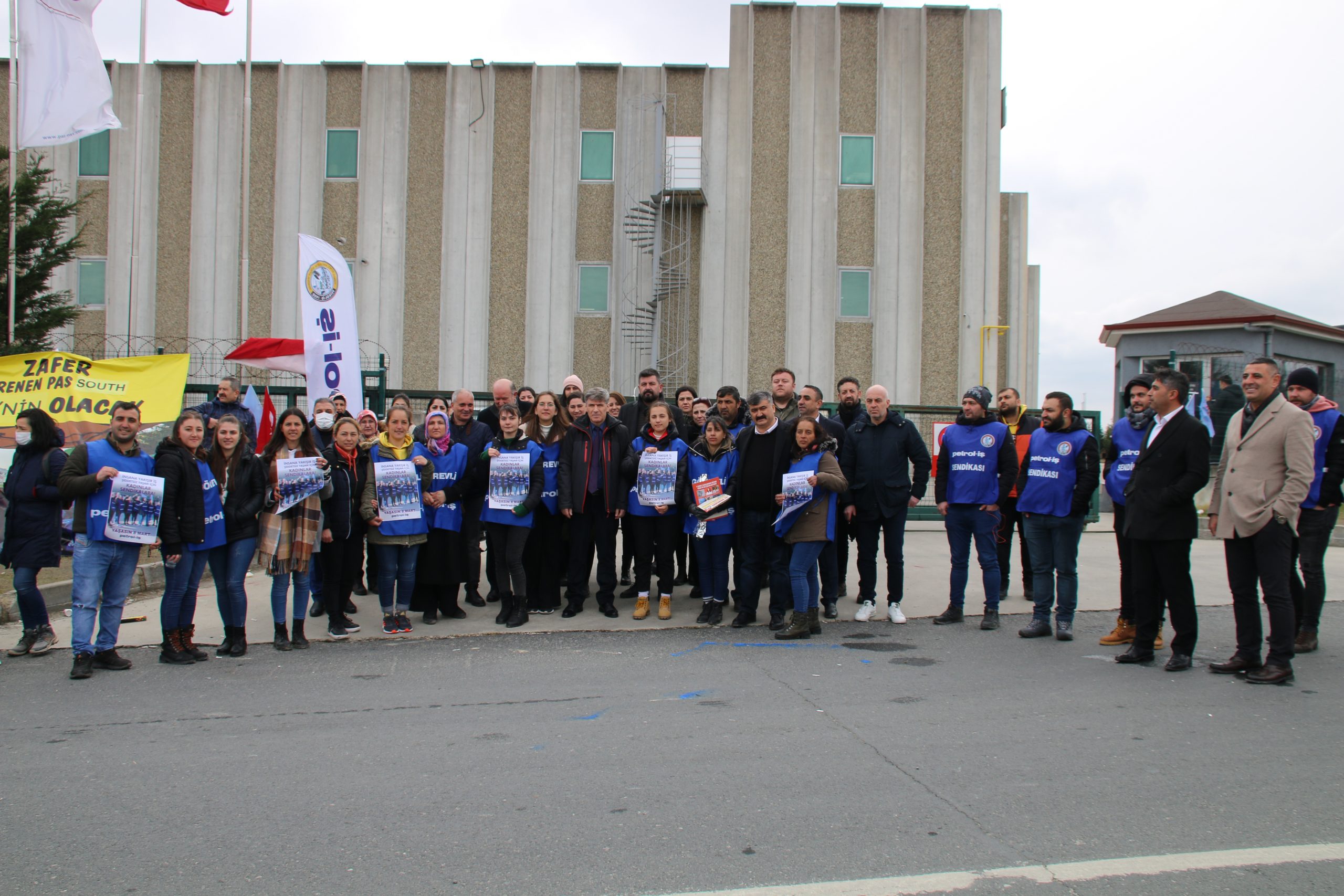 İnsana yakışır bir iş ve ücret istedikleri için sendikamızda örgütlenen ve sendikalaştıkları için işten atılan 17’si kadın 20 Pas South işçisinin mücadelesi sürüyor. Dün, sendikamız Merkez Yönetim Kurulu’nun da katılımıyla fabrika önünde coşkulu bir 8 Mart etkinliği yapıldı.
