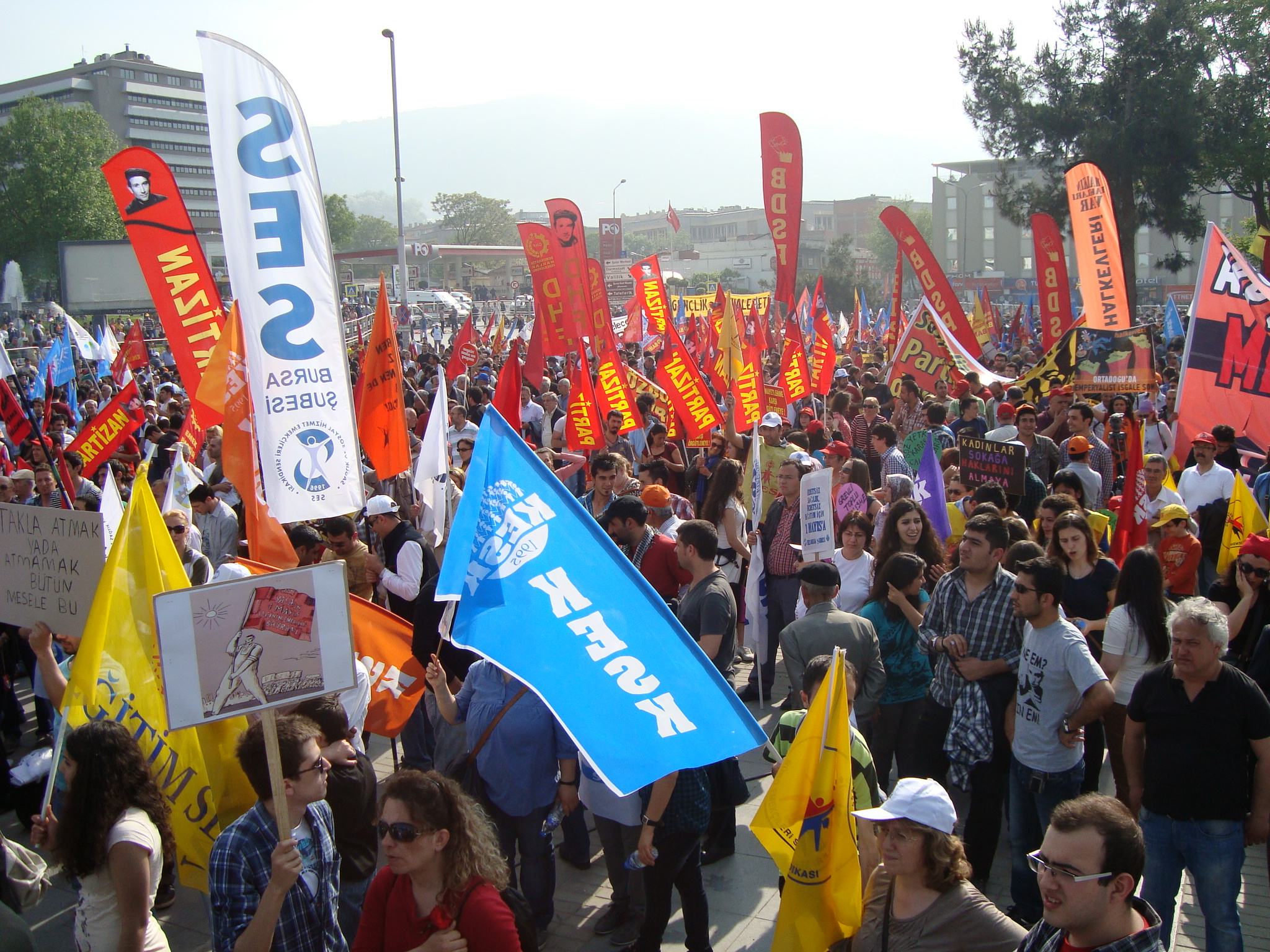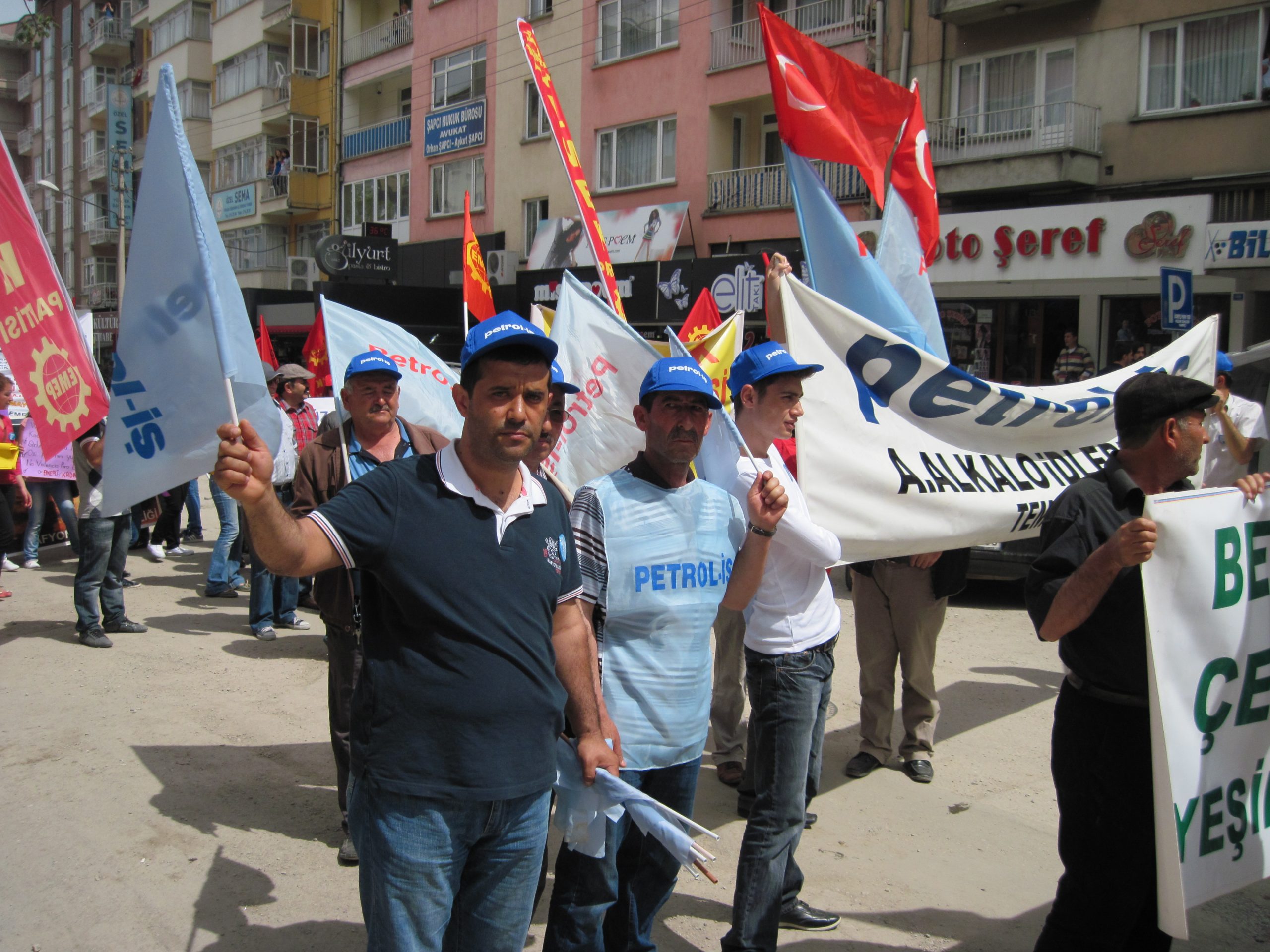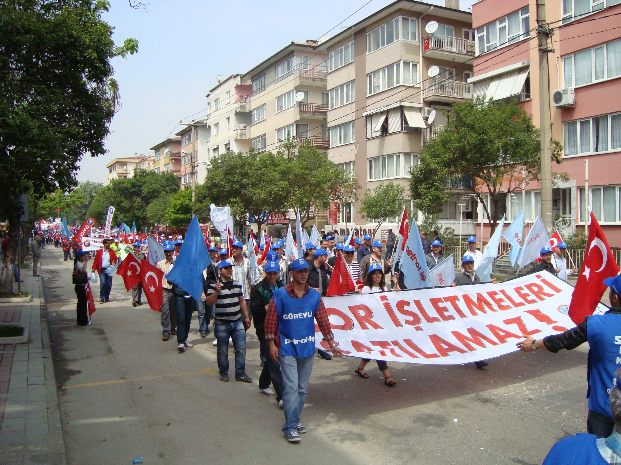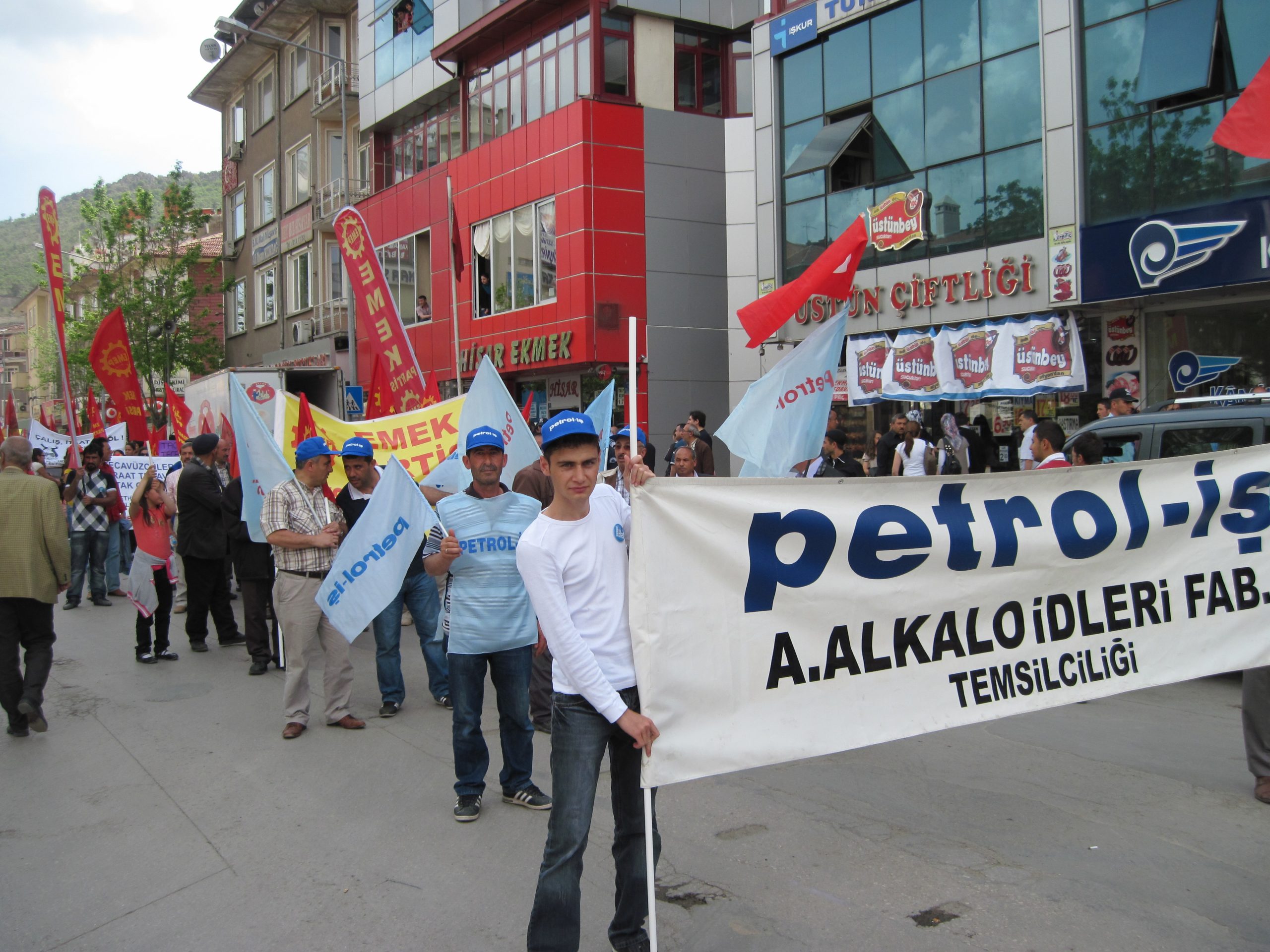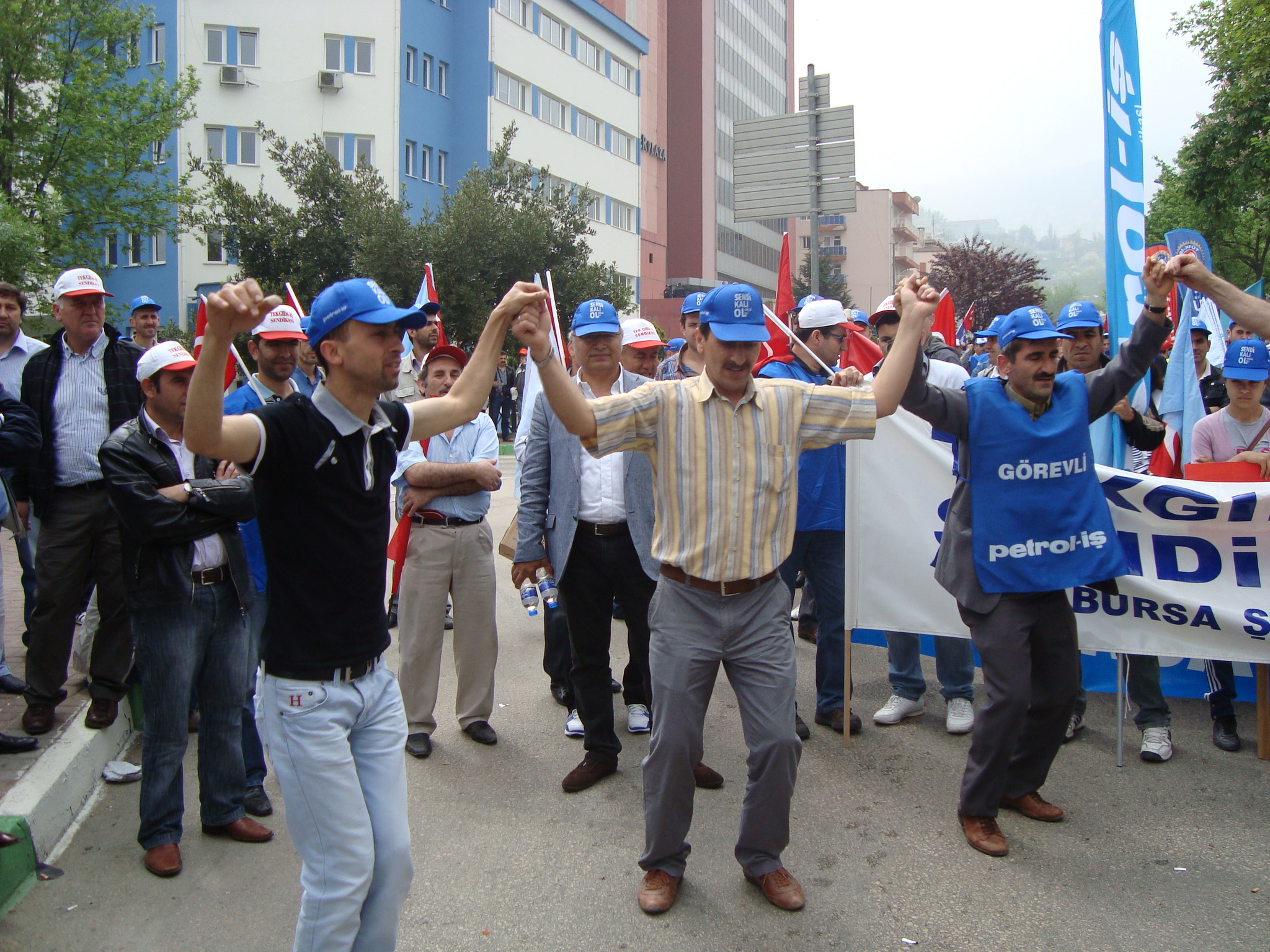 Petrol- İş Sendikası Bursa Şubesi 1 Mayıs işçi, emekçi bayramını coşkuyla kutladı. Orhangazi Polifleks, Gemlik Gübre’den, Botaş ve Rietter Erkut işyerlerinden gelen üyelerimiz, 1 Mayıs sabahı saat 10.30’da Bursa Stadyumu karşısında toplanarak kortejdeki yerlerini aldılar. Petrol-İş Bursa Şubesi üyeleri kent meydanındaki 1 Mayıs alanına yürüyerek, kutlamaya katıldılar.