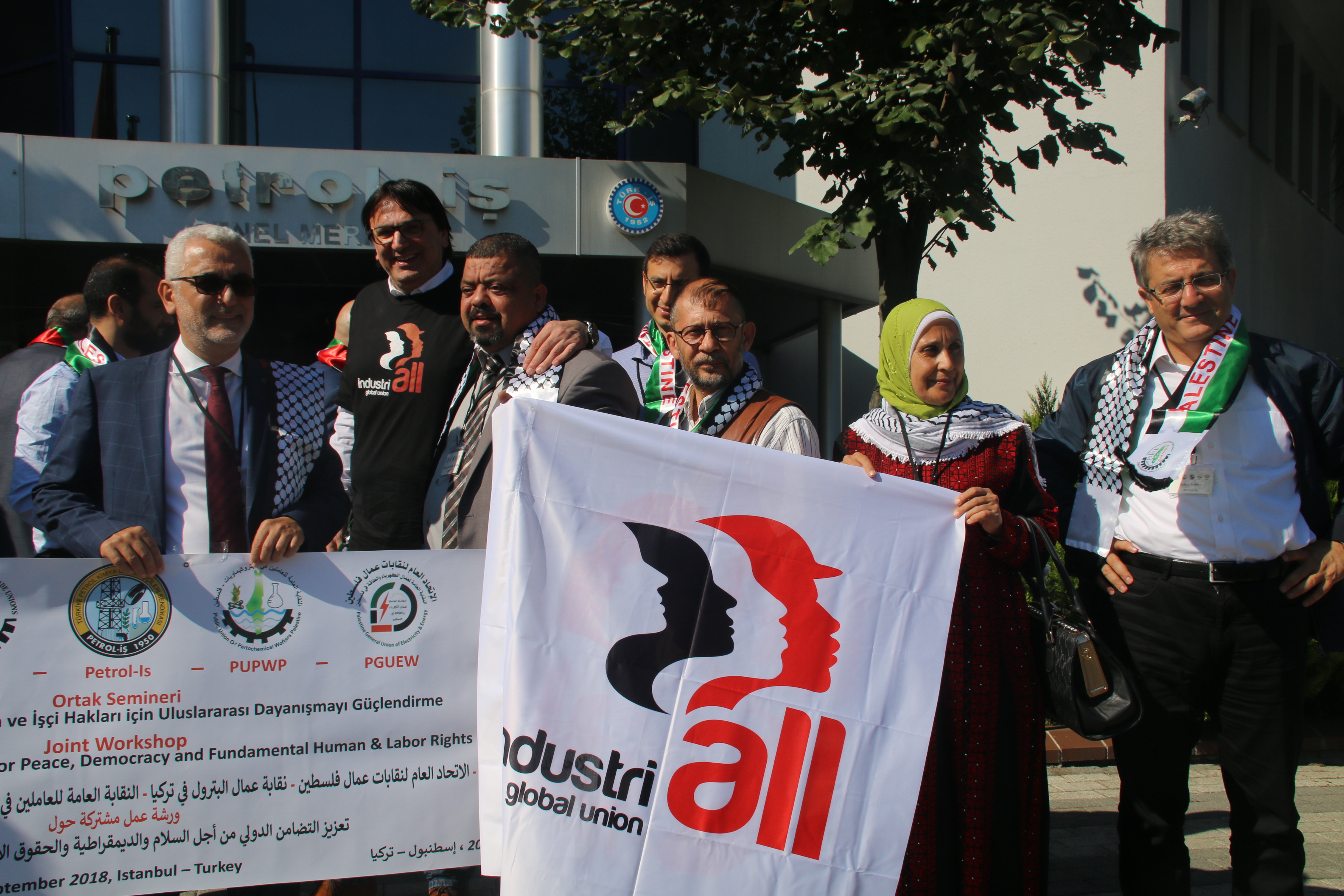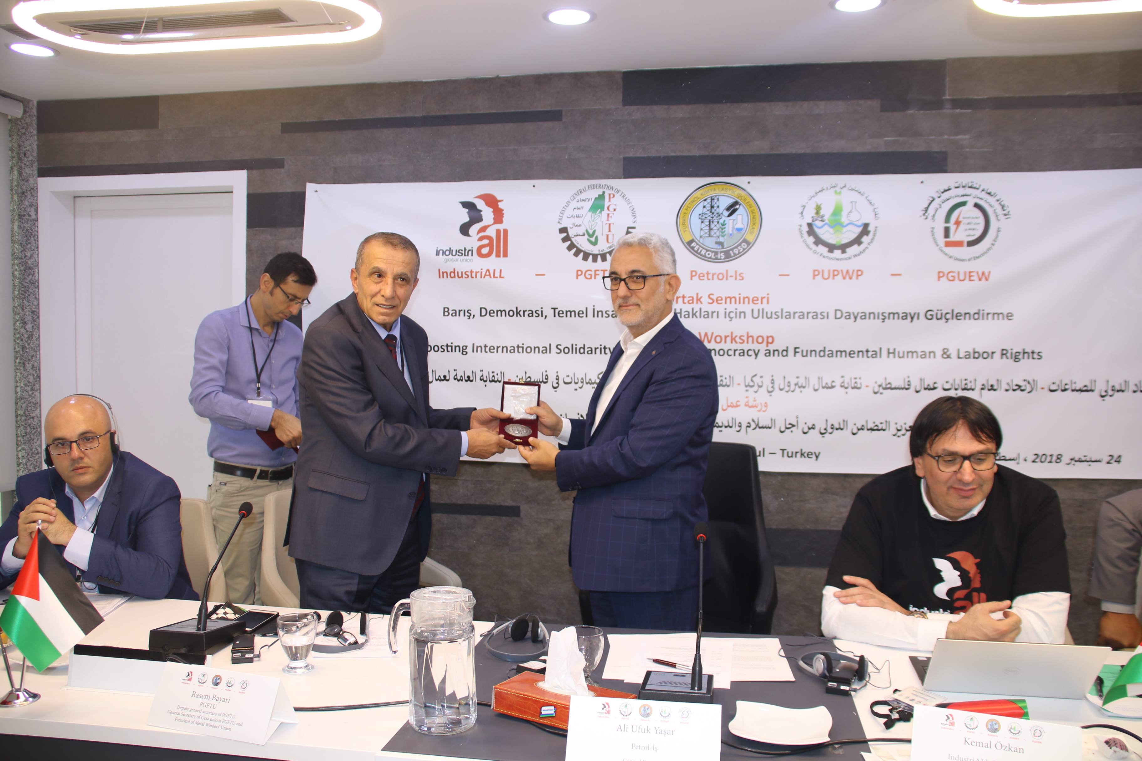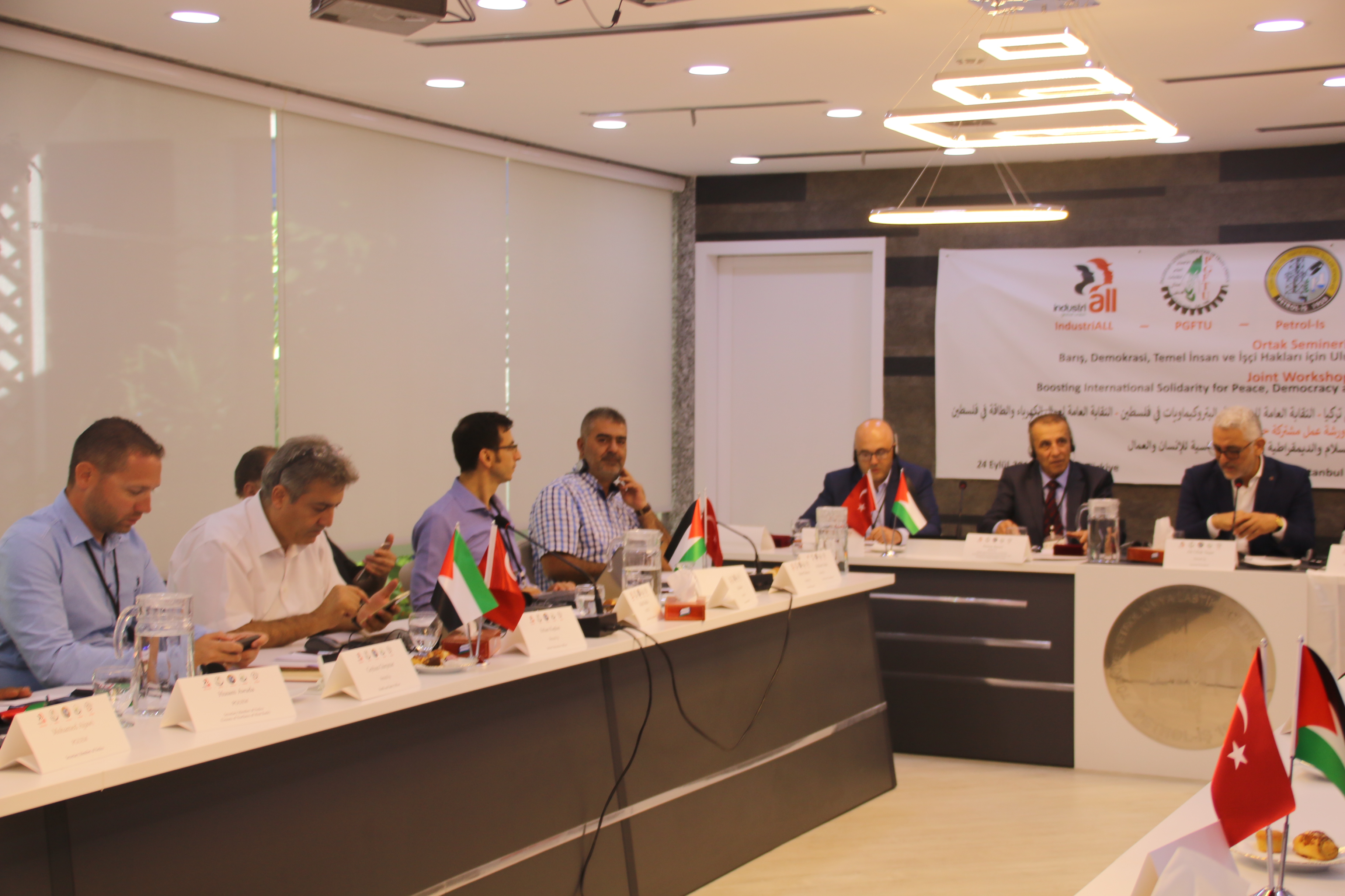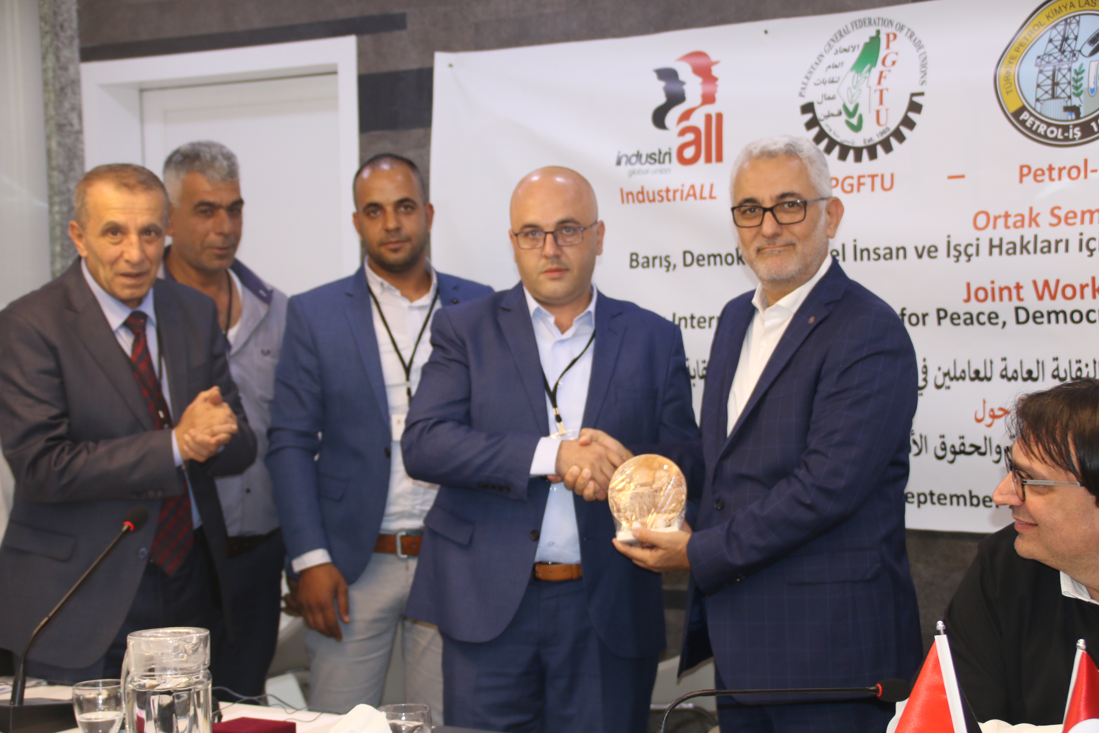 Sendikamızın son olarak 26 Mart tarihinde Filistin’e yaptığı ziyaretin ardından Filistin Sendikaları ile dayanışma ve işbirliği süreci devam ediyor. Bugün (24 Eylül 2018), Filistin halkı ve sendikaları ile varolan ilişkileri daha da ilerletmek için Petrol-İş Genel Merkezinde “Barış, Demokrasi, Temel İnsan ve İşçi Hakları İçin Uluslararası Dayanışmayı Güçlendirme Semineri” yapıldı.