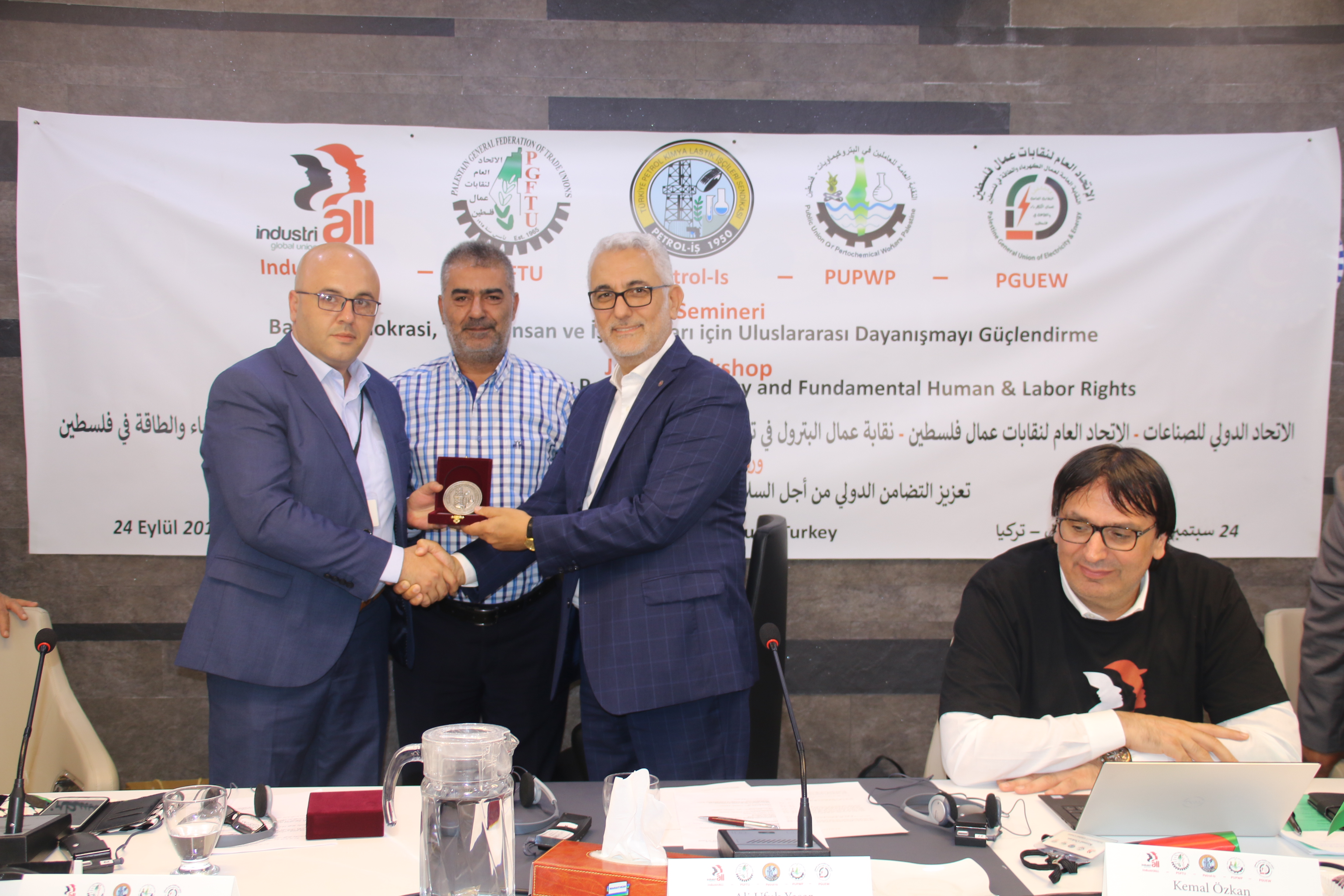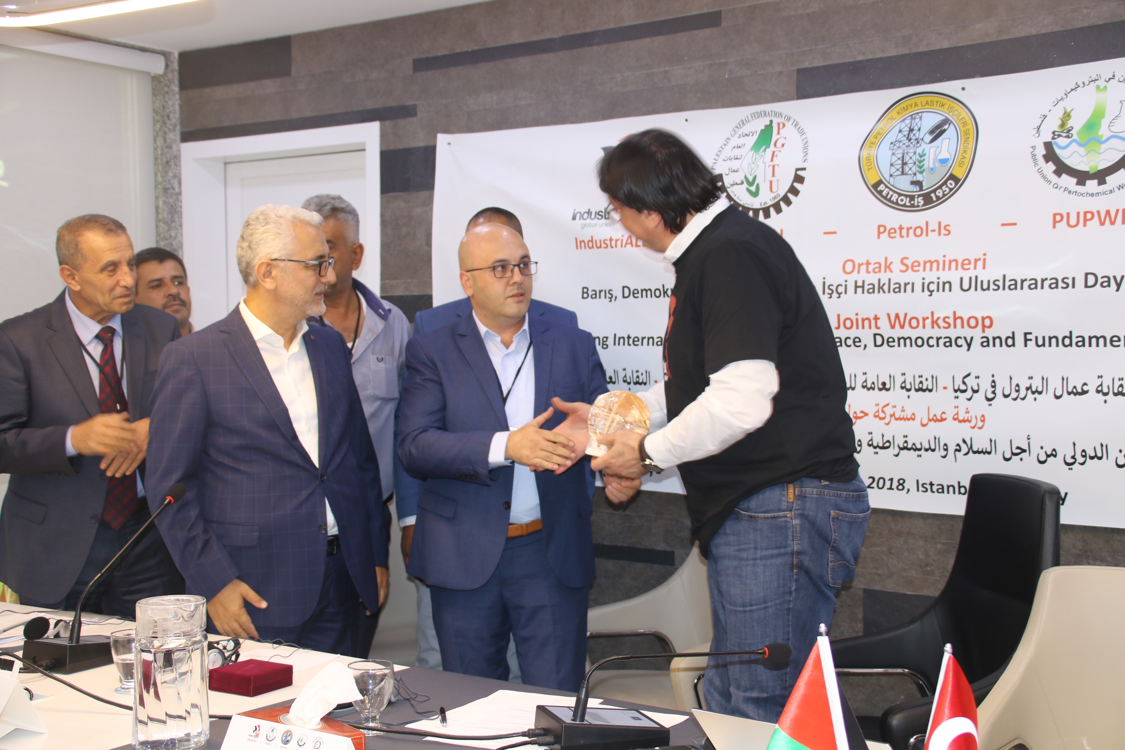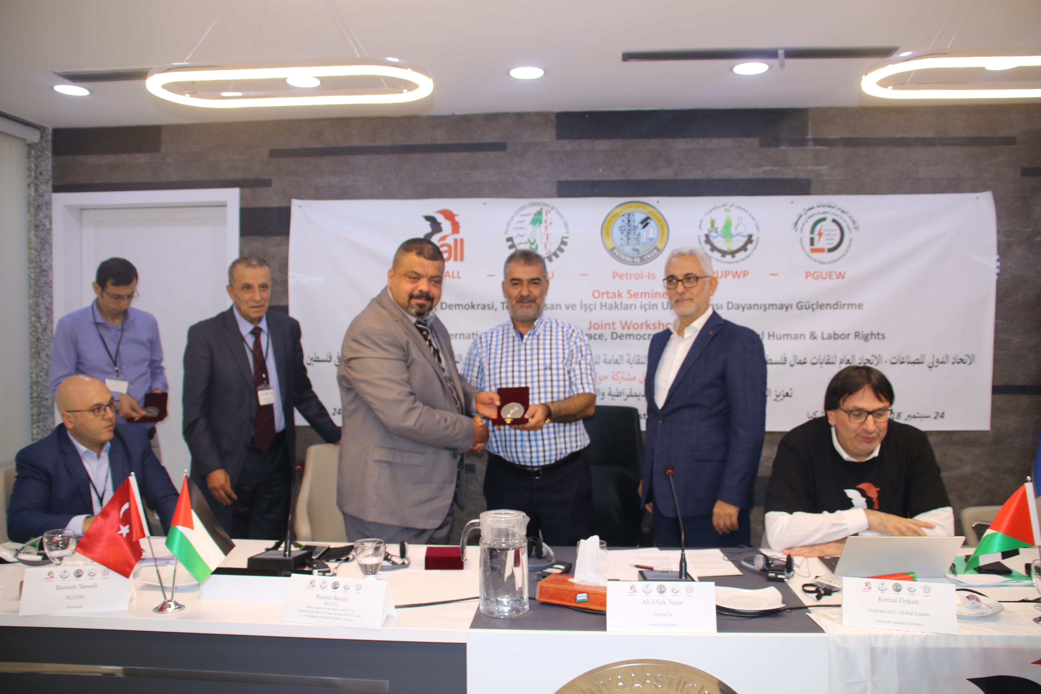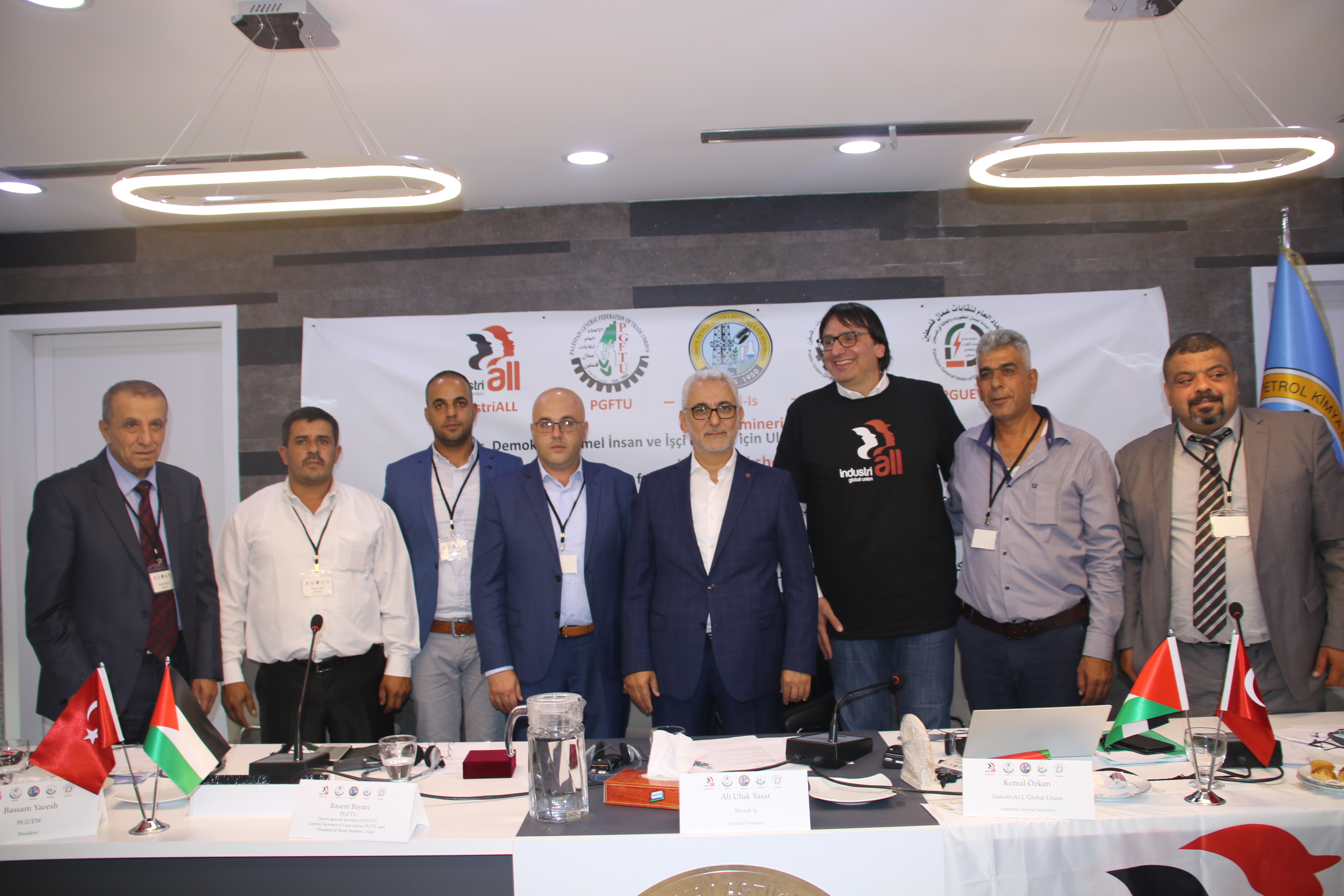Sendikamızın son olarak 26 Mart tarihinde Filistin’e yaptığı ziyaretin ardından Filistin Sendikaları ile dayanışma ve işbirliği süreci devam ediyor. Bugün (24 Eylül 2018), Filistin halkı ve sendikaları ile varolan ilişkileri daha da ilerletmek için Petrol-İş Genel Merkezinde “Barış, Demokrasi, Temel İnsan ve İşçi Hakları İçin Uluslararası Dayanışmayı Güçlendirme Semineri” yapıldı.