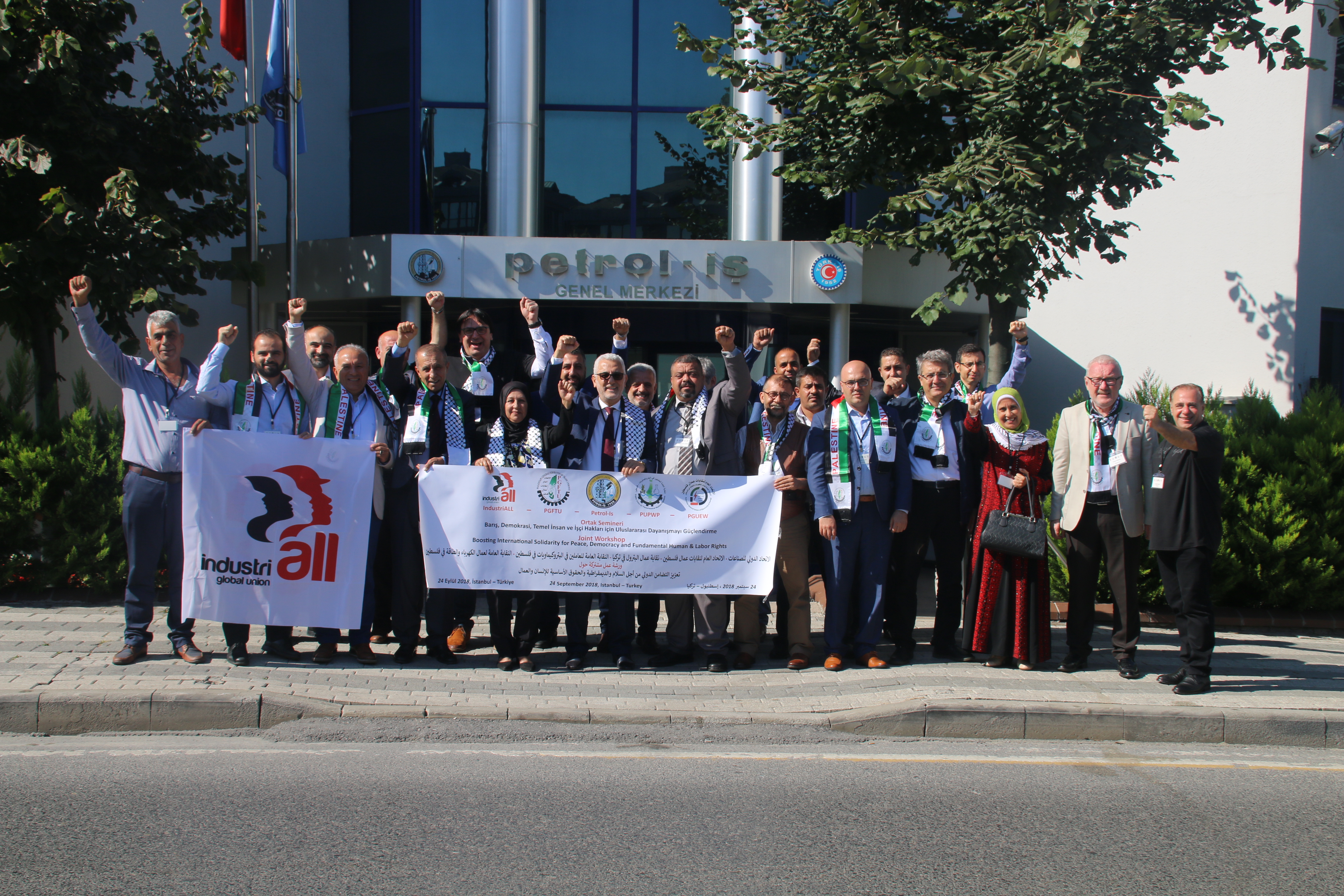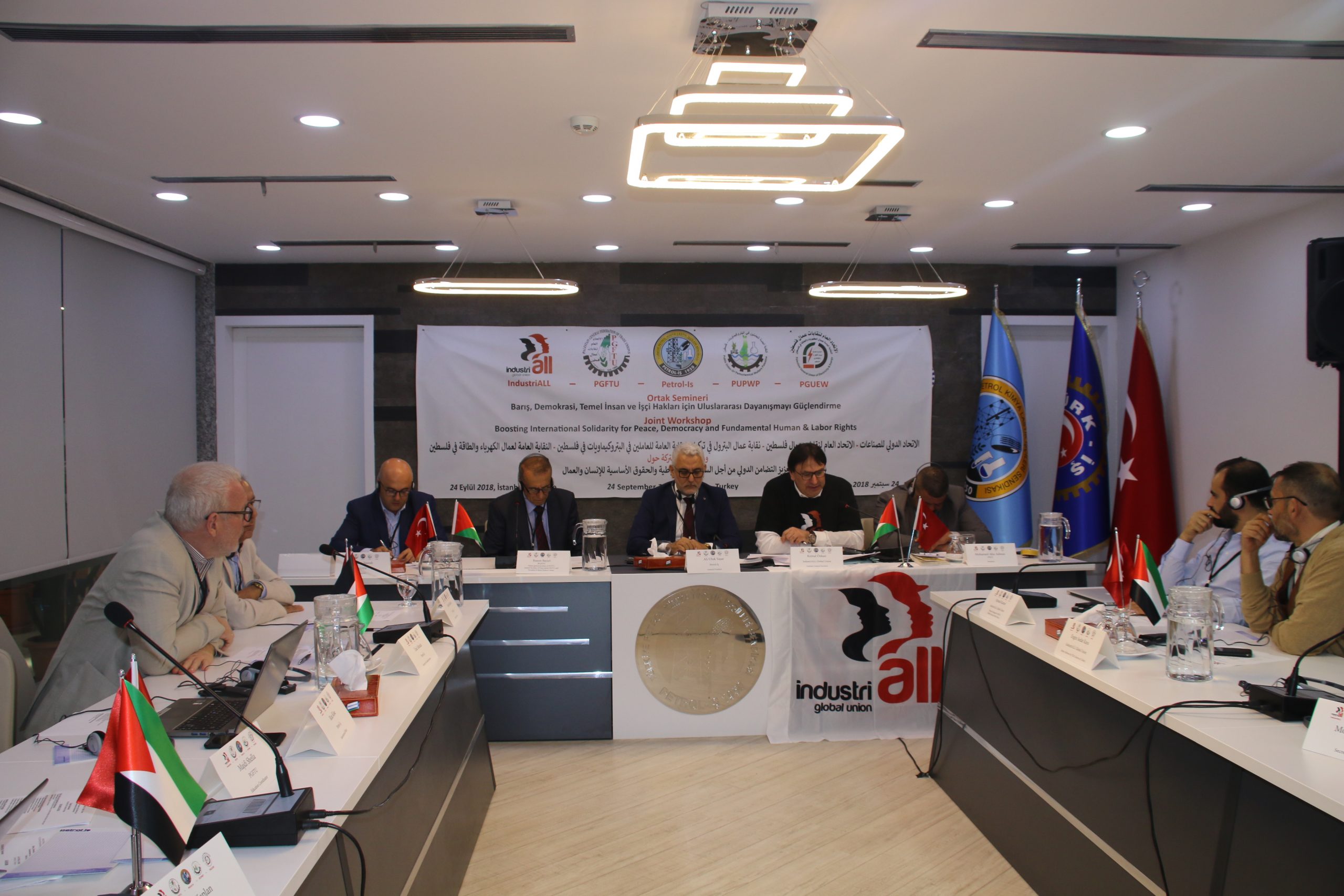 Seminere; IndustriALL Küresel Sendika adına Genel Sekreter Yardımcısı Kemal Özkan ve yardımcıları, Filistin’den, Filistin Genel İşçi Sendikaları Federasyonu Genel Sekreter Yardımcısı Rasem Bayari, Petrokimya İşçileri Kamu Sendikası Genel Başkanı Mohamed Abu Adwan, Genel Elektrik ve Enerji İşçileri Sendikası Genel Başkanı Bassam Yaeesh başkanlığında toplamda 12 sendikacıdan oluşan heyetler katıldı. Konuk olarak davet edilen Filistin İstanbul Başkonsolosu AbdalKarim Al-Khatib ne yazık ki geçirdiği bir rahatsızlık dolayısıyla seminerde yer alamadı. UHİM (Uluslararası Hak İhlalleri İzleme Merkezi) Başkanı Ayhan Küçük de seminerin açılış kısmına konuk olarak katıldı.