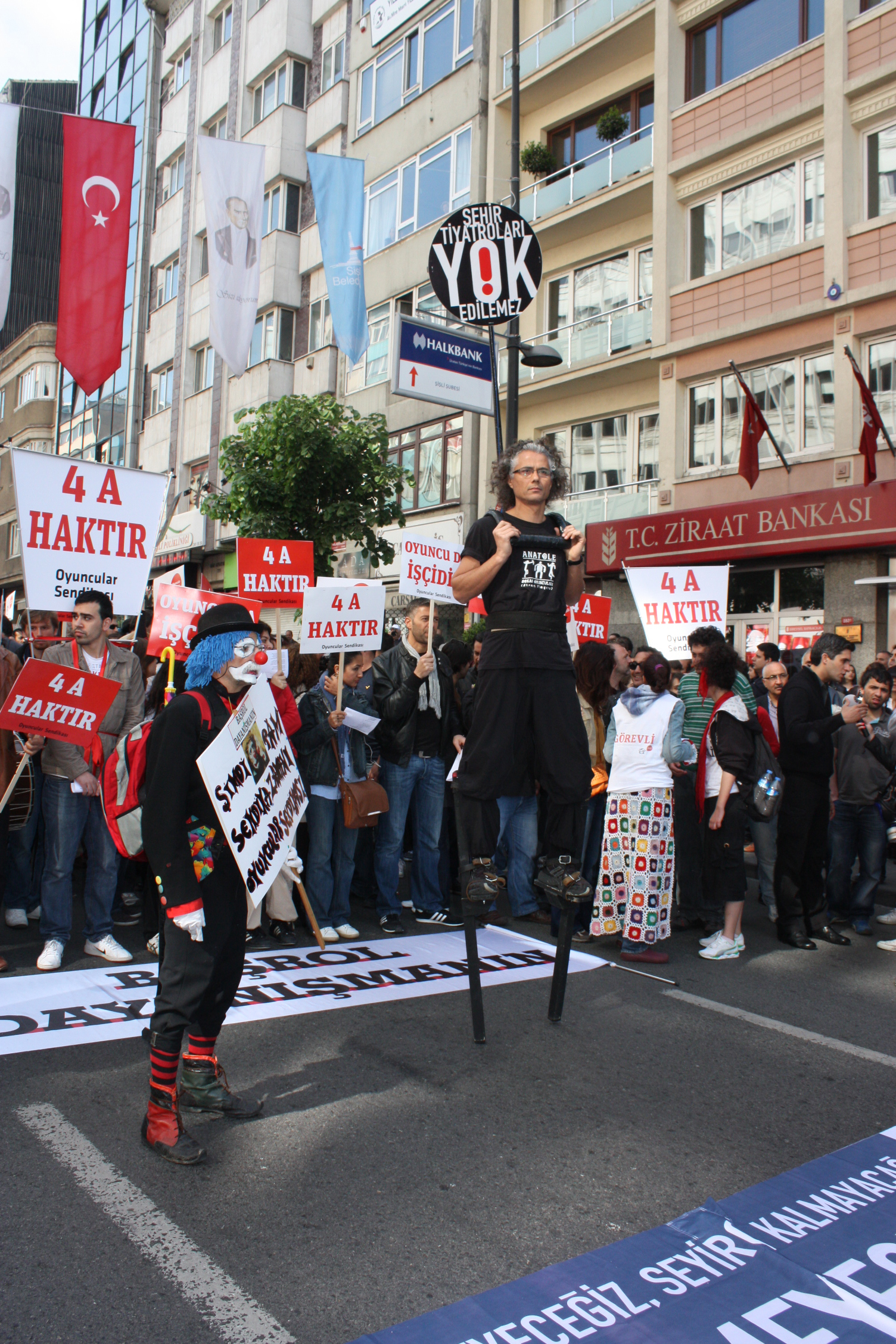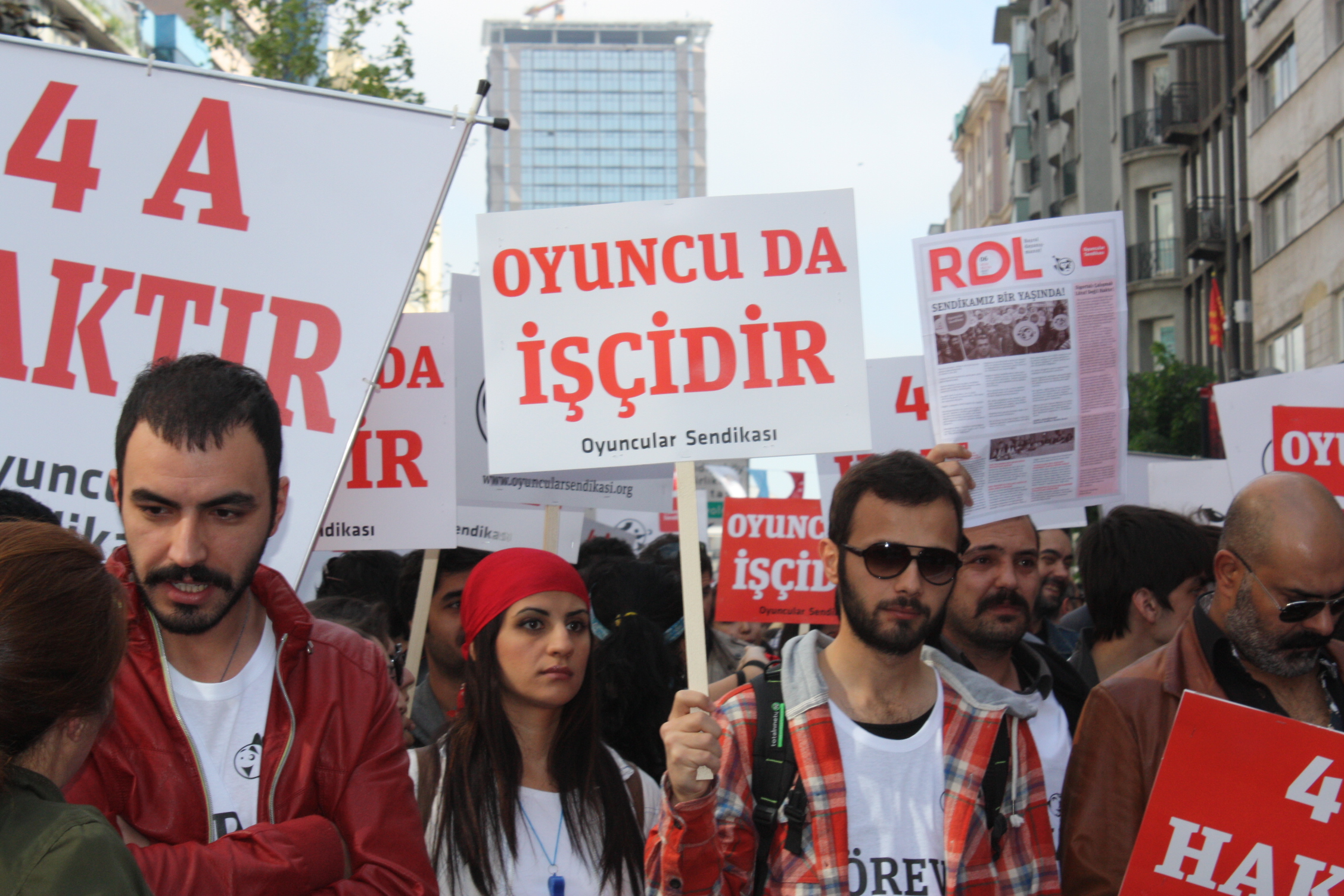 Geçen yıl kurulan Oyuncular Sendikası, BİROY Sinema Oyuncuları Meslek Birliği, İstanbul Şehir Tiyatroları Seyirci Platformu, Sine-Sen, İstanbul Barosu da Şişli kolundan kortej oluşturarak Taksim’e yürüdü. Bu yıl oyuncuların, sanatçıların, tiyatrocuların 1 Mayıs’a yoğun katılımı dikkat çekti. Oyuncular, tiyatroların özelleştirilmesine ve çalışma saatlerine ilişkin tepkilerini dile getirdiler. Ücret ve tazminat alacakları ödenmeden işten atılan ve aylardır direnişte olan Hey Tekstil işçileri de “Direne direne kazanacağız, Yaşasın 1 Mayıs” pankartı ile 1 Mayıs’a katıldılar.