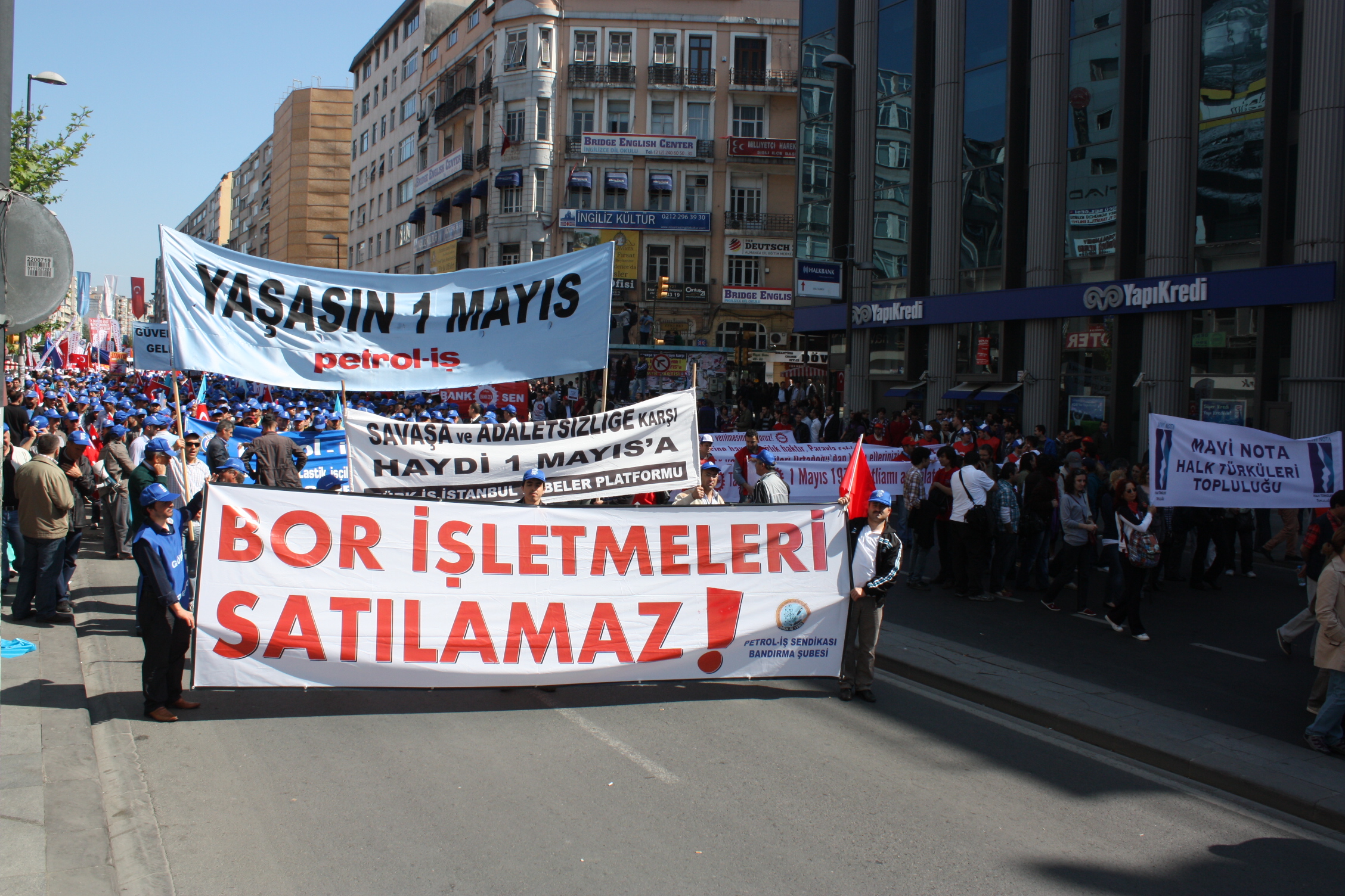 Bandırma şubemizden üyelerimiz de “ Bor İşletmeleri Satılamaz” pankartı açarak sembolik de olsa yürüyüş kortejindeki yerlerini aldılar. SGBP içerisinde Petrol-İş kitlesel katılımıyla dikkat çekti. Sendikal Güç Birliği Platformu bileşeni sendikalar da 1 Mayıs’a yoğun katılım gösterdiler. İstanbul 1 Nolu şubemiz örgütlü olduğumuz işyerleri ve şube yöneticileriyle birlikte 1 Mayıs kutlamalarına Taksim’de katıldı. İstanbul 1 Nolu Şube Başkanımız Reşat Tüysüz, Sendikal Güç Birliği Platformu, Türk-İş İstanbul Şubeler Platformu ve Petrol-İş’in İstanbul’daki 1 Mayıs Tertip Komitesi’nde de ayrıca görev alarak, 1 Mayıs kutlamalarına etkin ve coşkulu katılım için büyük gayret gösterdi.