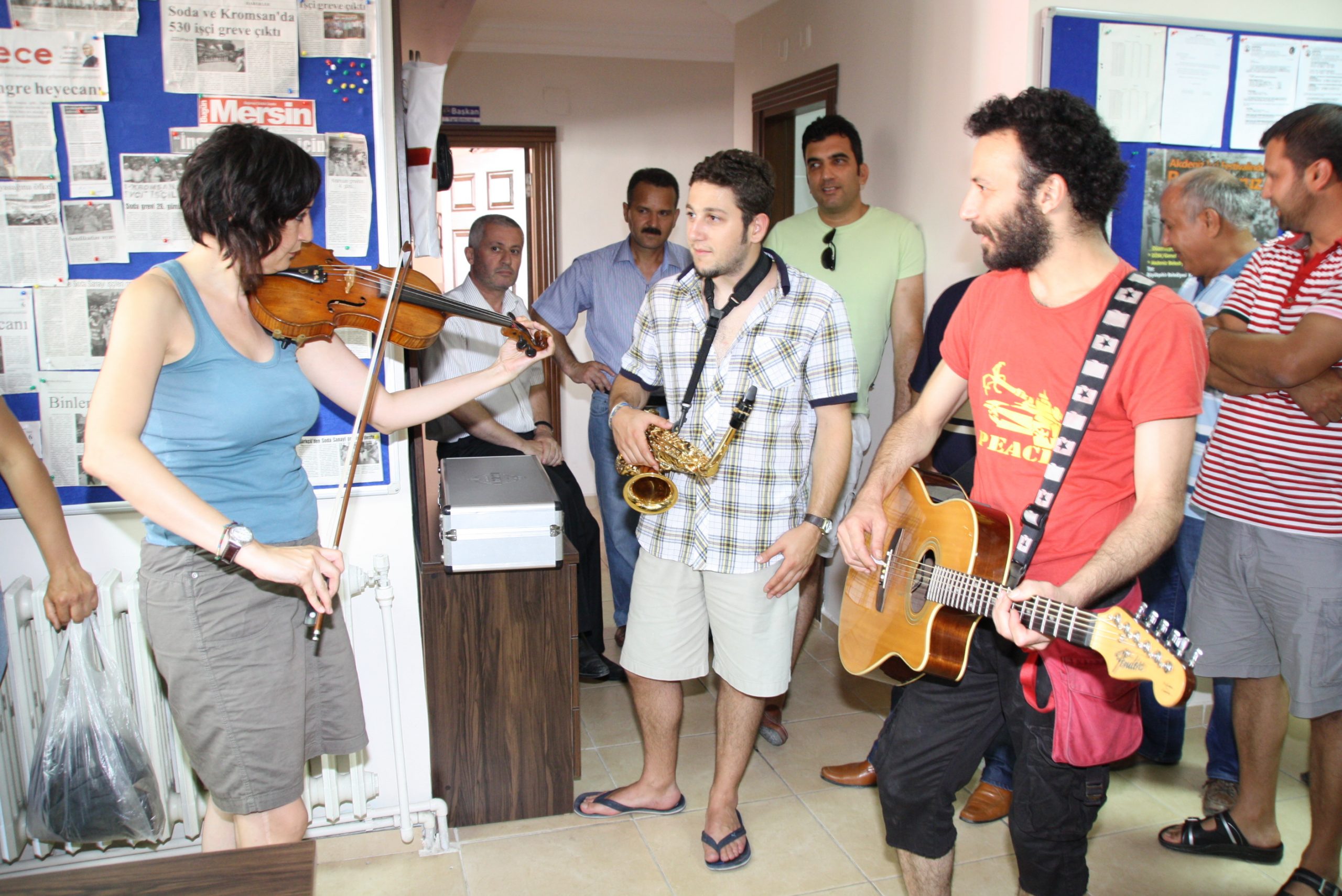 14 Haziran: Bandista Müzik Grubu Mersin şubemizde Soda grevci işçilerine destek ve moral konseri verdi. (Foto: 383, 385, 412, 415, 397)