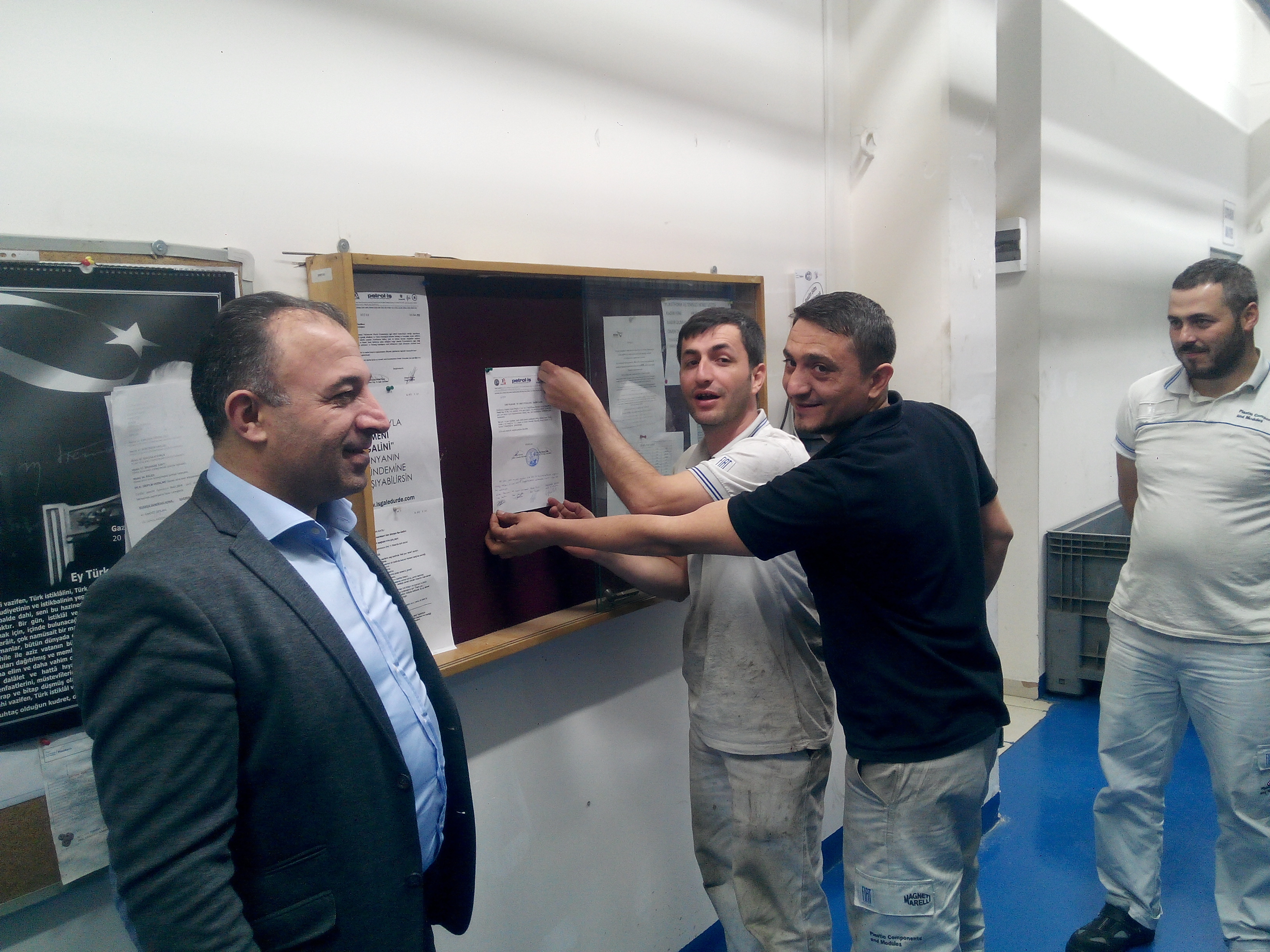 22 Nisan Cuma günü Bursa Şubemize bağlı İnegöl Organize Sanayisi’nde faaliyet gösteren Plastiform Plastik San. Tic. A.Ş işyerinde grev ilanı asıldı. Bursa Şube Başkanımız Erhan Yakışan, grev ilanını Plastiform Plastik işyerinin ilan panosuna üyelerimizle birlikte astı.