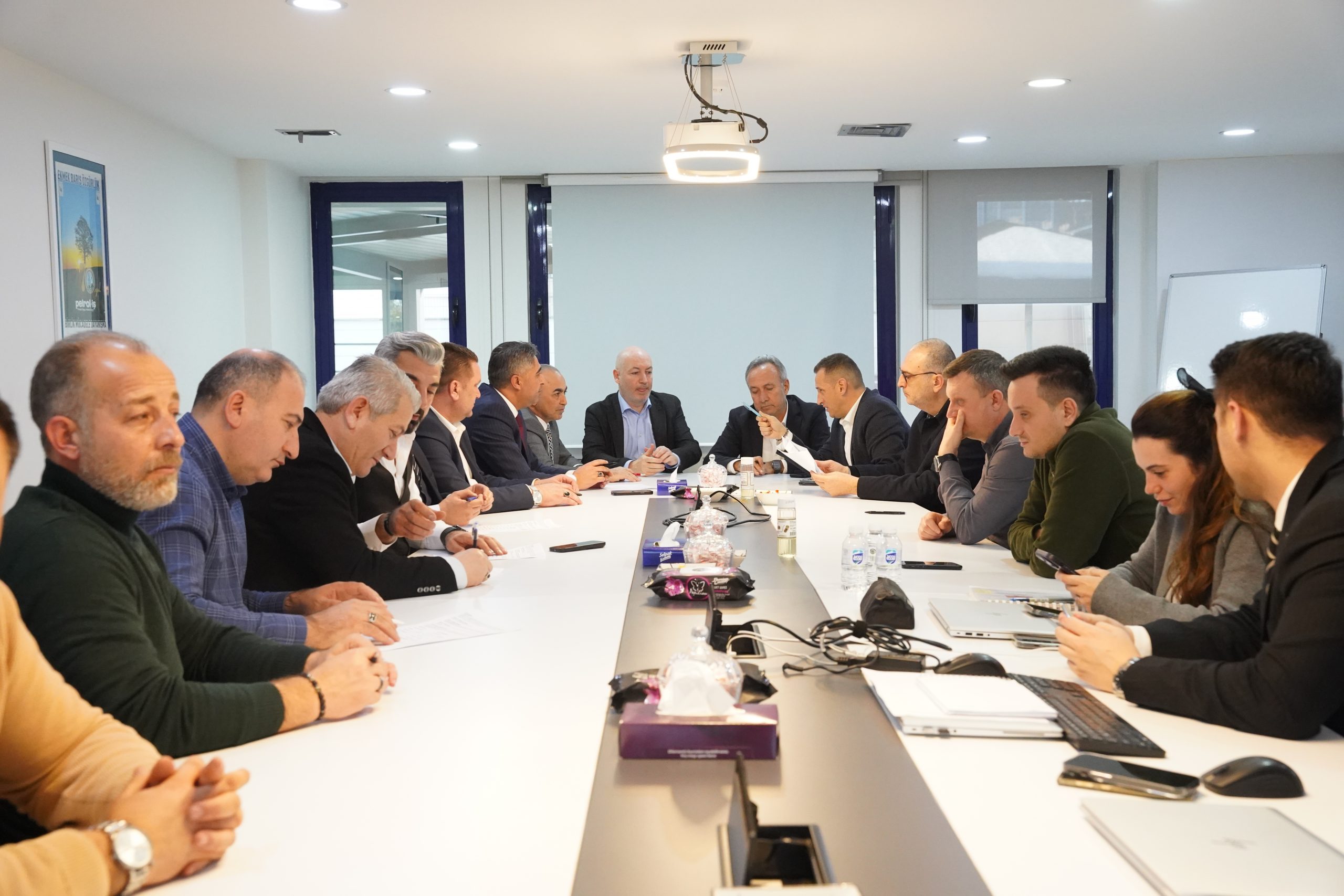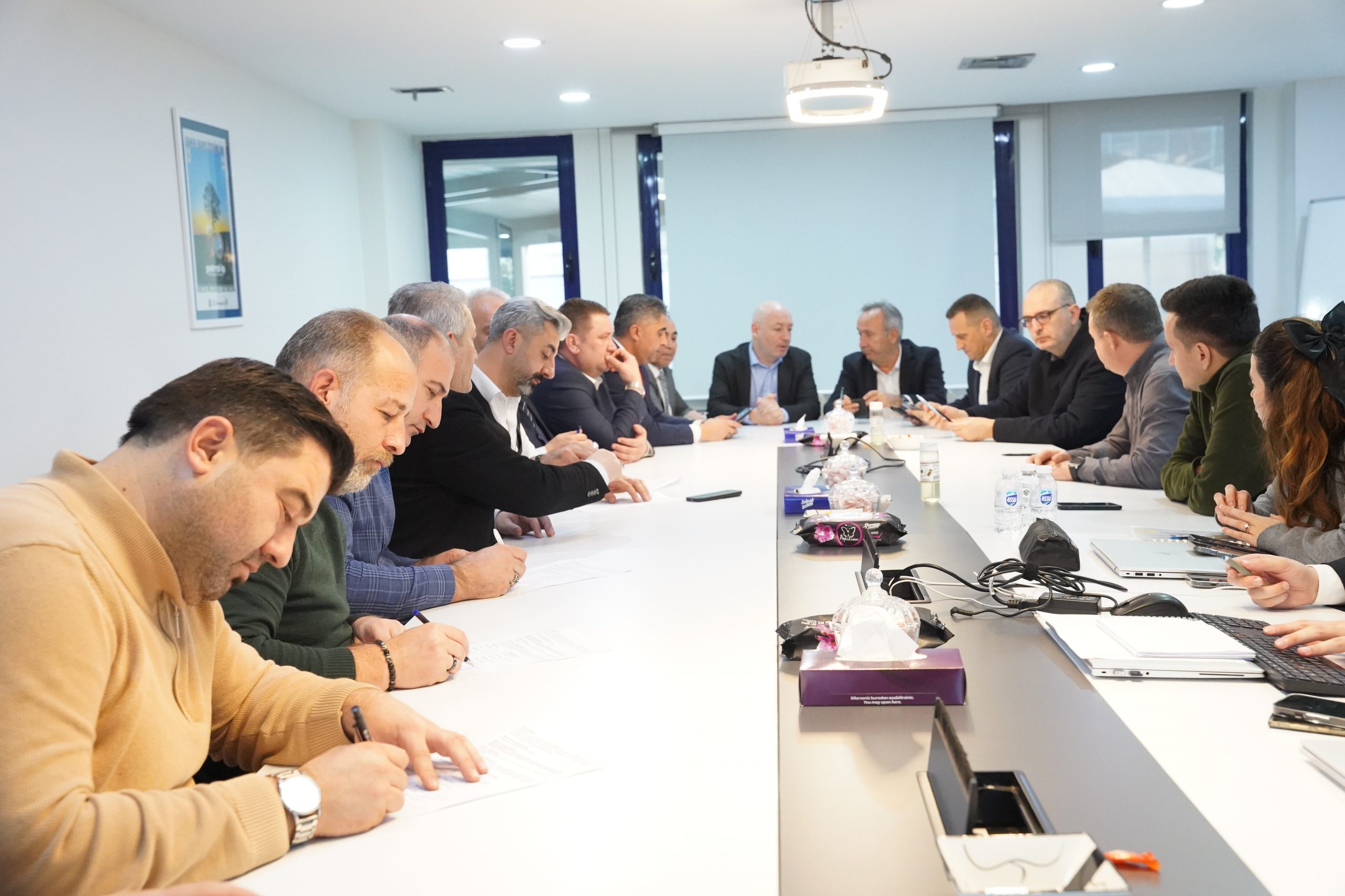 Polimer Kauçuk işyeri toplu iş sözleşmesi toplantısında sendikamız Genel Yönetim Sekreteri Ali Haluk Koşar, Danfoss Polimer Kauçuk Özel Markalar ve SEL Hortumları İş Birimi Başkan Yardımcısı Aron Bensason, Kıdemli Operasyonlar Direktörü Zeki Dinç, İnsan Kaynakları Direktörü Taşkın Bekar, Üretim Direktörü Mutlu İldiz, İnsan Kaynakları Müdürü Harun Çalış ve Oktay Toplar, Kıdemli Maliyet Analisti İsmail Çolak, Av. Seher Elif Köse Özgüç, Av. Faik Efe Savaş; İstanbul 1 Nolu Şube Başkanımız Erkan Zorlu, Şube Başkan Yardımcıları Ergün Artuç ve Tamer Öner, sendikamız Toplu İş Sözleşmesi Uzmanı Özgün Çelik Aygün, Polimer Kauçuk işyeri temsilcileri Ahmet Ziyalı, Muammer Mutlu, Yasin Ekim, Cemal Erdem, Musa Bostancı ve Kaan Arda yer aldı.