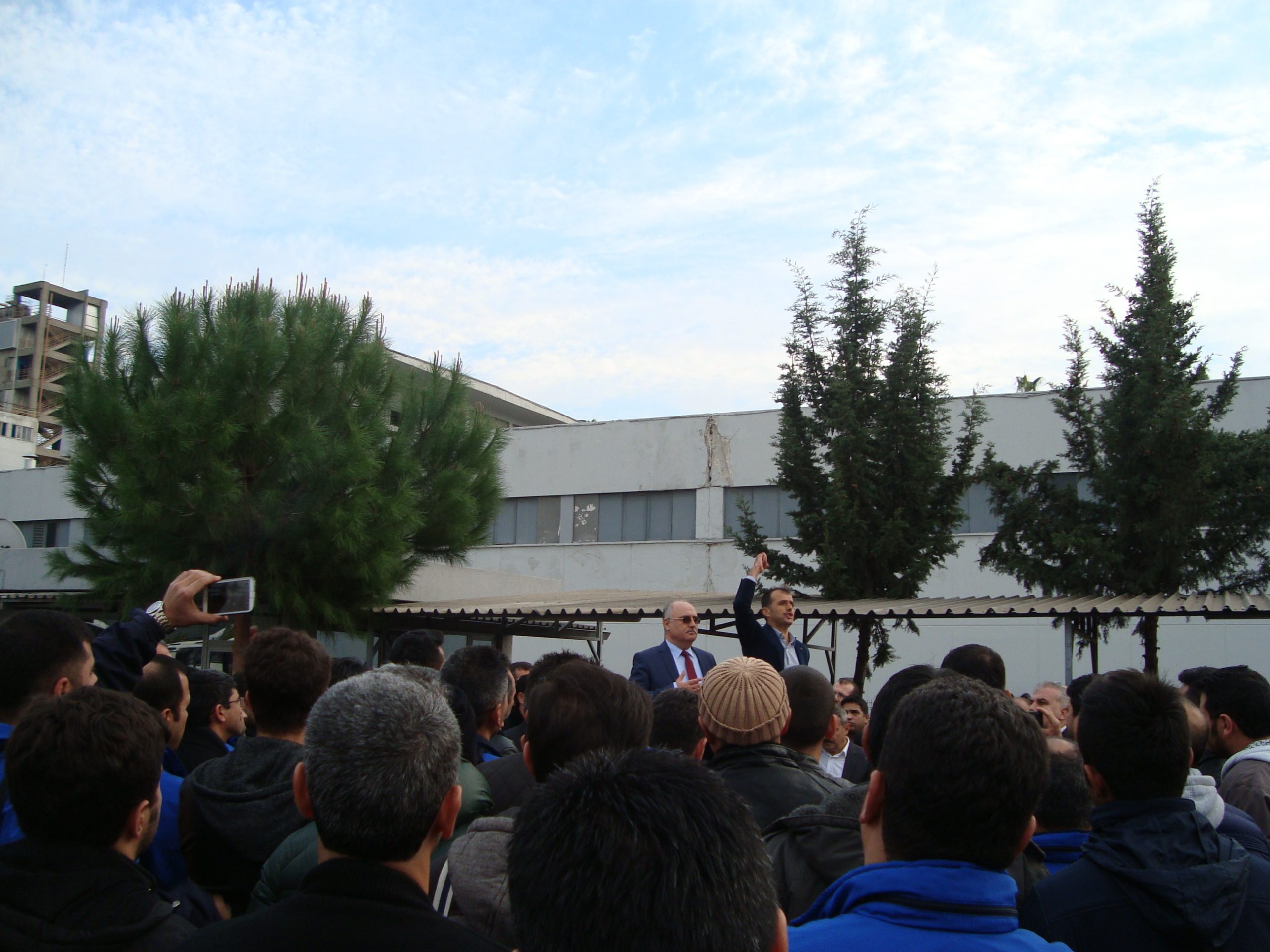 12 Aralık 2016 tarihinde Adana Şubemiz kapsamında bulunan SASA Polyester Sanayi A.Ş. işyerinde, işverenin çalışanların kazanılmış haklarını geri almak istemesi nedeniyle üyelerimiz 1 gün yemek yememe eylemi yaptılar. Ardından konuyla ilgili basın açıklaması yapıldı. Burada bir konuşma yapan Adana Şube Başkanımız Abdulmecit Dönmez bu hakların büyük mücadeleler verilerek alındığını, işverenin olumsuz tutumunun bugün burada yemek yememe eylemi yaparak protesto edildiğini, bu olumsuz tutuma rağmen sorunların konuşarak çözülebileceğine inandıklarını söyledi.