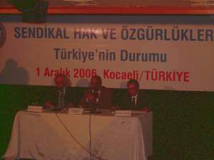 Türk-İş’e bağlı Belediye-İş Sendikası tarafından düzenlenen “Sendikal Hak ve Özgürlükler ile Türkiye’nin Durumu” konulu panel 01.12.2006 tarihinde Süleyman Demirel Kültür Merkezi’nde yapıldı. Panele Şube Başkanımız Ali Ufuk Yaşar ve Kocaeli genelindeki sendika temsilcileri katıldı. Belediye-İş Genel Başkan Danışmanı İsmail Hakkı Kurt’un yönettiği panele Prof. Dr. Mesut Gülmez ve Prof. Dr. Zafer Üskül konuşmacı olarak katıldılar. Yapılan konuşmalarda sendikal hak ve özgürlüklerde Türkiye’nin dünyanın neresinde olduğu konusu değerlendirildi.