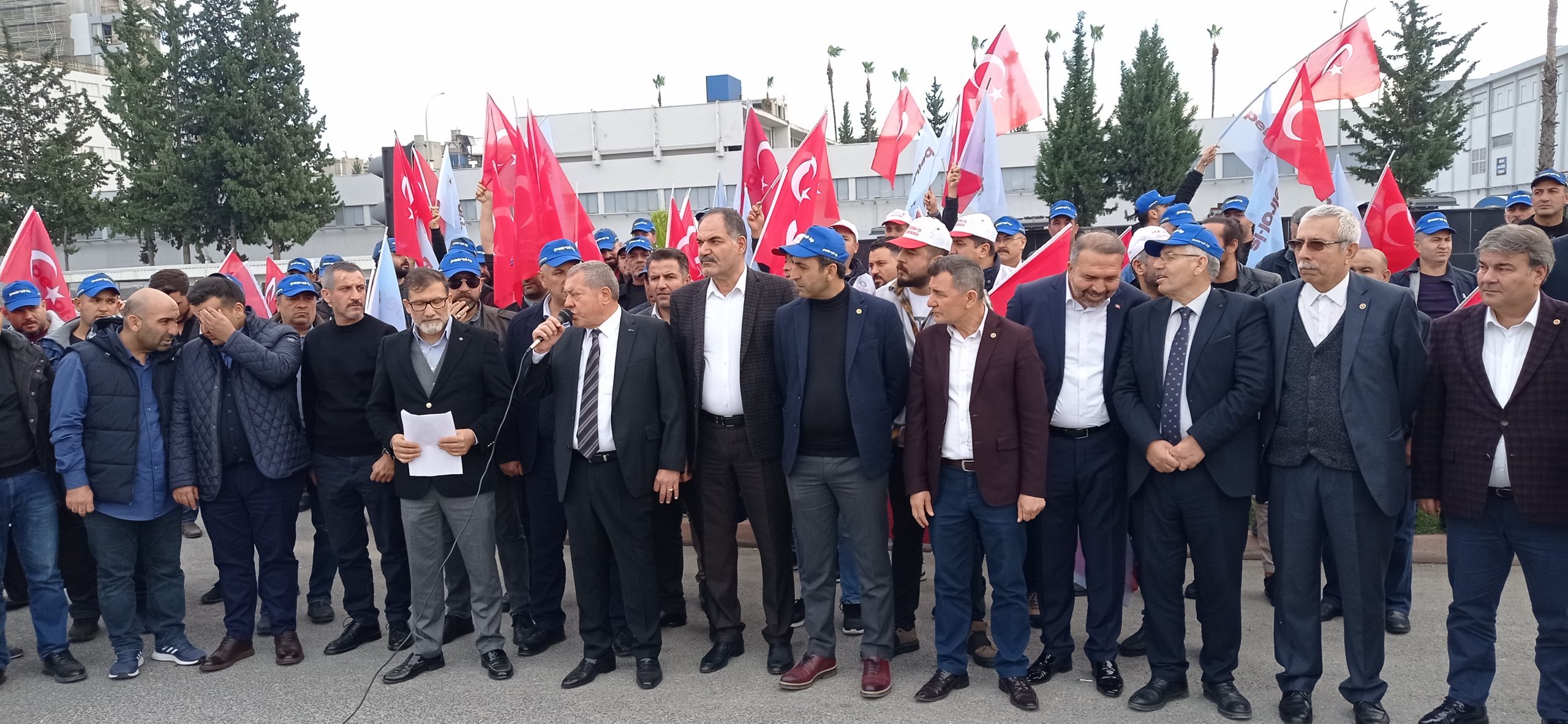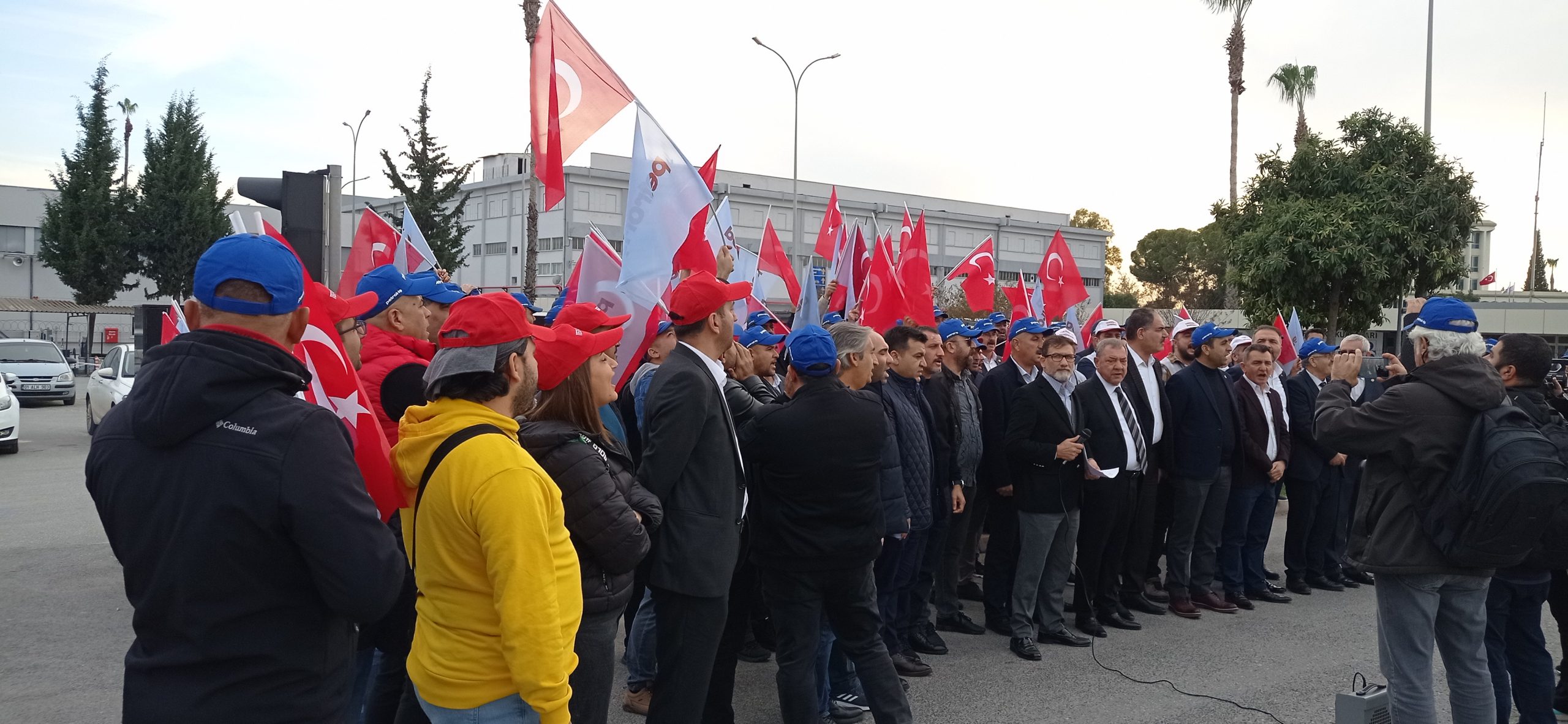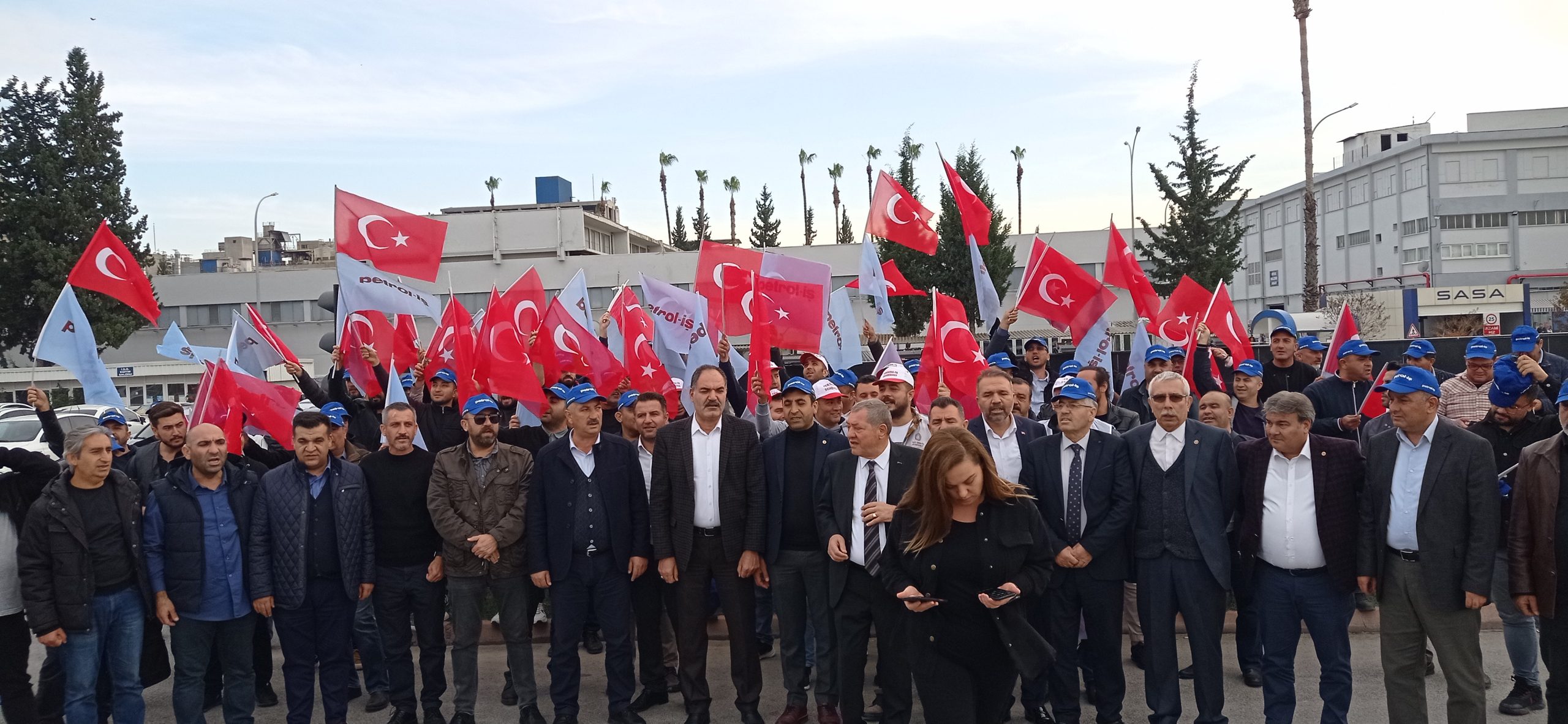 Sendikamız Adana Şubesi tarafından 28 Kasım Pazartesi günü Erdemoğlu Holding’e ait SASA işyeri önünde kitlesel bir basın açıklaması yapıldı. Adana Şube Yöneticilerimiz, SASA’da çalışan üyelerimiz ile şubemizin örgütlü olduğu işyerlerinden üye ve temsilcilerimizin yanı sıra açıklamaya Türk-İş 4. Bölge Temsilcisi Edip Gülnar ile konfederasyonumuz Türk-İş’e bağlı Demiryol-İş, Harb-İş, Tekgıda-İş, Sağlık-İş, Tarım-İş, Tümtis, Tezkoop-İş, Yol-İş, Tes-İş, Toleyis, Türkiye Gazeteciler Sendikası, Belediye-İş ve Güvenlik-İş Sendikaları katılarak destek verdi.
