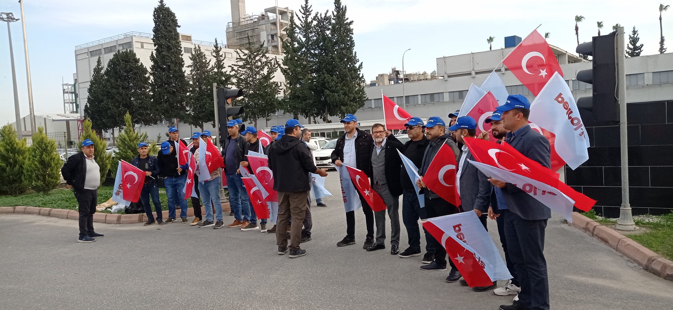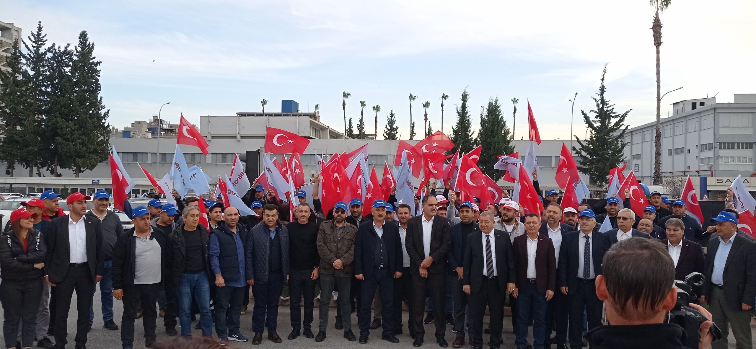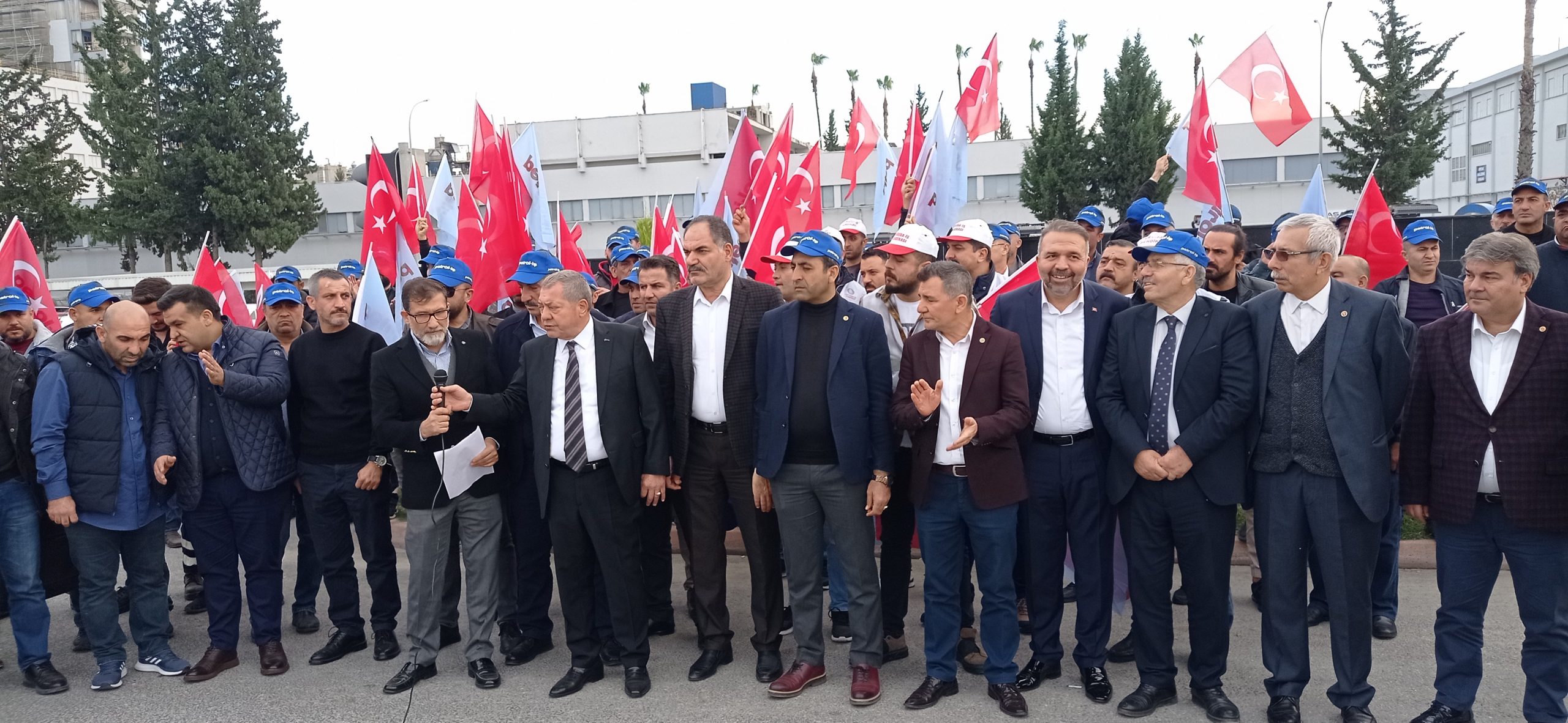 Sendikamız Adana Şubesi tarafından 28 Kasım Pazartesi günü Erdemoğlu Holding’e ait SASA işyeri önünde kitlesel bir basın açıklaması yapıldı. Adana Şube Yöneticilerimiz, SASA’da çalışan üyelerimiz ile şubemizin örgütlü olduğu işyerlerinden üye ve temsilcilerimizin yanı sıra açıklamaya Türk-İş 4. Bölge Temsilcisi Edip Gülnar ile konfederasyonumuz Türk-İş’e bağlı Demiryol-İş, Harb-İş, Tekgıda-İş, Sağlık-İş, Tarım-İş, Tümtis, Tezkoop-İş, Yol-İş, Tes-İş, Toleyis, Türkiye Gazeteciler Sendikası, Belediye-İş ve Güvenlik-İş Sendikaları katılarak destek verdi.