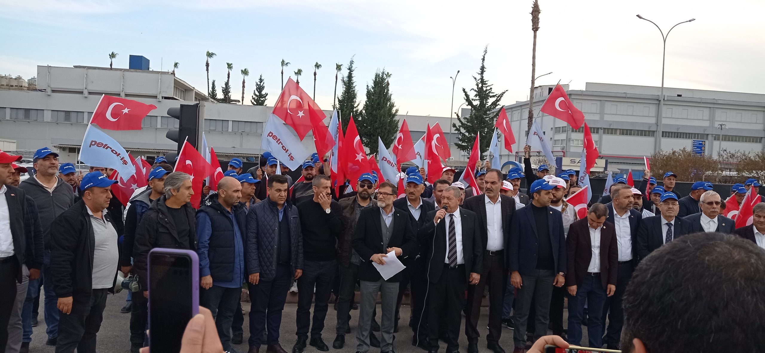 Bu işyerinden uzaklaştırılmak istenen yalnızca Petrol-İş Sendikası değildir. Çocuklarımızın iyi koşullarda yaşama teminatı, çalışma barışı, insan onuruna yaraşır ücret, işyeri demokrasisi, işçilerin temsili de yok edilmek istenmektedir.