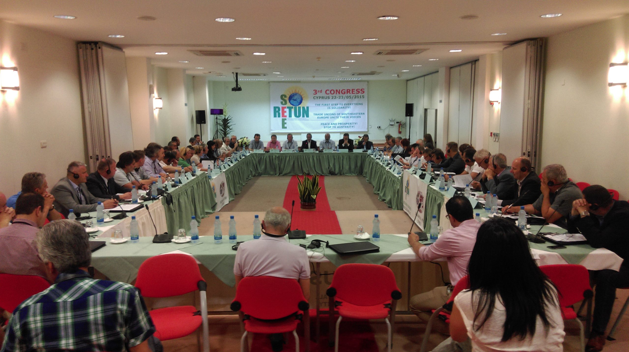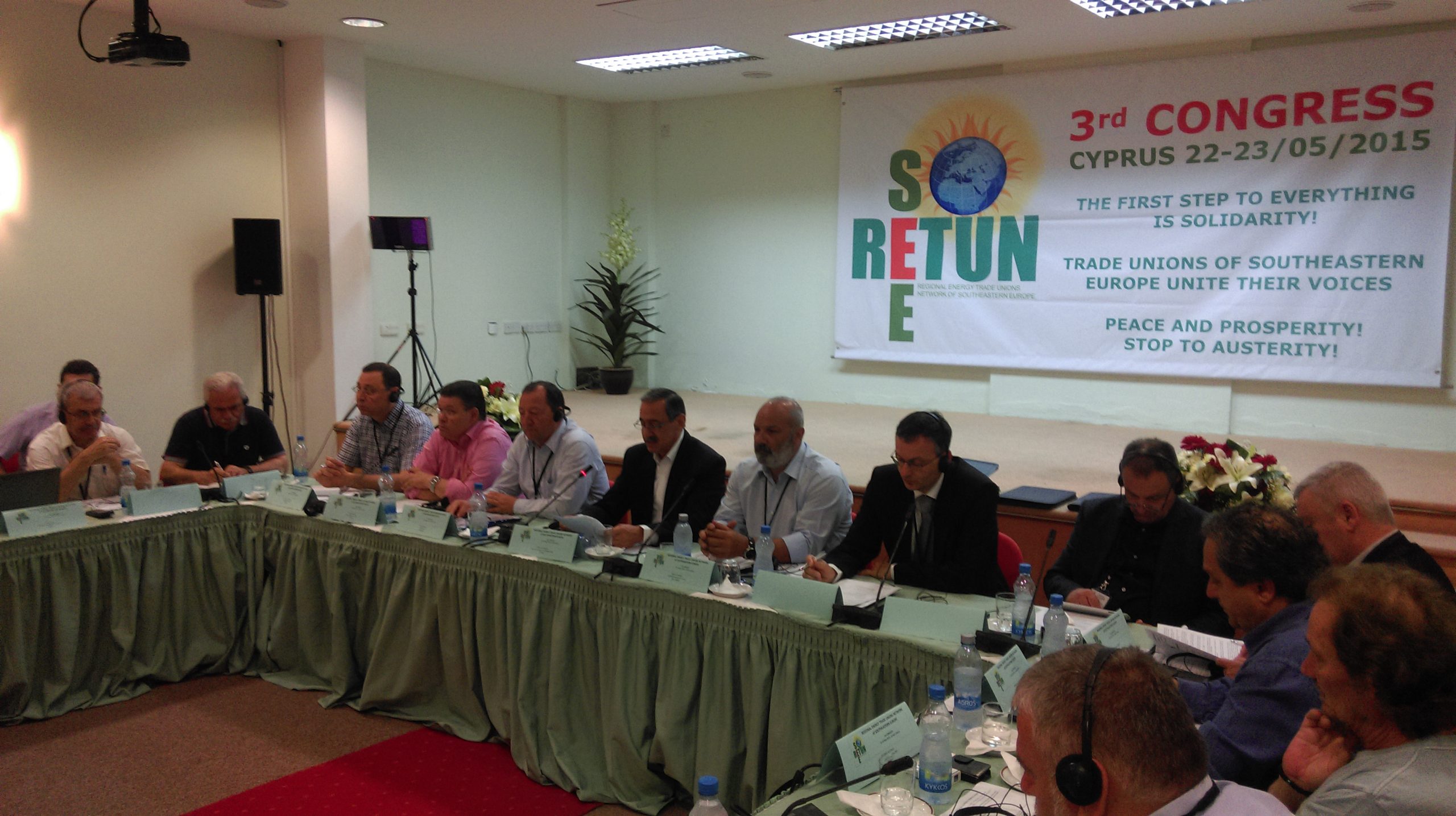 Sendikamız Petrol-İş’in üyesi olduğu Güneydoğu Avrupa Enerji Sendikaları Ağı Retunsee 3. Kongre’si 22-23 Mayıs 2015 tarihlerinde Kıbrıs’ın Larnaka kentinde yapıldı. Toplantıya Güneydoğu Avrupa’da bulunan 11 ülkede faaliyet yürüten toplam 17 sendikadan 42 delege katıldı.