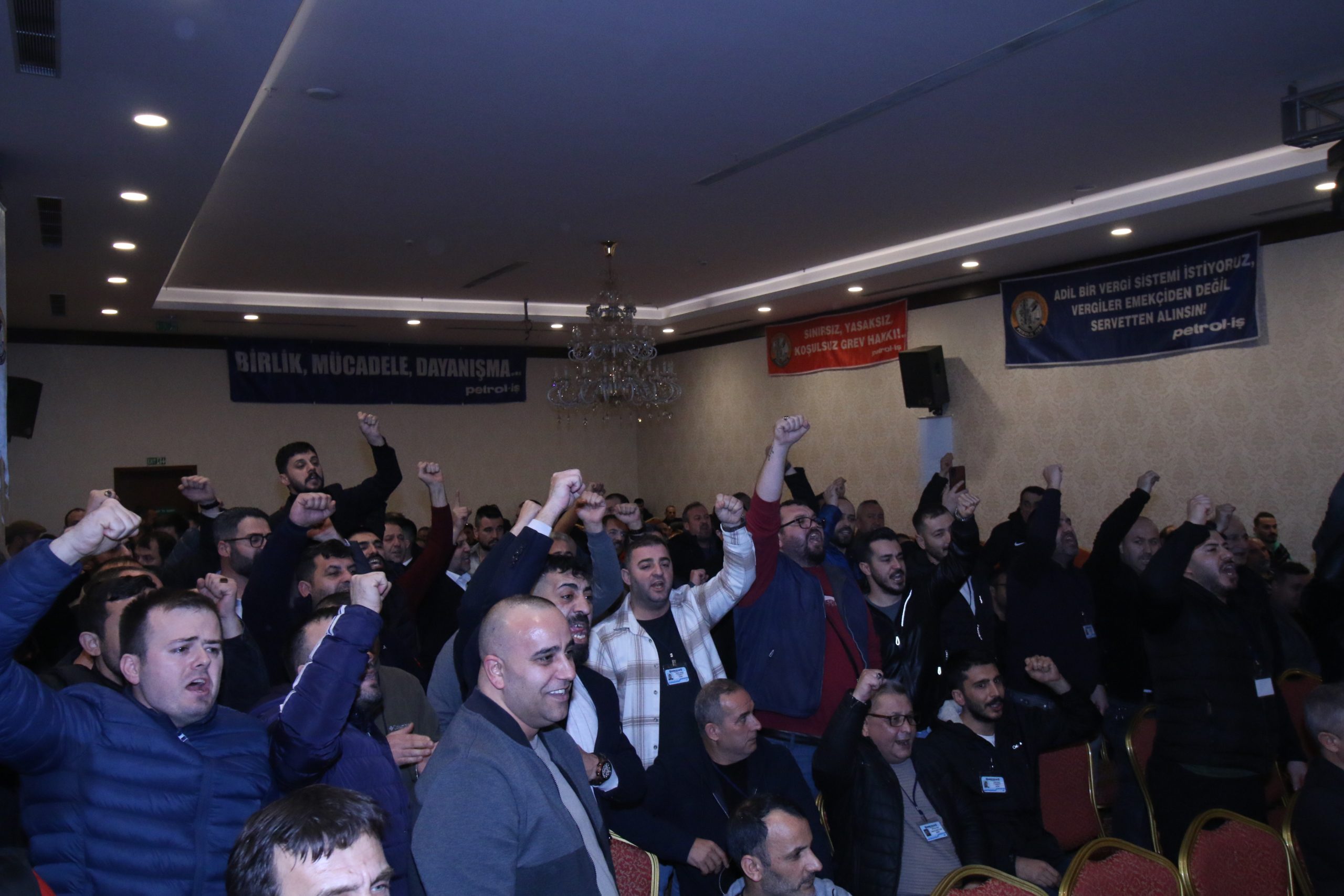 Ardından Genel Kurulu yönetmek üzere oluşacak divan için önerge sunuldu. Kabul edilen önerge sonucu Divan Başkanı Sendikamız Genel Sekreteri Ahmet Baranlı, Divan Üyeleri Batman Şube Başkanı Veysel Kartal, Bursa Şube Başkanı Ersin Birgül, İstanbul 2 No’lu Şube Başkanı Engin Bedir ve Kırıkkale Şube Başkanı Mehmet Doğan oldu.