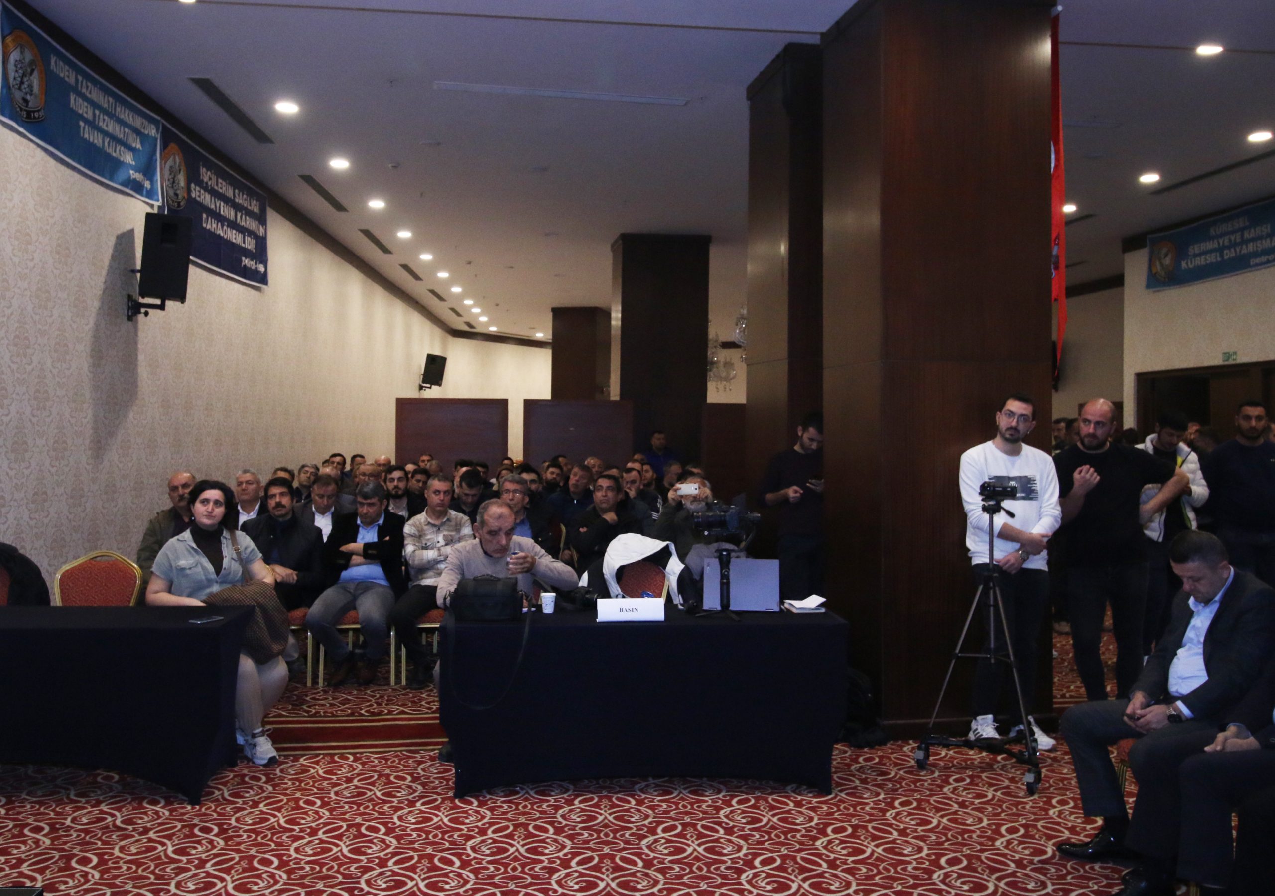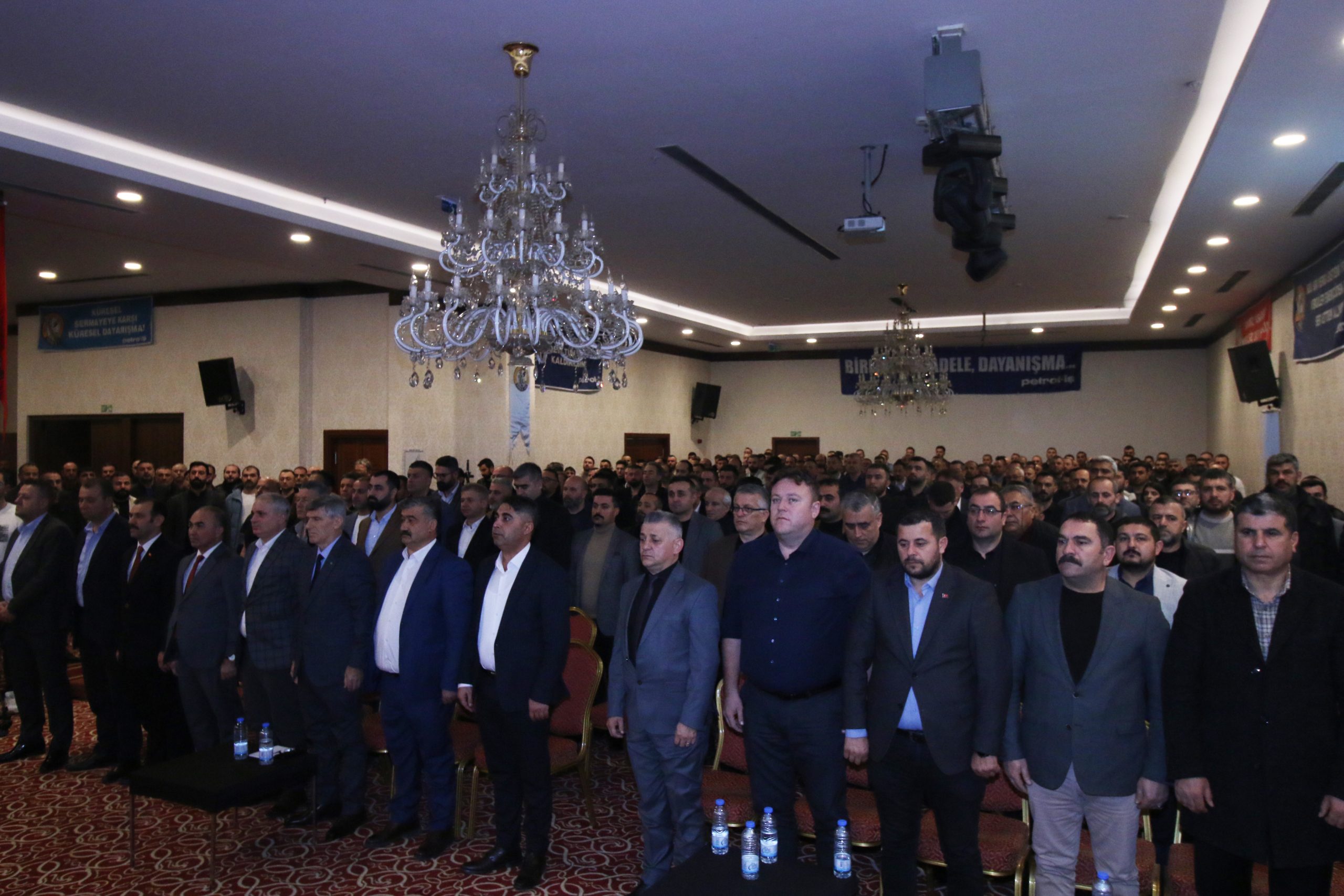 Genel Sekreter Ahmet Baranlı’nın Genel Kurul gündemini oylamasının ardından Cumhuriyetimizin kurucusu Gazi Mustafa Kemal Atatürk, vatan uğruna canını feda eden şehitlerimiz ve iş cinayetlerinde hayatını kaybeden emekçiler için Saygı Duruşu yapıldı ardından İstiklal Marşı okundu.
