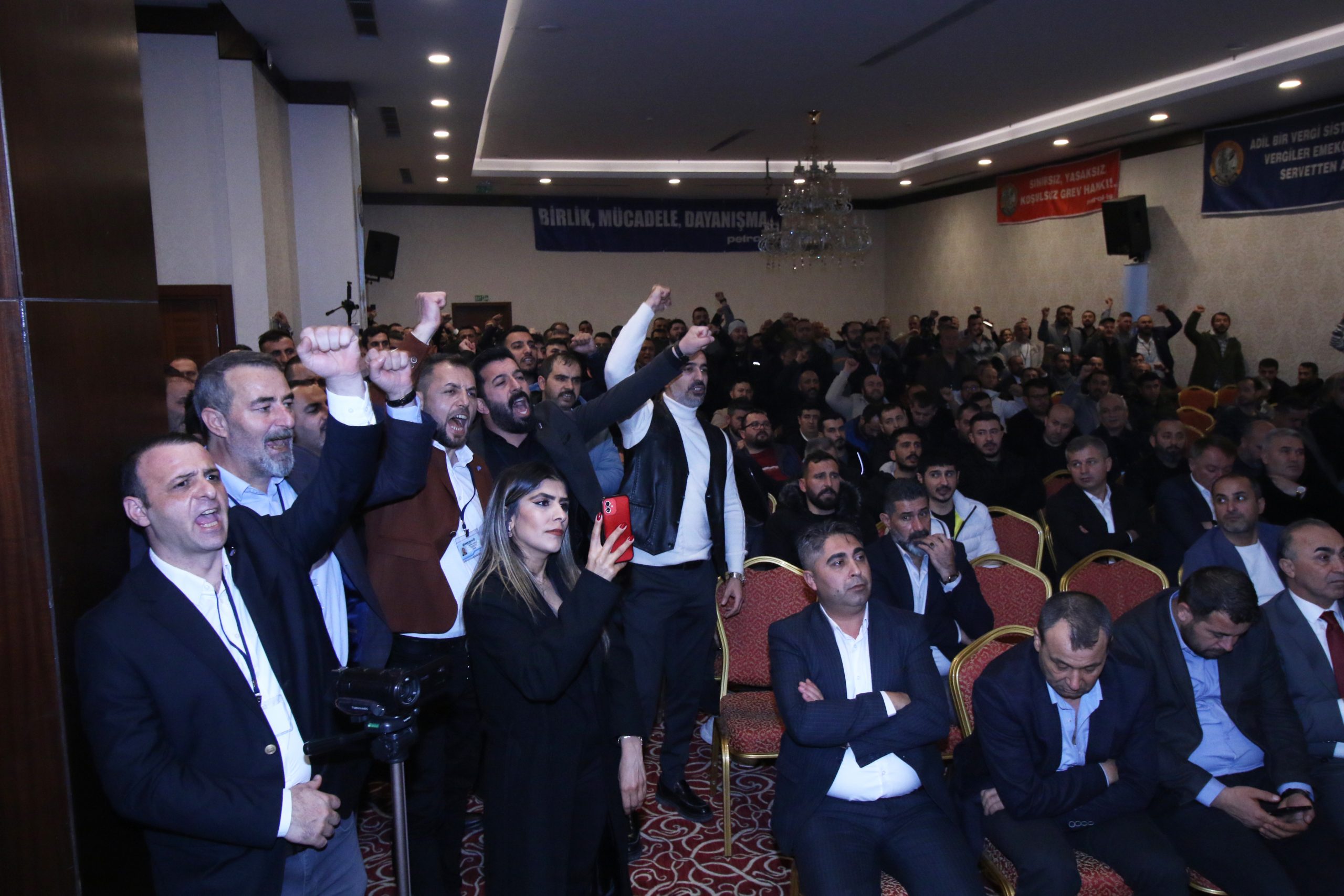 Asgari ücretle ilgili de konuşan Akyüz, “Asgari ücret çok yakın zamanda açıklandı. Ülkedeki bütün ücret düzeyleri yeniden belirleniyor şimdi. 2022’de tarihin en yüksek asgari ücret artışı yaşanmıştı ancak etkisi 6 ay sürmedi. 2023’te de aynı şey yaşandı. Katıldığım her toplantıda ya da programda aynı şeyi söyledim: asgari ücret geçim ücreti, standart ücret haline geliyor. Herkes asgari ücretli haline geliyor. Yani kıdemli ile kıdemsiz, kalifiye ile kalifiye olmayan, tahsilli ile tahsilsiz her çalışan benzer ücreti alır hale gelmiştir. Hayat pahalılığı, enflasyon durmadığı sürece yaptığımız sözleşmelerin de anlamı kalmıyor. Sınıfsal mücadelemizi vereceğiz ama bunun yanında siyasal mücadelede vermek gerekiyor. Herkes istediği partiye oy verebilir ama partinize baskı yapın. Emekten yana olmayan hiçbir partiye oy vermeyin. Eğer sınıfsal mücadelemizin yanına siyasal mücadele koyamazsak bu sıkıntıları çekmeye devam ederiz.” dedi.