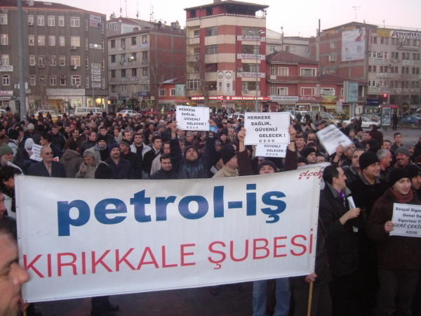 20 Şubat 2008 tarihinde Kırıkkale Cumhuriyet Meydanı’nda tüm sivil toplum örgütlerinin katılımı ile yapılan Sosyal Güvenlik, Genel Sağlık Sigortası Yasa Tasarısına Hayır eylemine Tüpraş ve MKEK Barut Fabrikasındaki 300’e yakın üyemiz de katıldı.