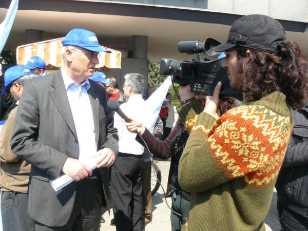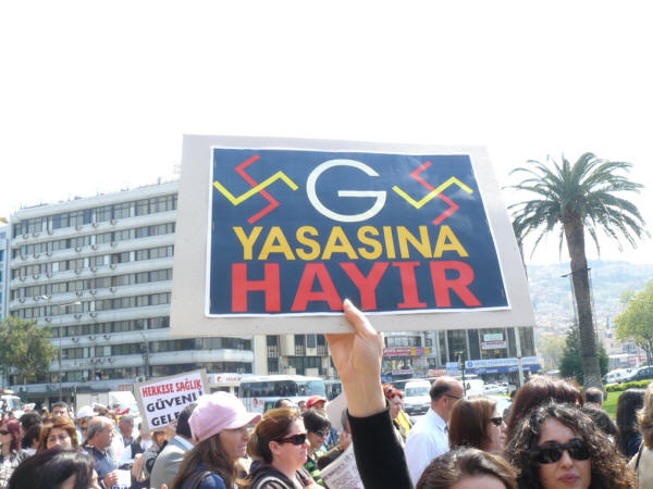Mecliste görüşülmekte olan Sosyal Sigortalar ve Genel Sağlık Sigortası yasası 1 Nisan 2008 Salı günü, Ankara ve İstanbul’da olduğu gibi İzmir’de de protesto edildi.