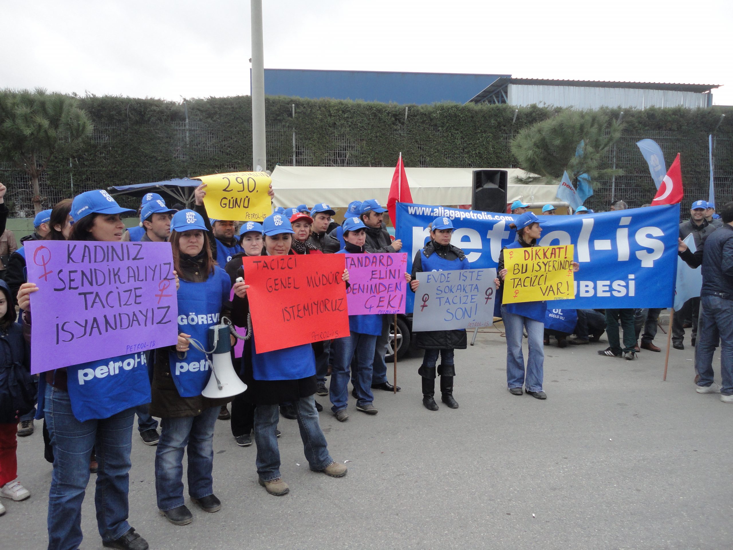 Sendikamız üyesi işçiler haksız-hukuksuz işten atılmalara, mobbing ve baskılara karşı 10 aydır fabrika önündeki onurlu mücadelelerine devam ediyor. SP yönetimi üyelerimizi işten atmakla kalmadı, direnişin başından itibaren fabrika önünde bekleyen kadın üyelerimize sözlü, telefon ve sms yoluyla cinsel sataşma ve cinsel tacizde bulundu. Bu taciz ve sataşmalar hala sürüyor.
