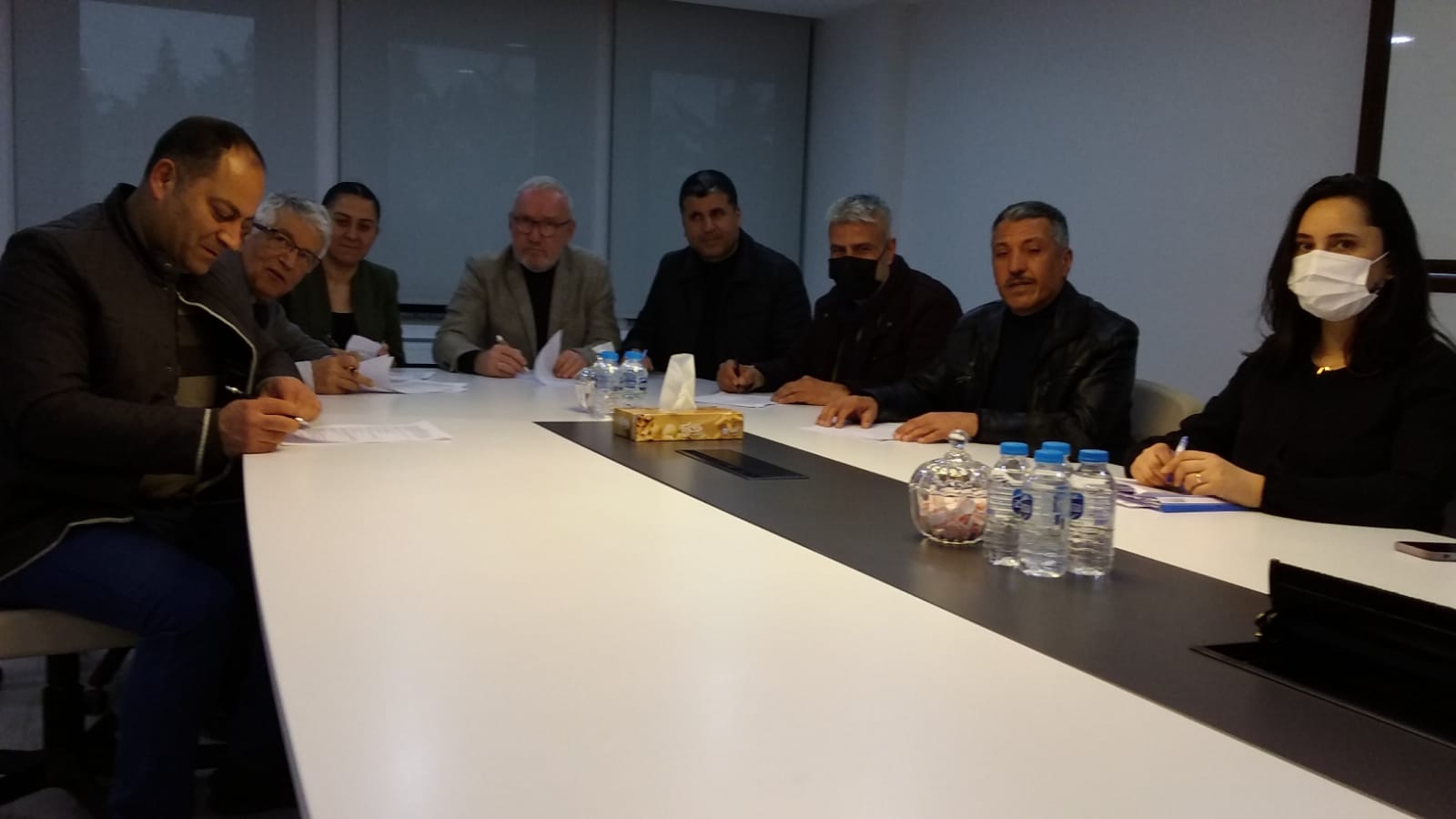 Subor Gap işyeri toplu iş sözleşmesi görüşmesinde Genel Yönetim Sekreterimiz Ünal Akbulut, Subor Gap İnsan Kaynakları Müdürü Mine Kocabaş, Avukat Zeki Diren, Adıyaman Şube Başkanımız Mehmet Karaman, Başkan Yardımcılarımız Hacı Yusuf Doğan, Abdülkerim Fırat (Mali), Baş Temsilcimiz Mehmet Ali Çevik, toplu iş sözleşme uzmanımız Özgün Çelik Aygün yer aldı.