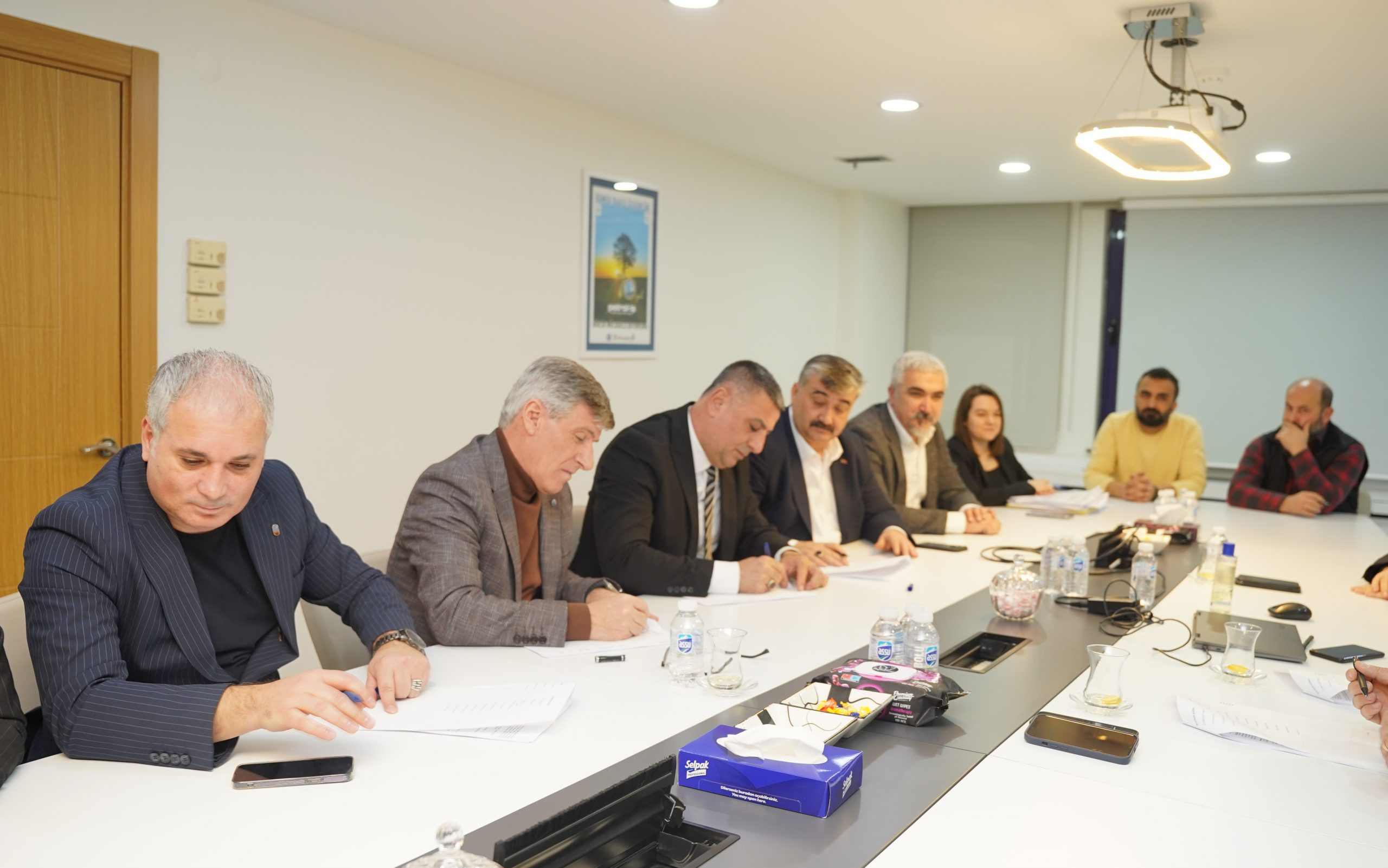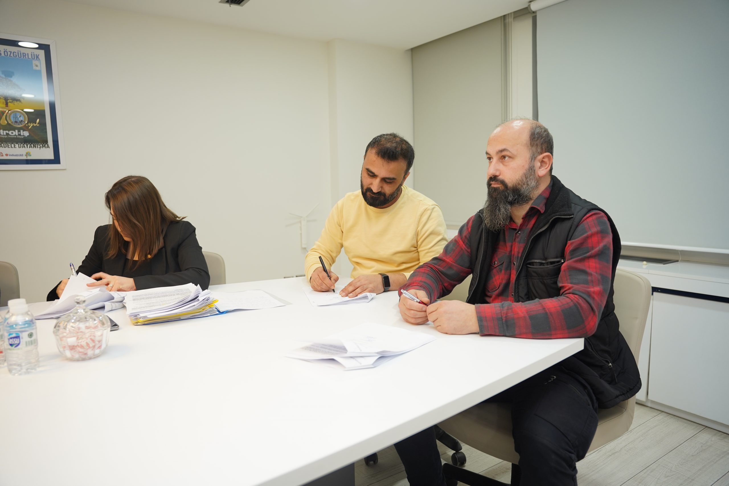 17 Şubat 2024 Pazartesi günü sendikamız Genel Merkezinde yapılan sözleşme toplantısında Genel Başkanımız Süleyman Akyüz, Genel Sekreterimiz Ahmet Baranlı, Genel Mali Sekreterimiz Mehmet Kaya, Genel Örgütlenme ve Eğitim Sekreterimiz Niyazi Recepkethüda, Genel Yönetim Sekreterimiz Ali Haluk Koşar, Tarkett Genel Müdürü Cumhur Dinçer, İnsan Kaynakları Müdürü Ulaş Balya, Fabrika Müdürü İlyas Köseoğlu ve işyeri avukatı Av. Sezai Sur ile Gebze Şube Başkanımız Şivan Kırmızıçiçek, Şube Başkan Yardımcılarımız Dursun Karataş ve Dönmez Aytekin, sendikamız toplu iş sözleşmesi uzmanı Tuğçe Kalyoncu, Tarkett işyeri temsilcilerimiz Selman Sakarya ve Murat Alan yer aldı.