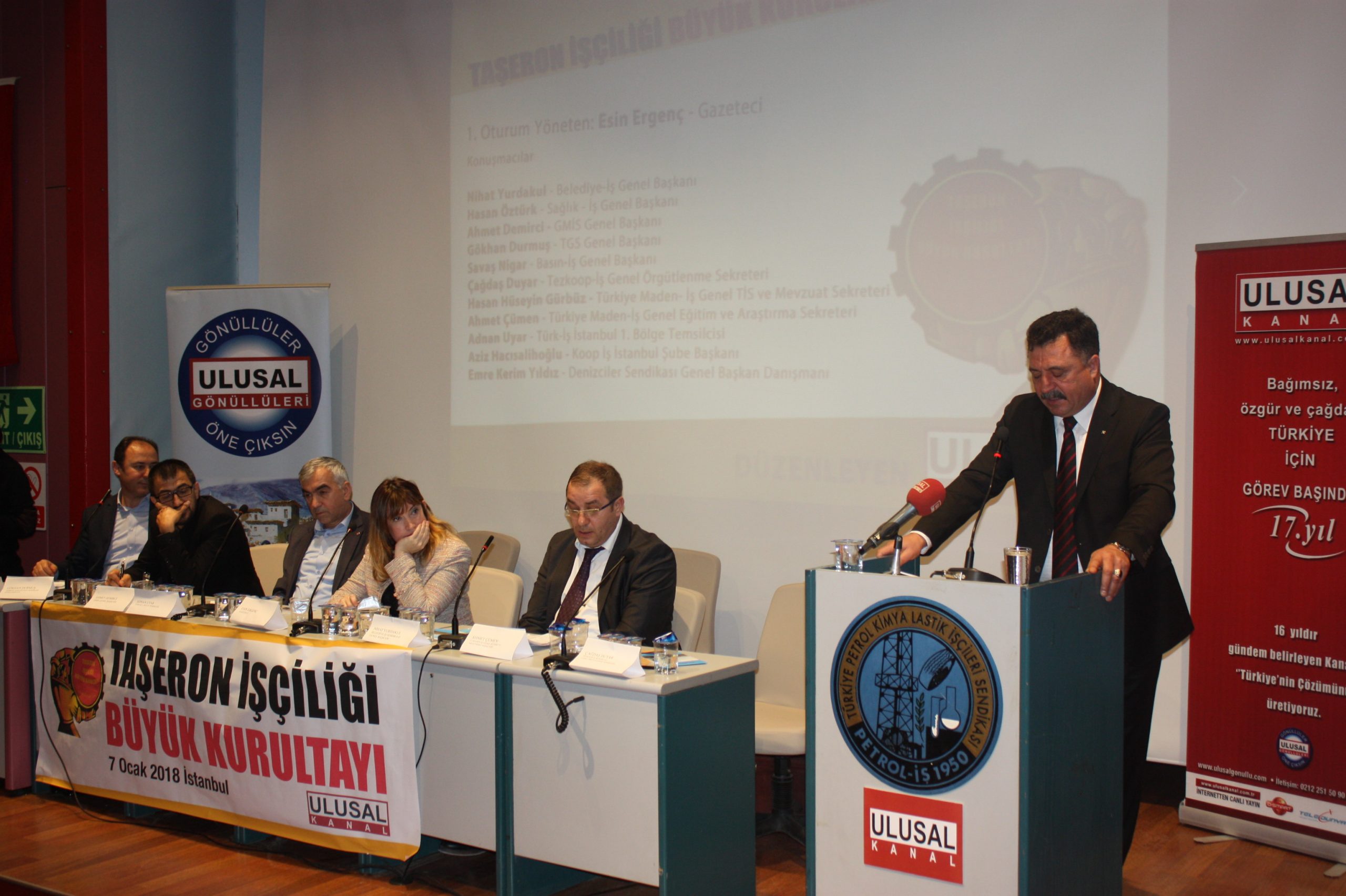 Çeşitli sendikaların genel başkanlarının da konuşma yaptığı kurultayda KHK ile çıkarılan düzenlemenin hak gaspına neden olduğuna dikkat çekilerek tüm taşeron işçilerine ayrımsız ve koşulsuz kadro verilmesi gerektiği vurgulandı.