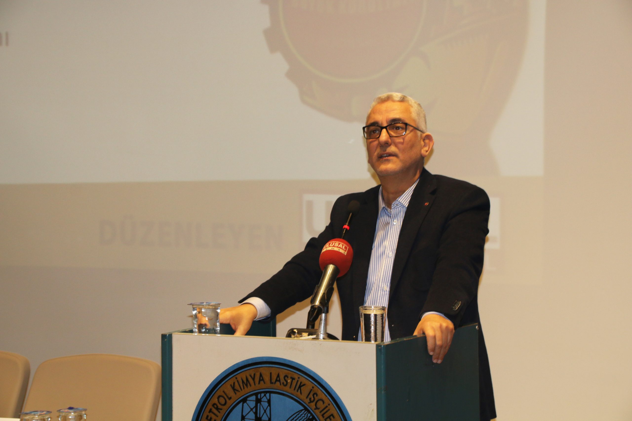 Genel Başkanımız Ali Ufuk Yaşar, Ulusal Kanal Genel Yayın Yönetmeni Çağdaş Cengiz’in açış konuşmasının ardından bir konuşma yaptı. Kadroya alınmasını istedikleri işçilerin hiçbirinin kadroya alınmadığına dikkat çeken Yaşar, “1 milyon 20 bin kişiden bahsediliyor fakat kamu iktisadi teşebbüslerinde çalışan 50 bin kişi bizzat asıl işi yapan taşeron işçileri kapsamdışında tutuldu. Petrol-İş Sendikası’nın örgütlü olduğu Botaş’ta, Makina Kimya’da vs. asıl işi yapan arkadaşlarımız kadroya alınmadı. Kimsenin sevincini kursağında bırakmak istemiyorum ama gerçek olan bu. ‘Taşeron işçisine kadro verdik, taşeron meselesini hallettik’ demek çok büyük haksızlık. 8 Ocak’ta (bugün) yine Ankara’da bununla alakalı çok değerli bölge başkanları, sendika genel bakanları Türk-İş tarafından toplanacak. Bu konuların tekrar düzenlenmesine dair mücadelemiz devam edecek. Bizim için dağ fare bile doğurmamıştır. Bu konuyu ülkemiz adına, halkımız adına takip edeceğiz.”dedi.