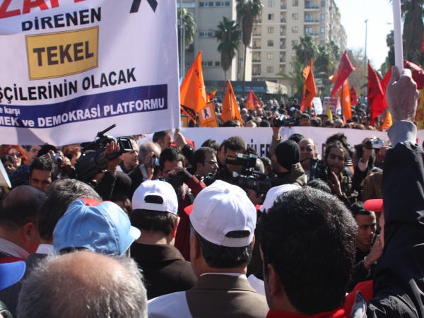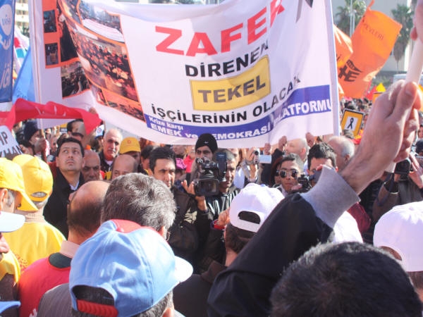Tekel işçilerine destek için bir günlük iş bırakma eylemi