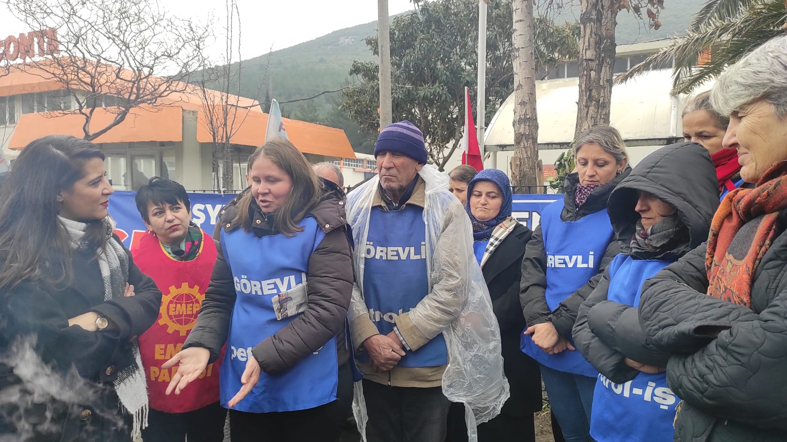 Konuşma sonrasında grev alanında sohbet edildi, Aliağa Şube Başkanımız Hasan Toptan grevin gidişatına yönelik bilgilendirme yaptı.