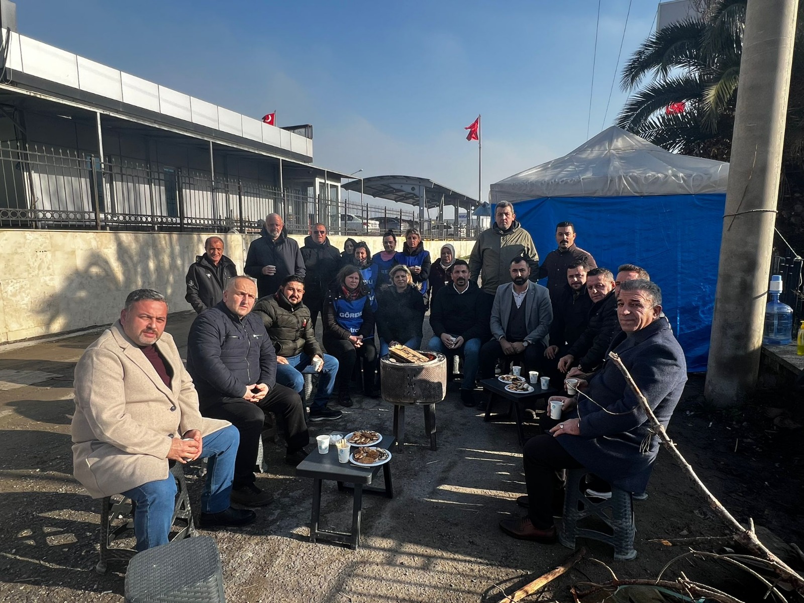 Temel Conta işyerinde grevimiz bugün 28. gününde ilk günkü inanç ve kararlılıkla devam ediyor. Grevimiz devam ederken destek ve dayanışma ziyaretleri de aralıksız sürüyor. 6 Ocak Pazartesi günü sendikamız Bursa Şube Başkanı Erhan Yakışan, Düzce Şube Başkanı Ali Işık, İzmir Şube Başkanı Cem Turan ile Şube Yönetimi ve temsilcilerimizden oluşan heyet grev alanında üyelerimiz ve Aliağa Şube yöneticilerimizle bir araya geldiler.