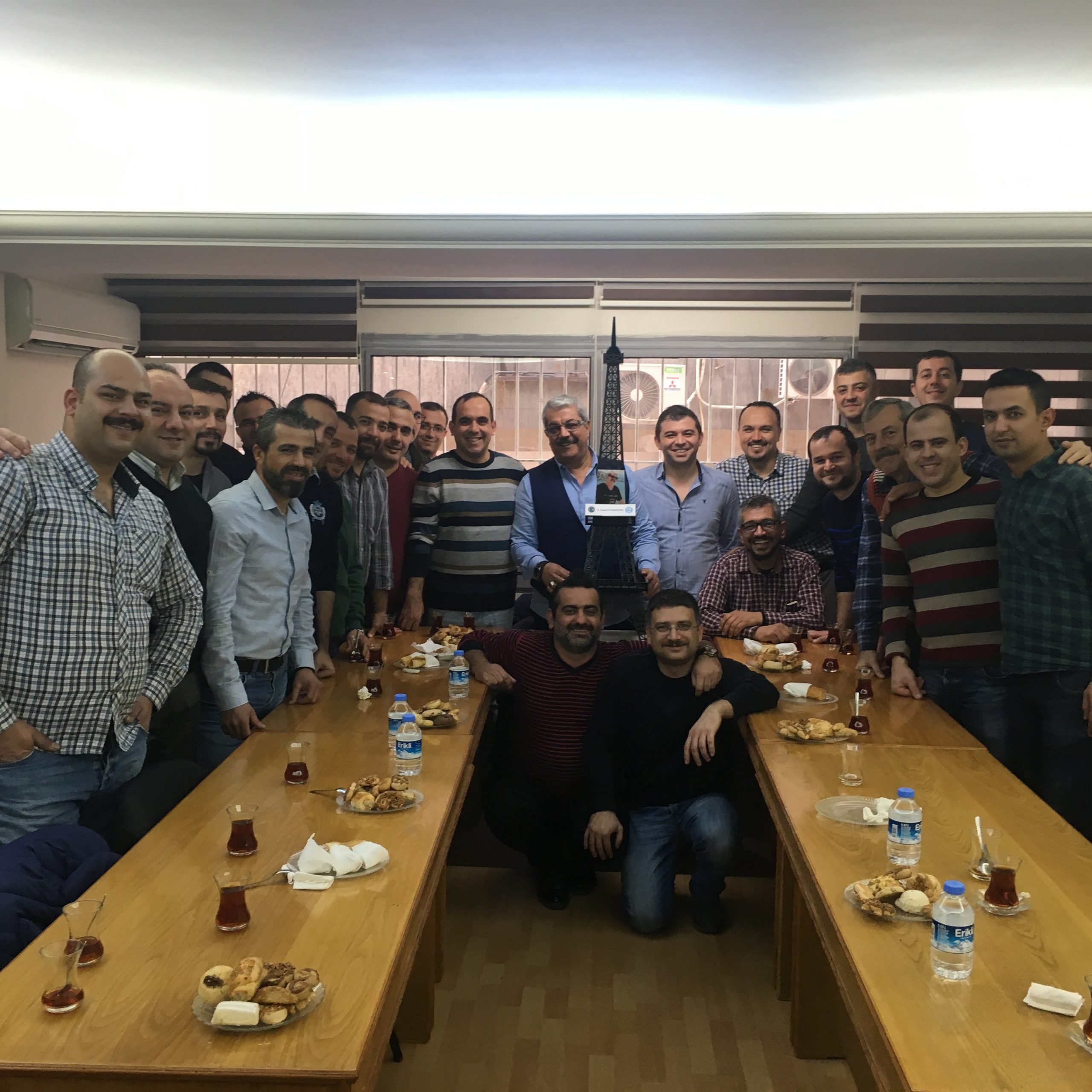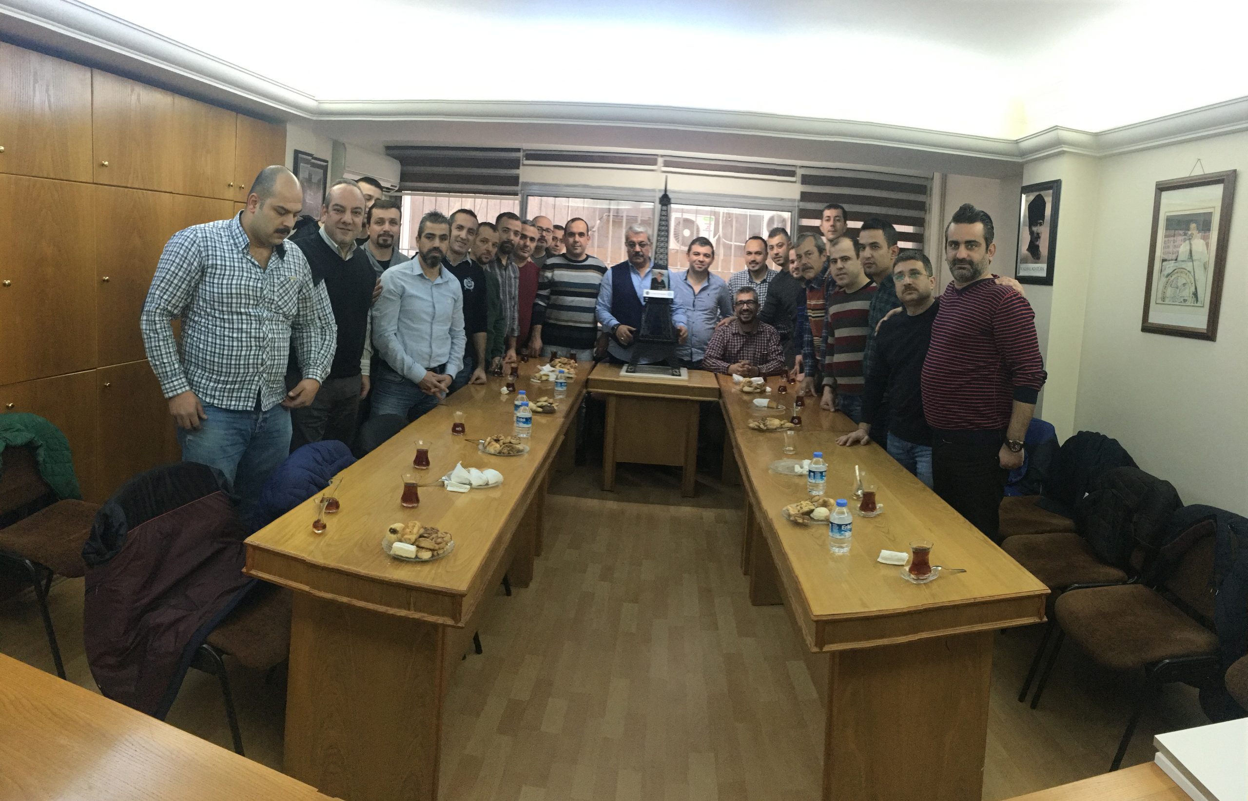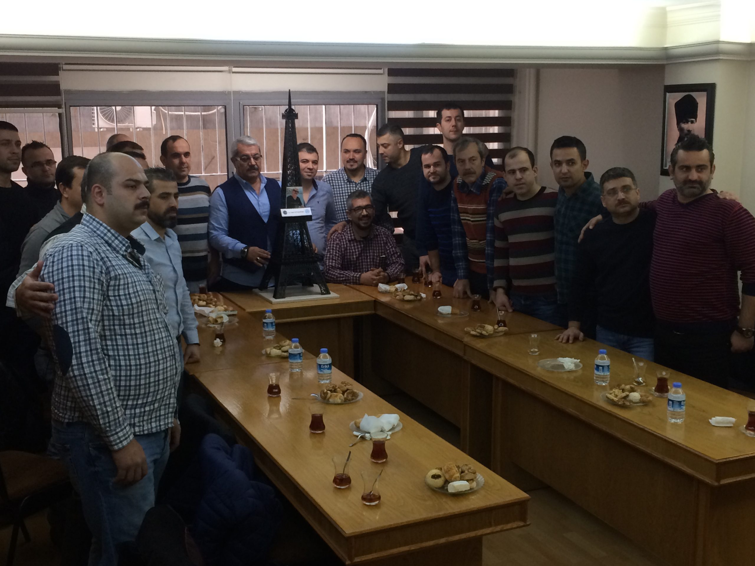 TİS görüşmeleri devam eden İzmir Şubemize bağlı Tetra Pak Paketleme San. ve Tic. Ltd.Şti. işyerinde çalışan üyelerimizin kendi el emeği göz nuru olarak yaptıkları demir Eyfel Kulesi maketini Şube Başkanımız A.Gani GÜNDOĞDU’ya vardiya çıkışı toplu olarak şubeye gelerek hediye etmişlerdir. Bu yıl Tetra Pak dünya fabrikalarında birinci olan İzmir Tetra Pak iş yerimizin hediyesini birinciliklerini kutlayarak alan Şube Başkanı A.Gani GÜNDOĞDU üyelerimize başarılarının devamını dilemiştir. Devam etmekte olan TİS süreci hakkında bilgi veren Şube Başkanımız üyelerimize teşekkür etmiştir.