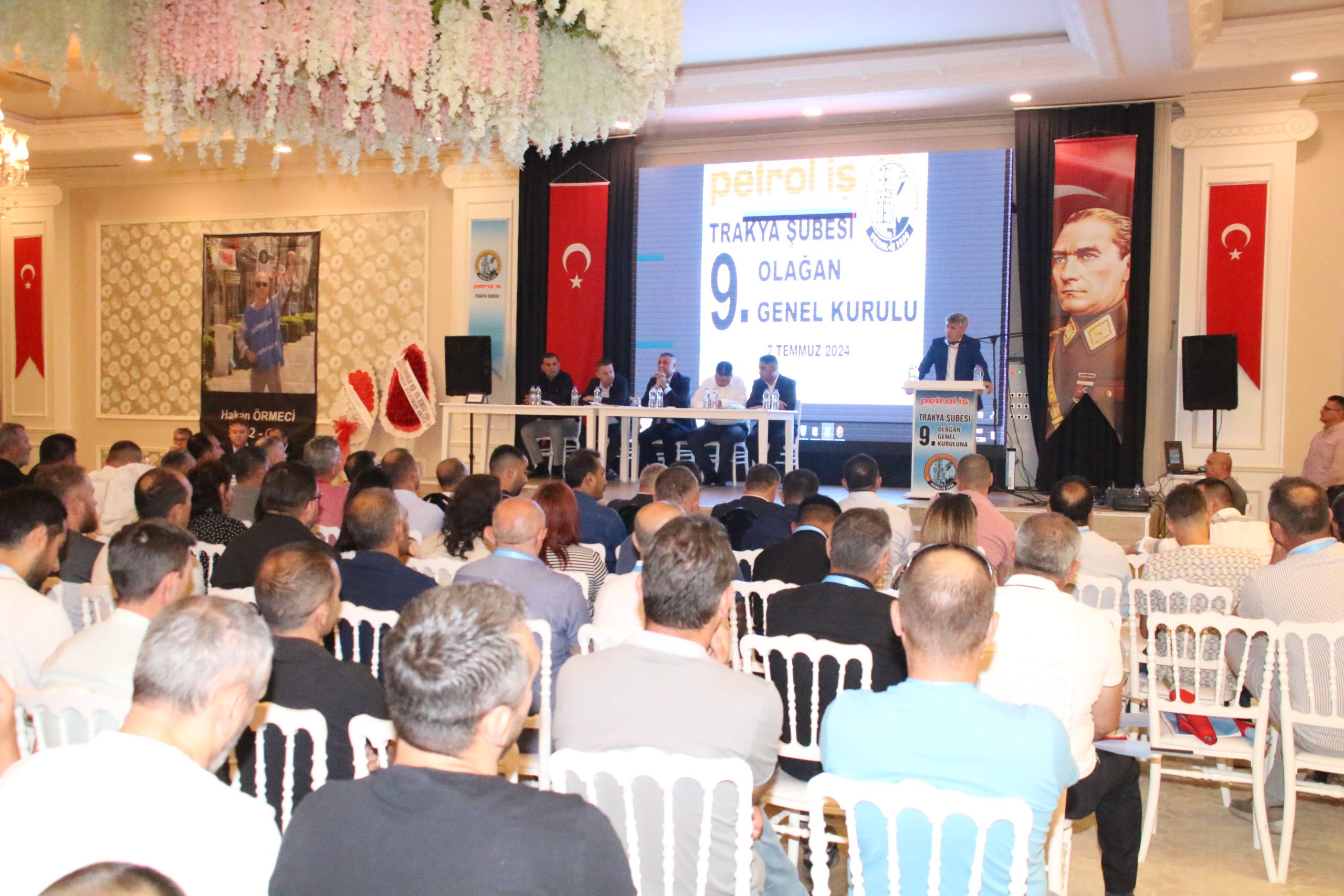 Petrol-İş Trakya Şube 9. Olağan Genel Kurulu 7 Temmuz 2024 tarihinde Lüleburgaz/İzer Otel’de gerçekleşti. Saat 10.00’da başlayan Genel Kurula sendikamız Genel Merkez Yönetim, Denetim ve Disiplin Kurulu Üyeleri, Şube Başkan ve Yardımcıları, Trakya Şubemizde örgütlü 13 farklı işyeri/işletmeden delege, temsilci ve üyelerimiz ile kardeş sendika yöneticileri ve basın mensupları katıldı.