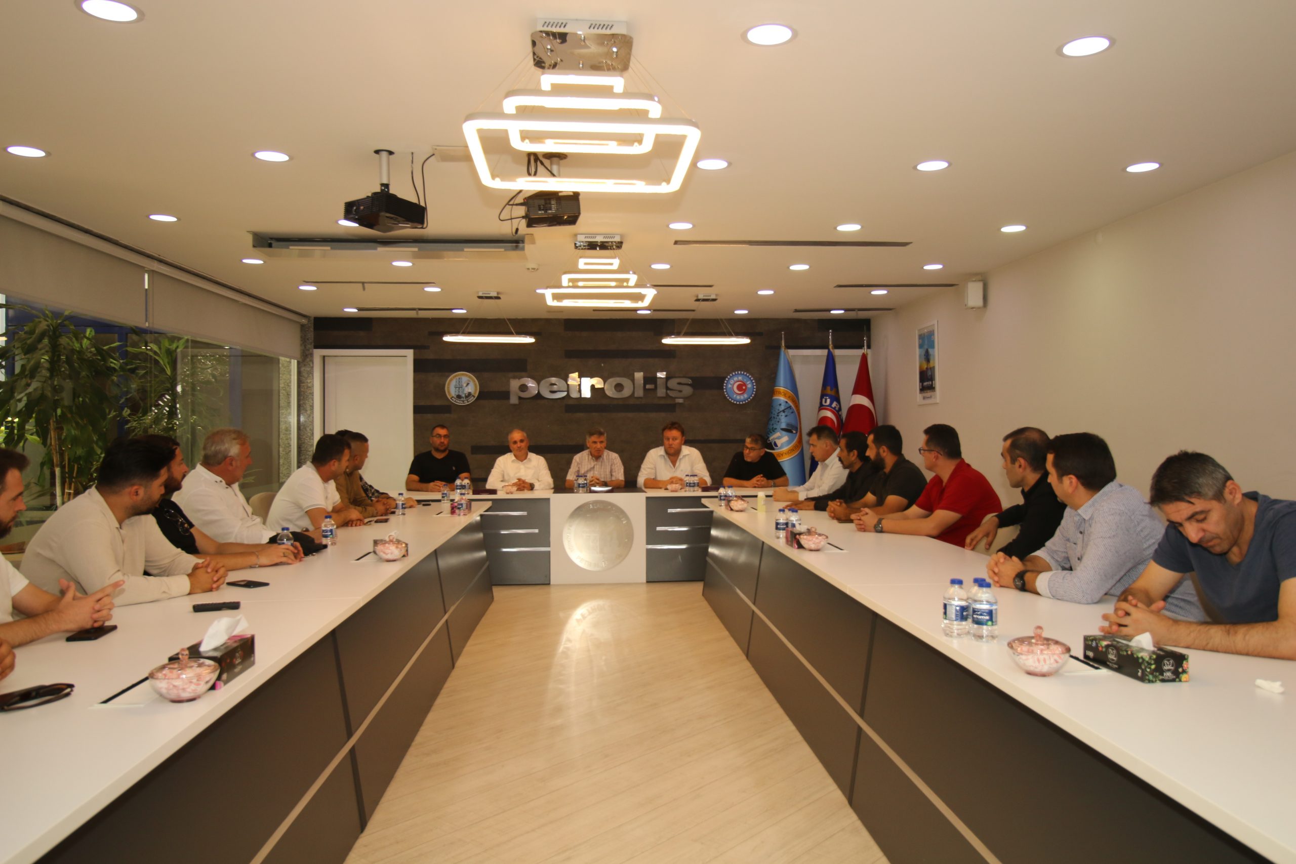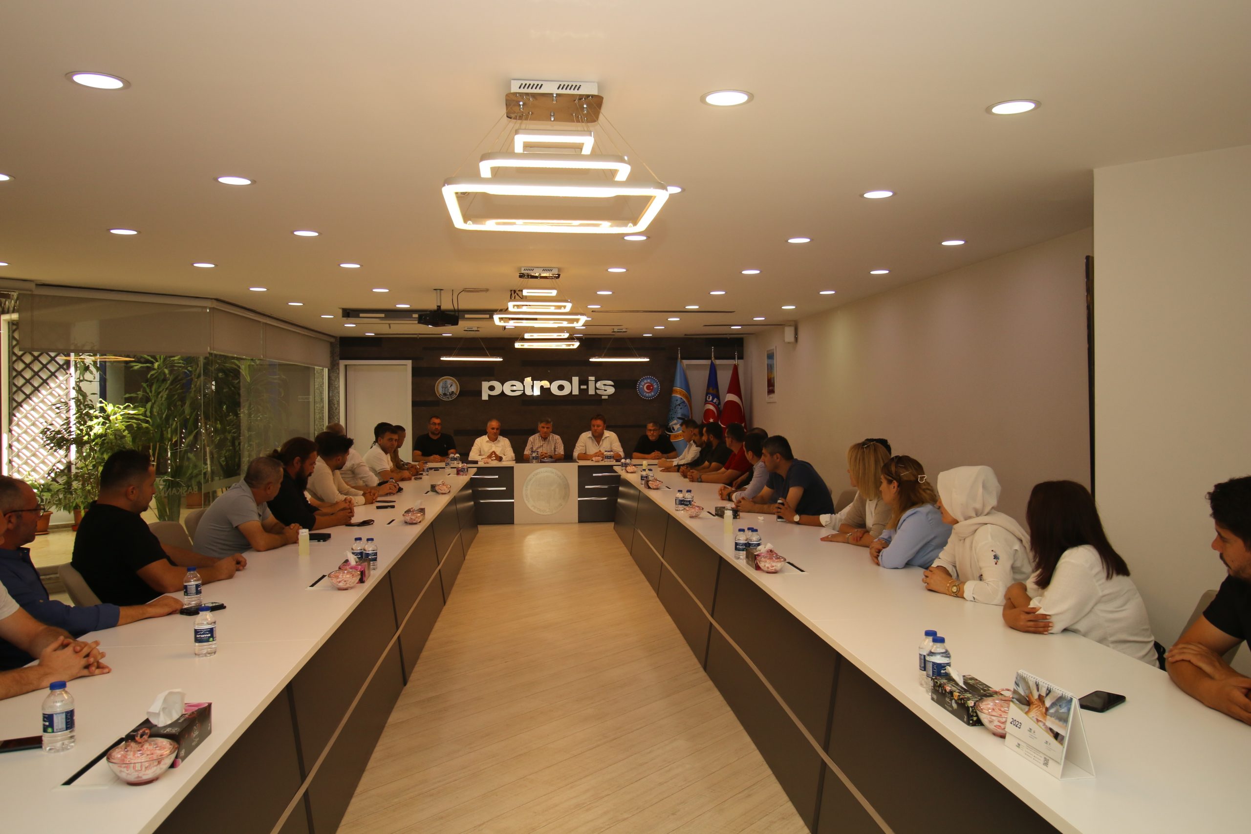 Sendikamız Trakya Şube Yönetimi ve şubemizin örgütlü olduğu işyerlerinden temsilciler 12 Eylül Salı günü Genel Merkez yöneticilerimize hayırlı olsun ziyaretinde bulundular. Sendikamız Genel Başkanı Süleyman Akyüz, Genel Sekreteri Ahmet Baranlı, Genel Mali Sekreteri Mehmet Kaya, Genel Örgütlenme ve Eğitim Sekreteri Niyazi Recepkethüda ve Genel Yönetim Sekreteri Ali Haluk Koşar ile biraraya gelen Trakya Şube Heyeti 29. Olağan Genel Kurul sonrası seçilen yeni merkez yönetimine görevlerinde başarılar dileyerek, birlikte daha güçlü olacaklarını belirttiler. Görüşmeler iyi dileklerin iletilmesinin ardından sona erdi.
