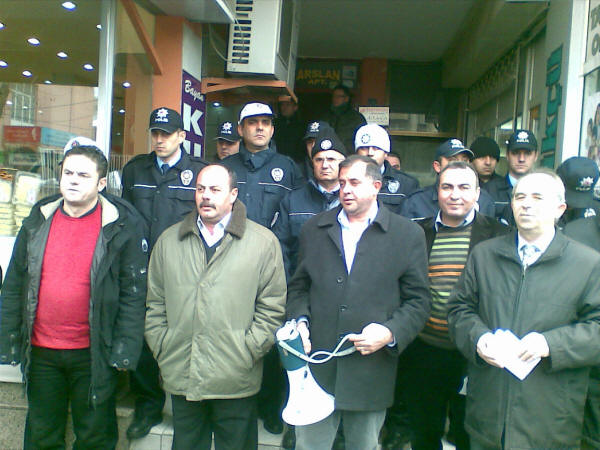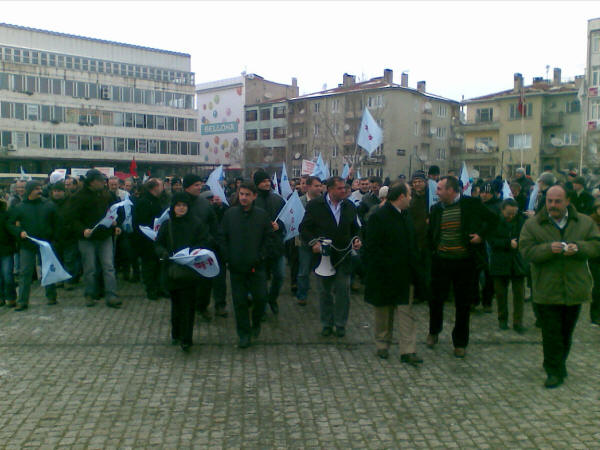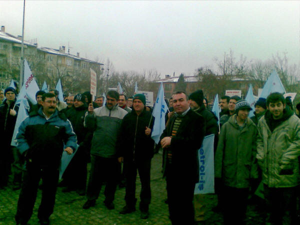 Trakya şubemizde örgütlü işyerlerinde çalışan 1200 Petro-İş üyesi 4 Şubat günü işe gitmedi.Trakya Şube Başkanımız Turgut Düşova yörede örgütlü bulundukları iş yerlerinde çalışan 1200 üyemizin işe gitmediğini belirterek, “Tekel işçilerinin yakmış olduğu kıvılcım yangına döndü. AKP hükümeti bir an önce Tekel işçilerinin sorununu ve diğer çalışanların sorunlarını çözmelidir” dedi. Düşova, Lüleburgaz ilçesinde yaklaşık 15 bin işçi ve memurun iş bırakarak, eyleme destek verdiğini söyledi. Aynı gün Lüleburgaz Kongre Meydanı’nda toplanan Emek Platformu Bileşenleri AKP İlçe Başkanlığına kadar yürüdü ve burada basın açıklaması yapıldı. Petrol-İş üyelerinin kitlesel katılım gösterdiği basın açıklamasını da Trakya Şube Başkanımız Turgut Düşova okudu.