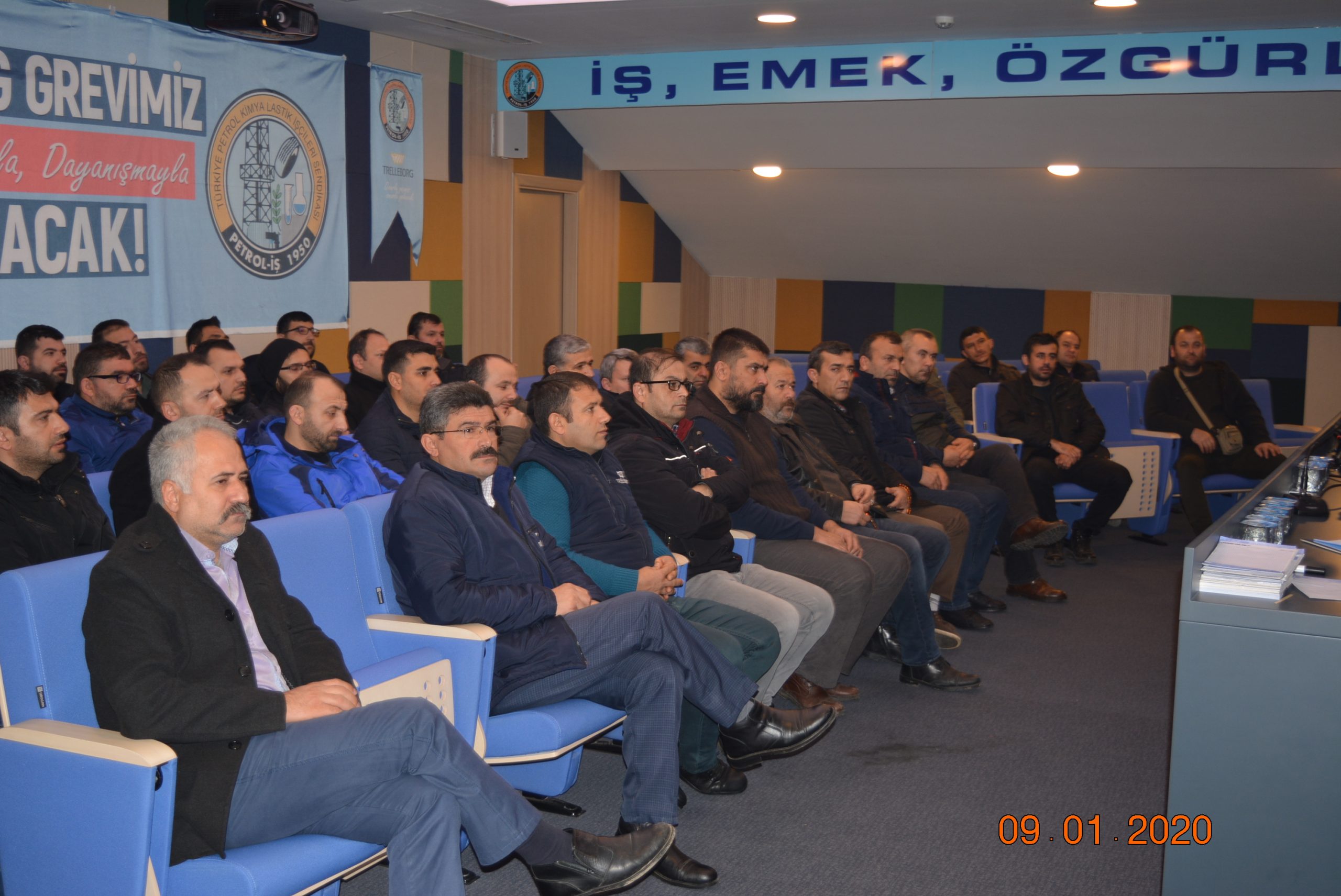 Gebze Şubemize bağlı Trelleborg işyerinde 30 Gündür grevde olan üyelerimize 8 Ocak 2020 tarihinde Gebze Şube Toplantı salonunda üye eğitimi verilmeye başlandı. İlk grup eğitimine Genel Başkanımız Süleyman Akyüz, Genel Örgütlenme ve Eğitim Sekreterimiz Niyazi Recepkethüda ve Gebze Şube Yöneticilerimiz katıldı. Eğitimler üç grup halinde Eğitim Uzmanımız Erhan Kaplan tarafından verilecektir.